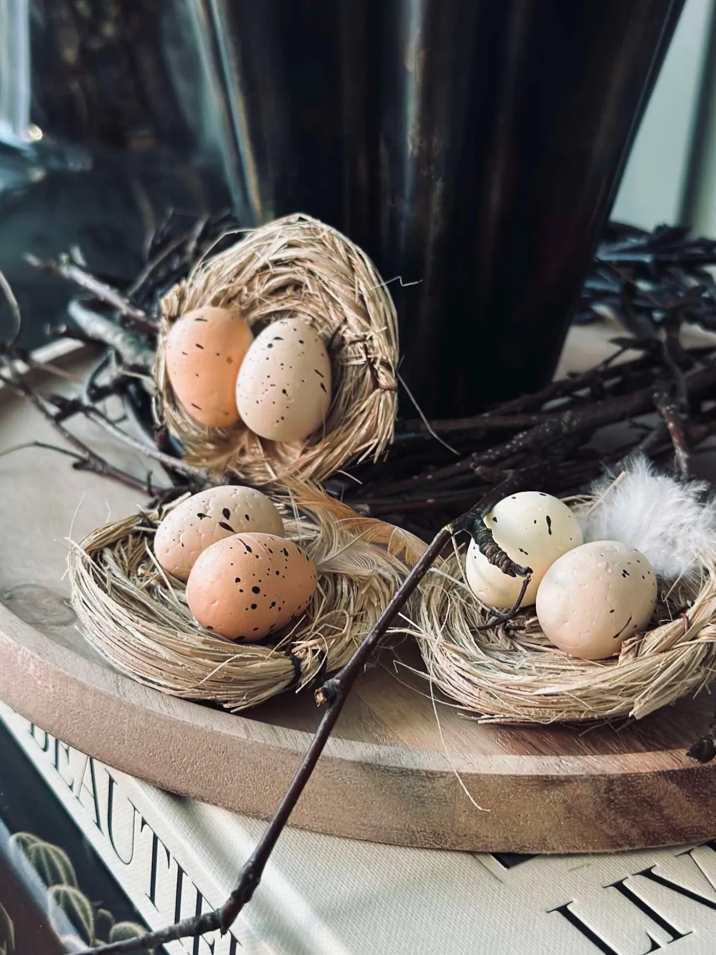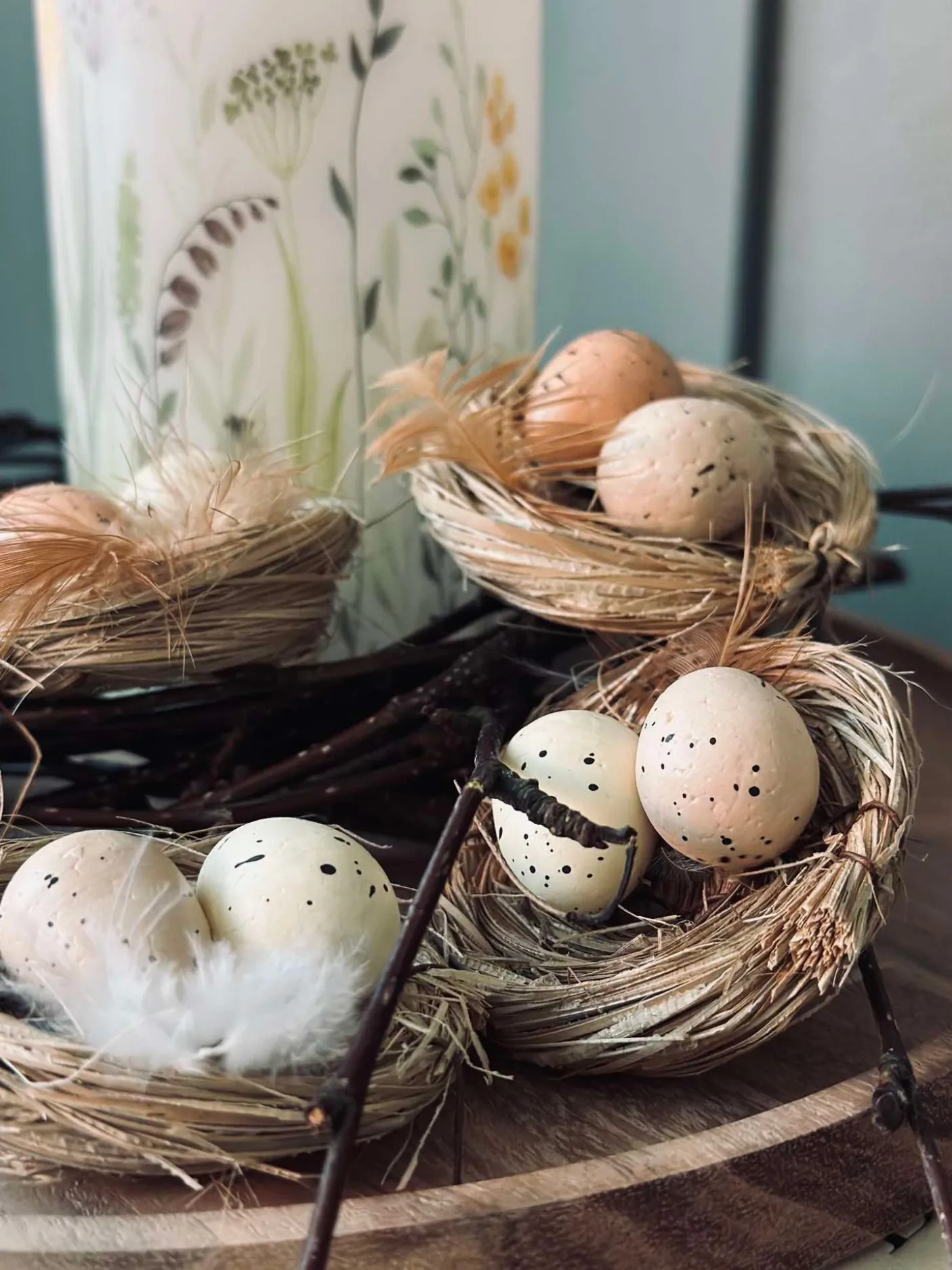 Fuldend din borddækning med disse fine reder med små påskeæg.
