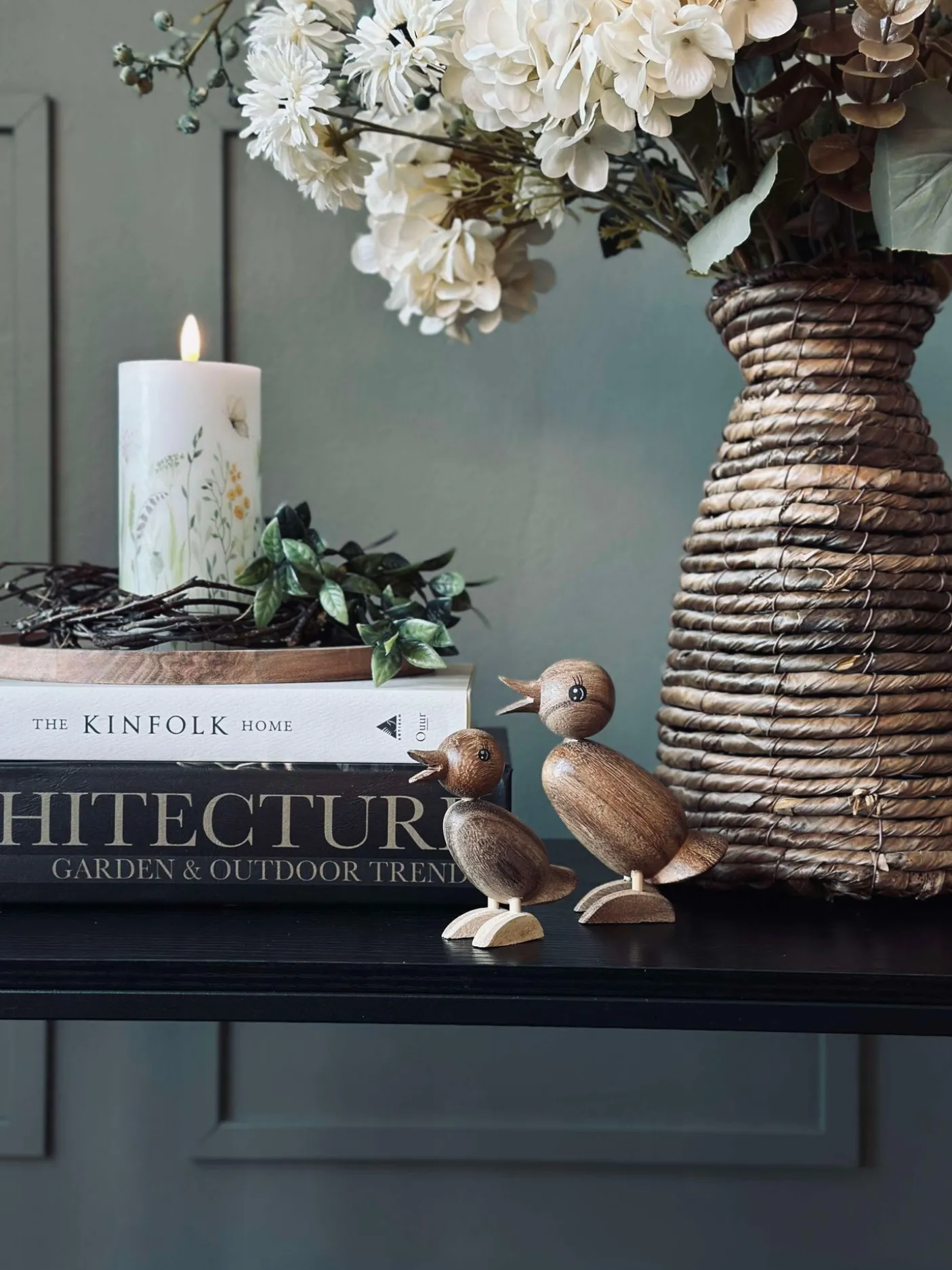 Sød and i massivt træ.