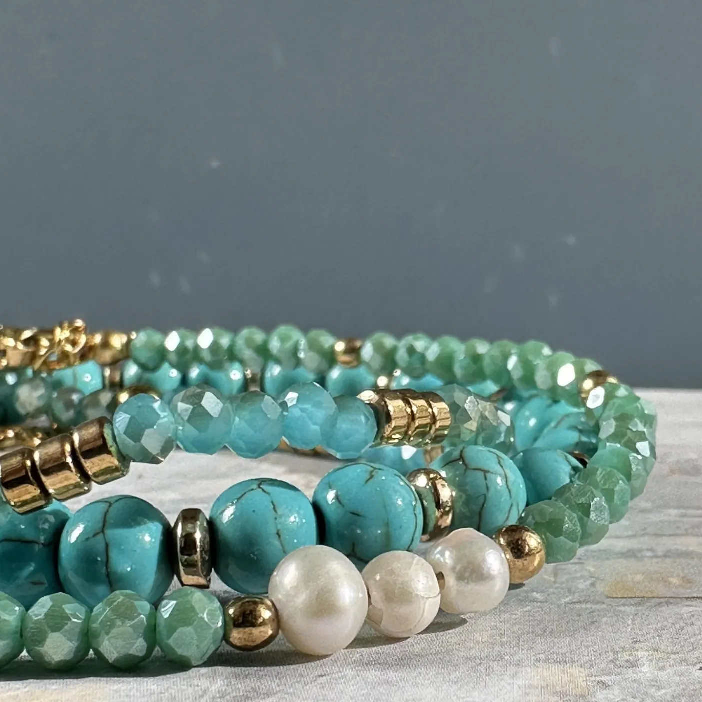3 turkis armbånd i et sæt – præsenteret i en flot gaveæske.