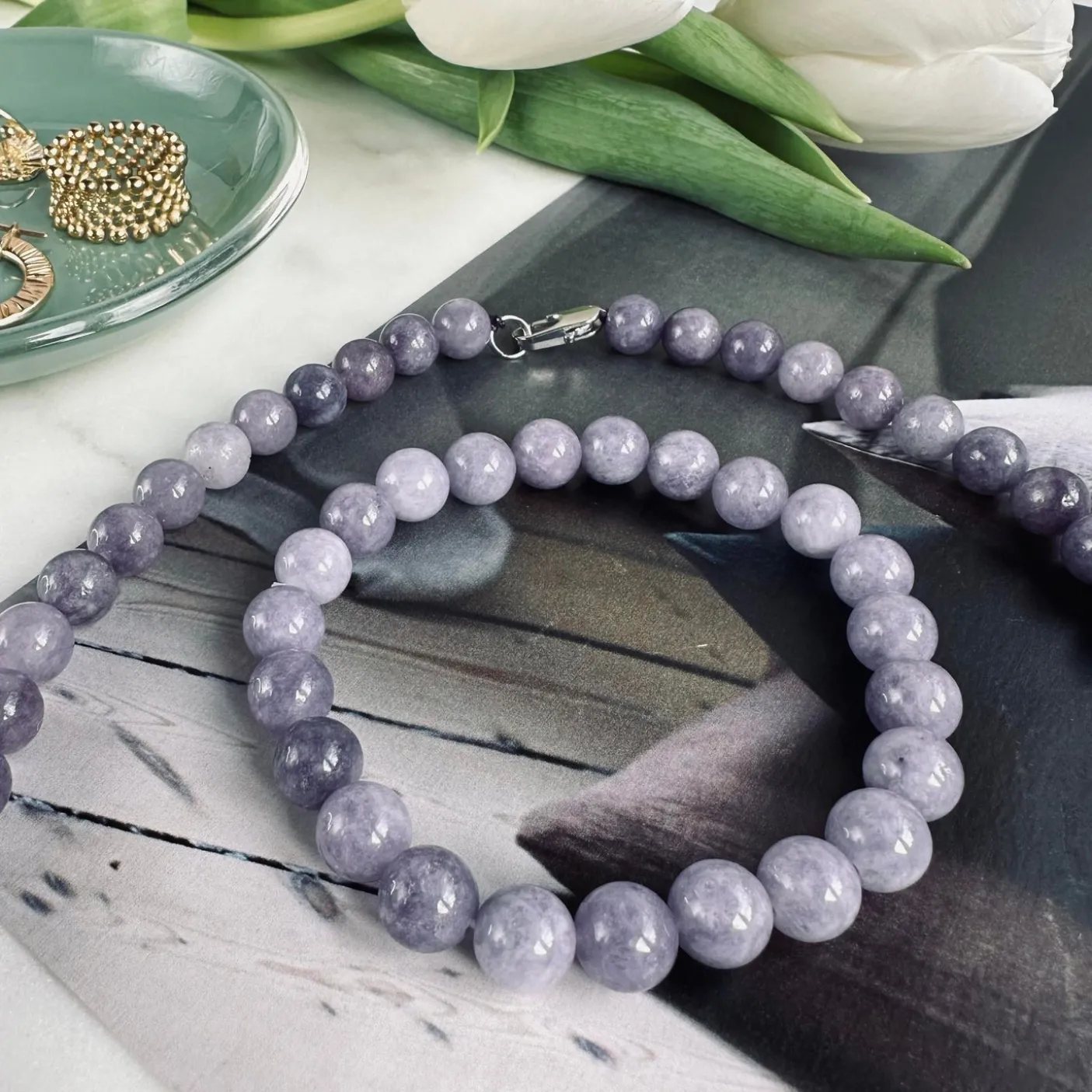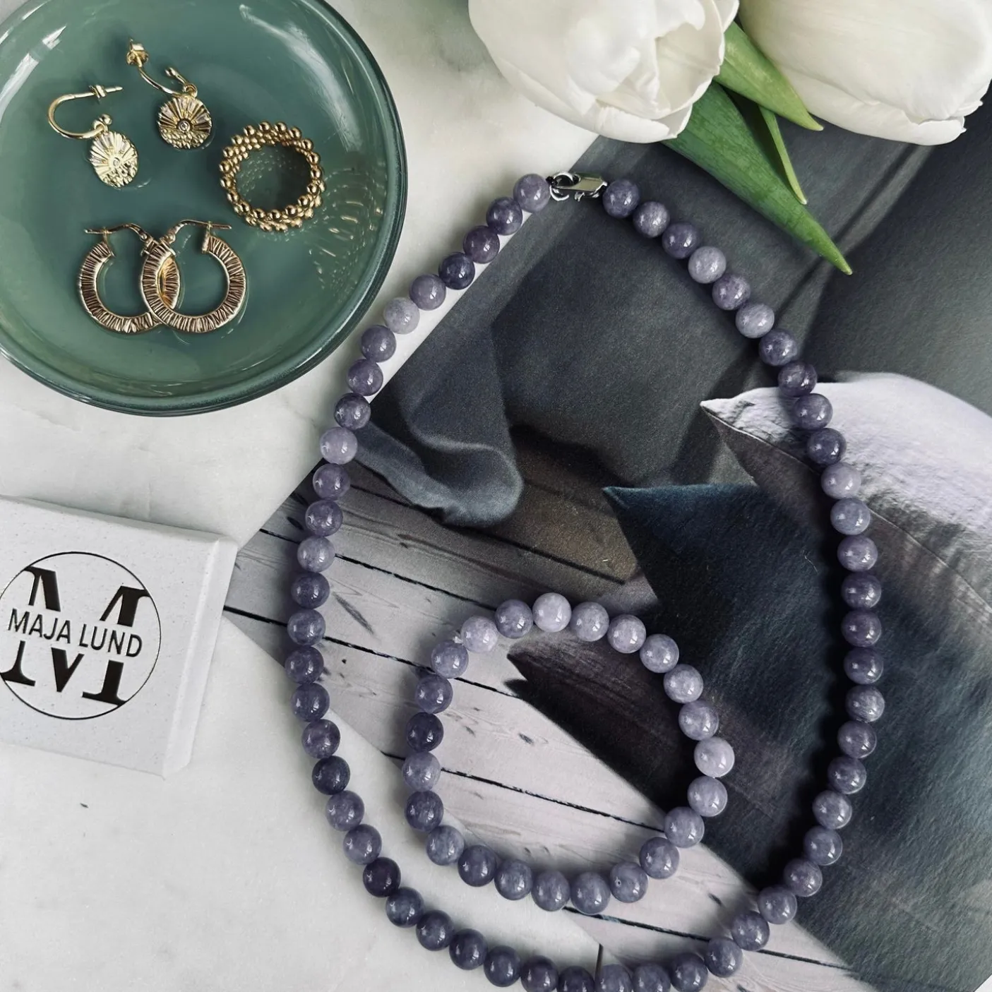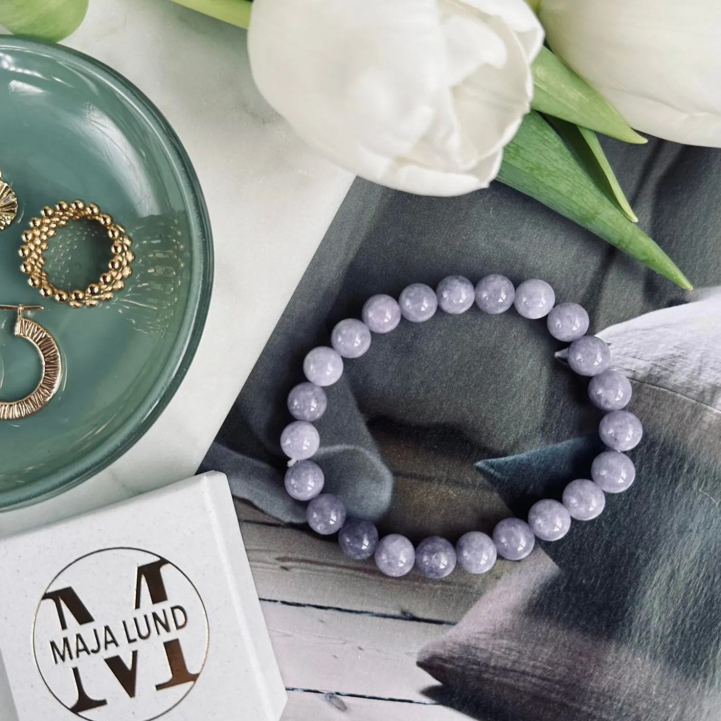 Dette armbånd er i smukke lilla natursten som hver er 7 mm.