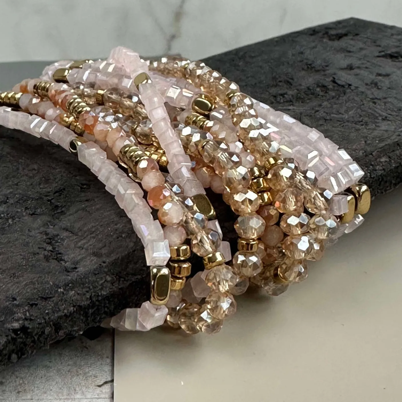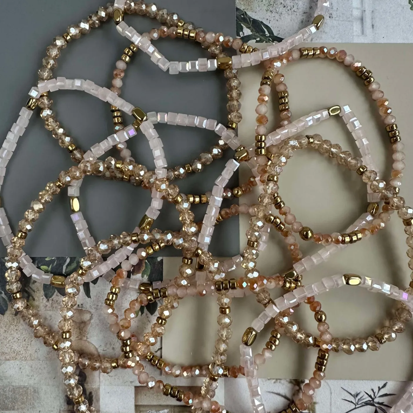 Sæt med 3 smukke armbånd i natur farver.