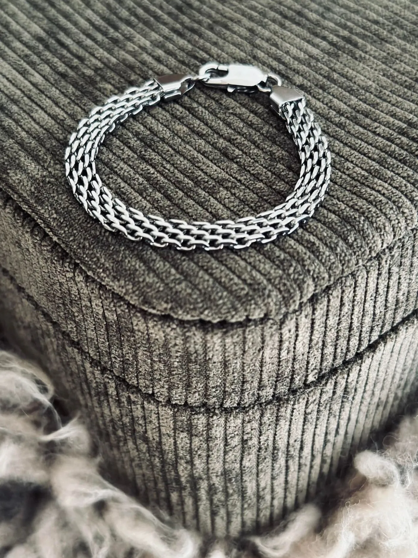 Feminint og samtidig rå lænke armbånd i lænke i rustfrit stål sølv forgyldt.