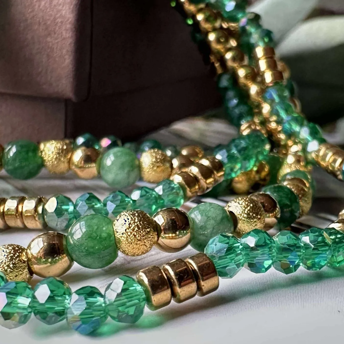 De små armbånd er med 3mm facetterede sten, de to andre er udført i rustfrit stål og med 4mm naturstens-perler i.