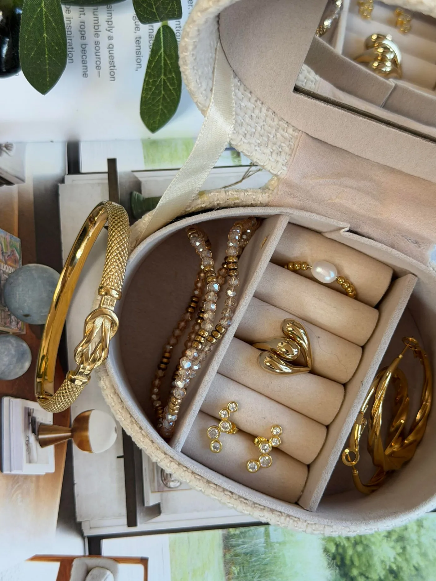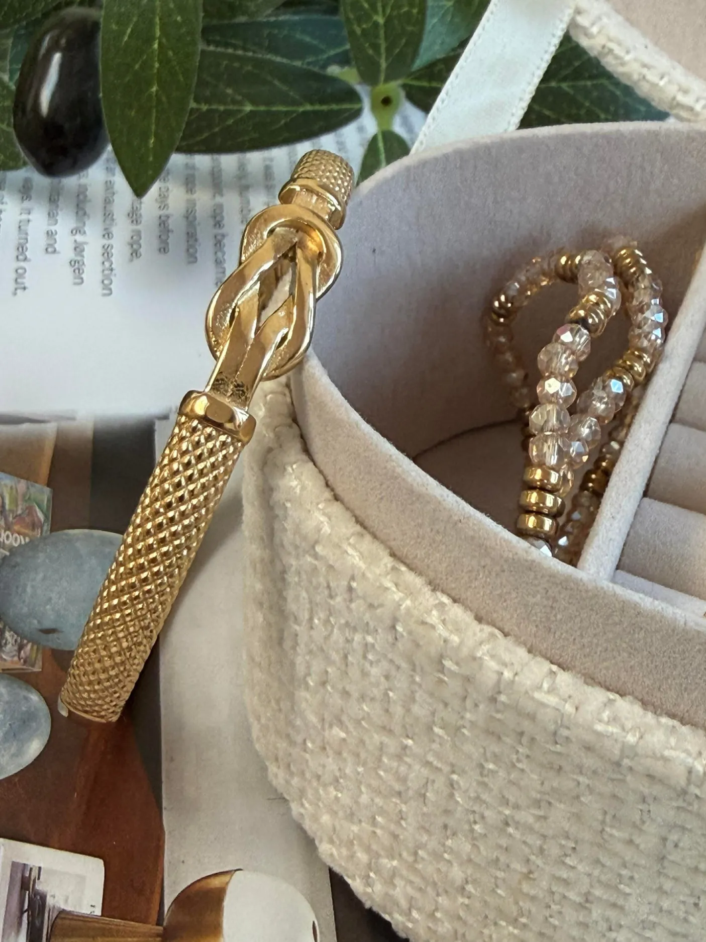 Armring AURELIA forgyldt er et kraftigt bangle armbånd til håndleddet. Udført i rustfrit stål med 18K forgyldning, som giver en klar guldfinish. Mønsteret er struktureret/vævet og skaber et taktilt, tekstureret udtryk i guld.