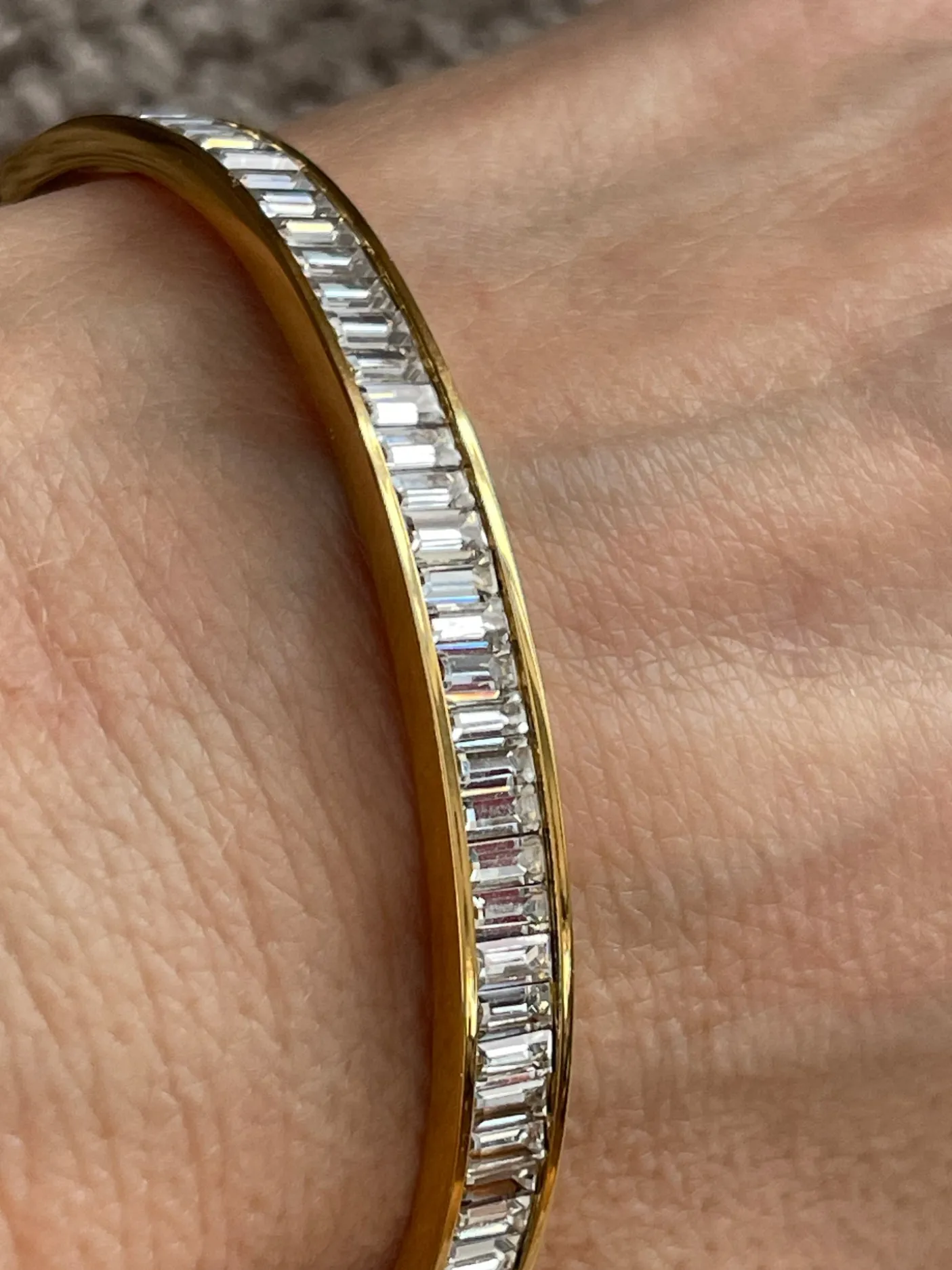 - Sten: Isat baguette CZ sten langs armbåndets bredde.