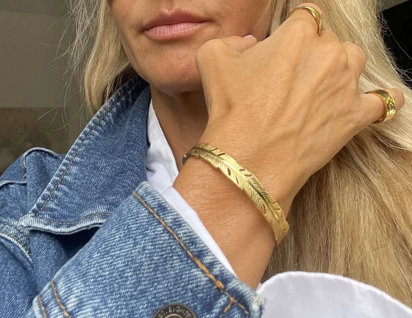 Armringen er forgyldet / guldbelagt og fremstår i guld, hvilket giver et varmt og markant udtryk.