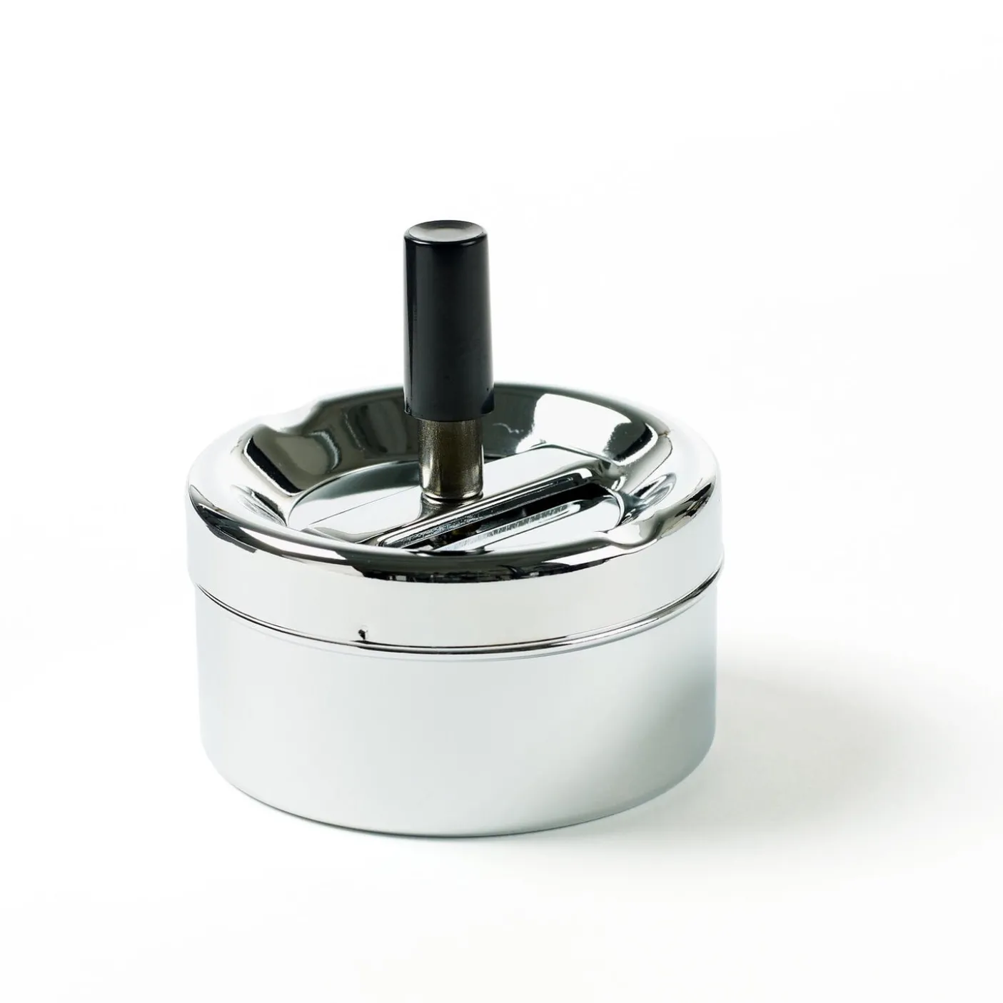 Praktisk askebæger med tryk funktion, der gør at affald kommer ned i beholderen og dermed ikke er synlig og begrænser eventuelle lugt-gener.