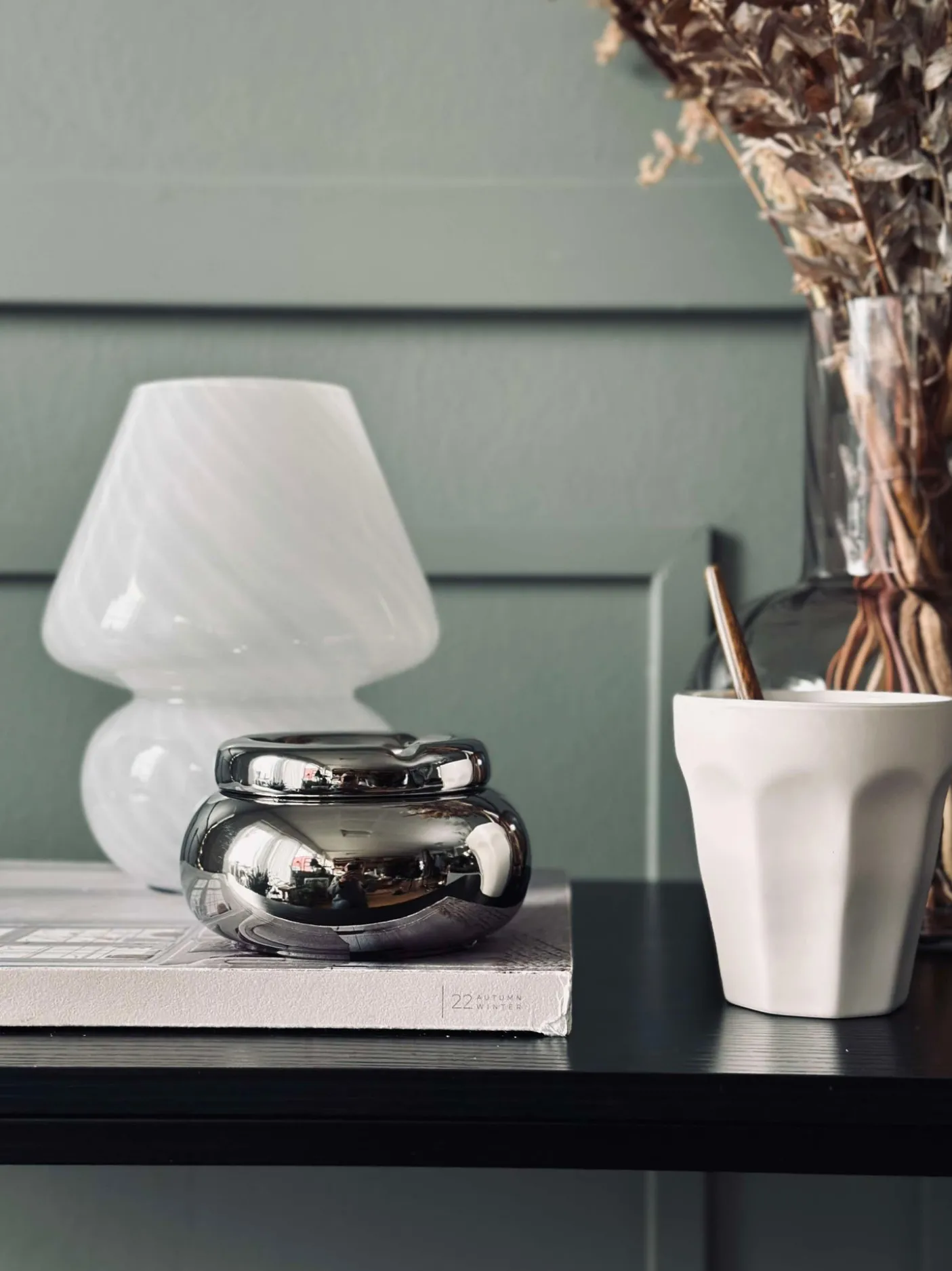 Askebæger i sølv-look.