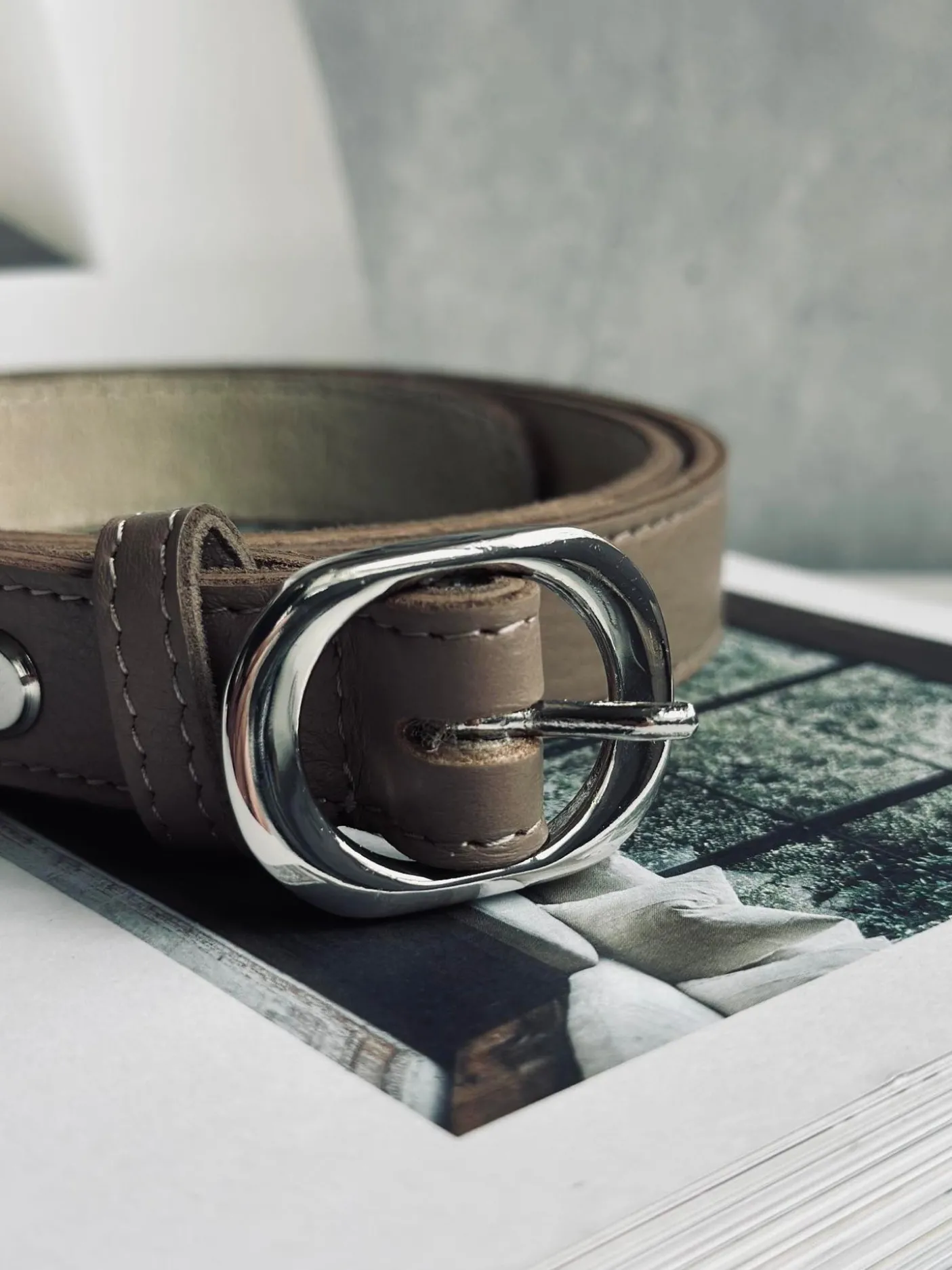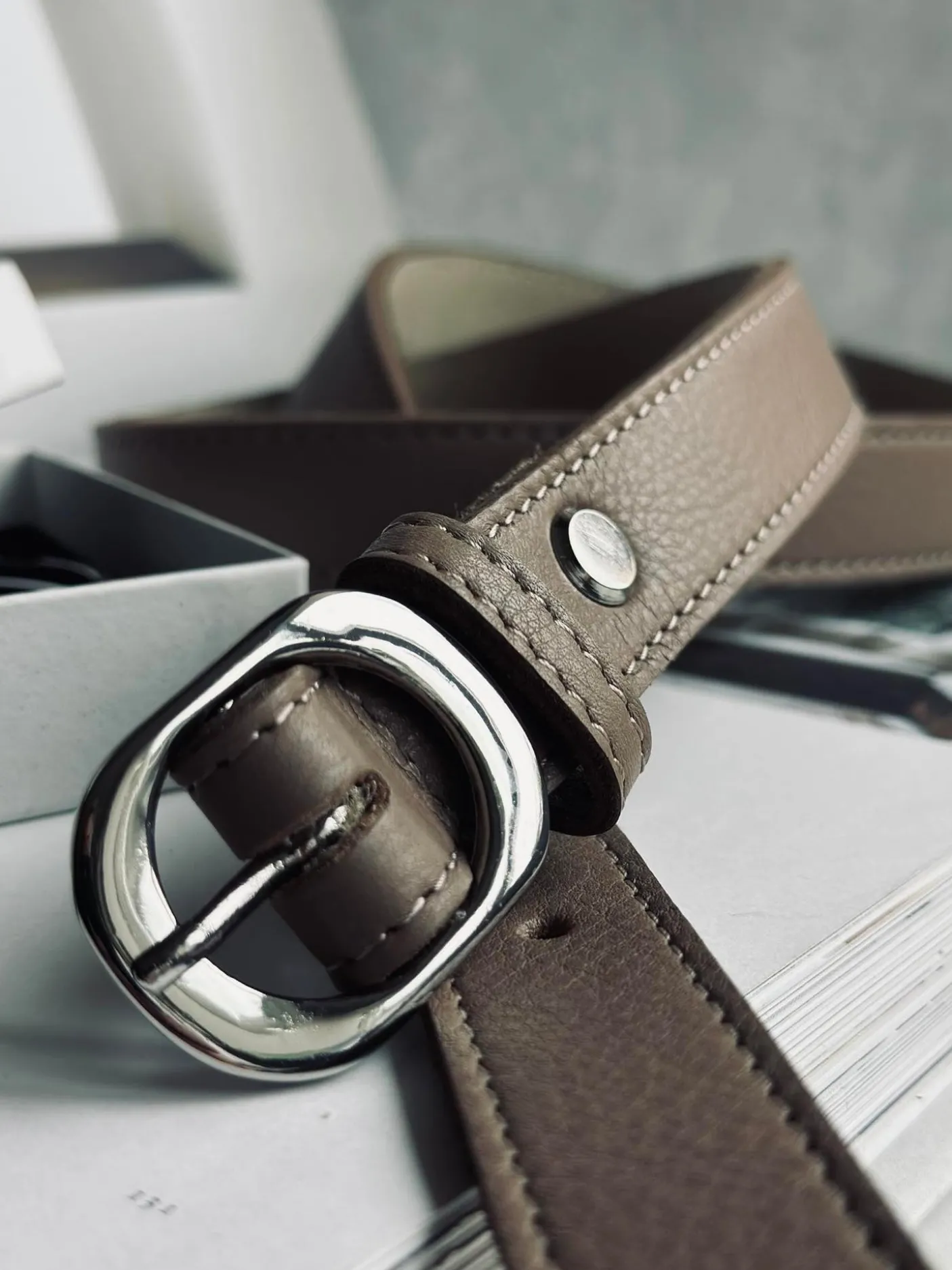 Et klassisk, smalt bælte i dusty taupe, der giver et roligt og underspillet udtryk. Den ensfarvede overflade gør det nemt at style til både hverdag og mere velklædte looks. Med sin smalle bredde får bæltet et let og diskret præg, der fungerer godt, når du ønsker en fin detalje uden at det fylder visuelt.