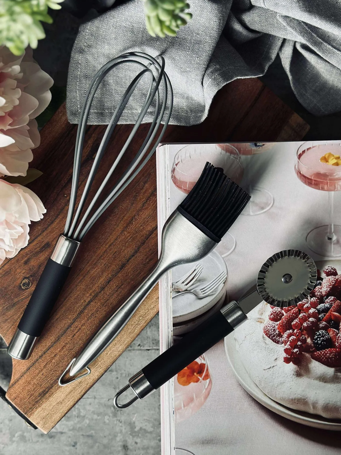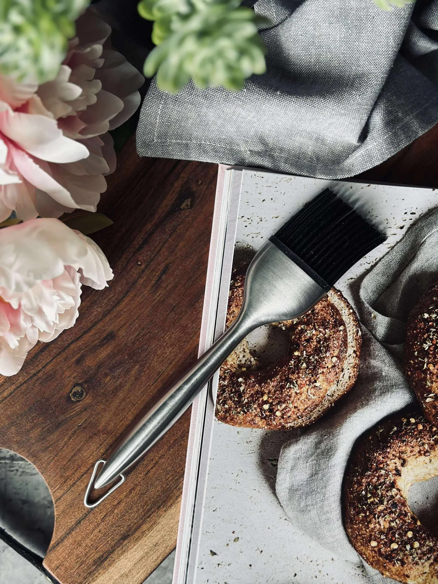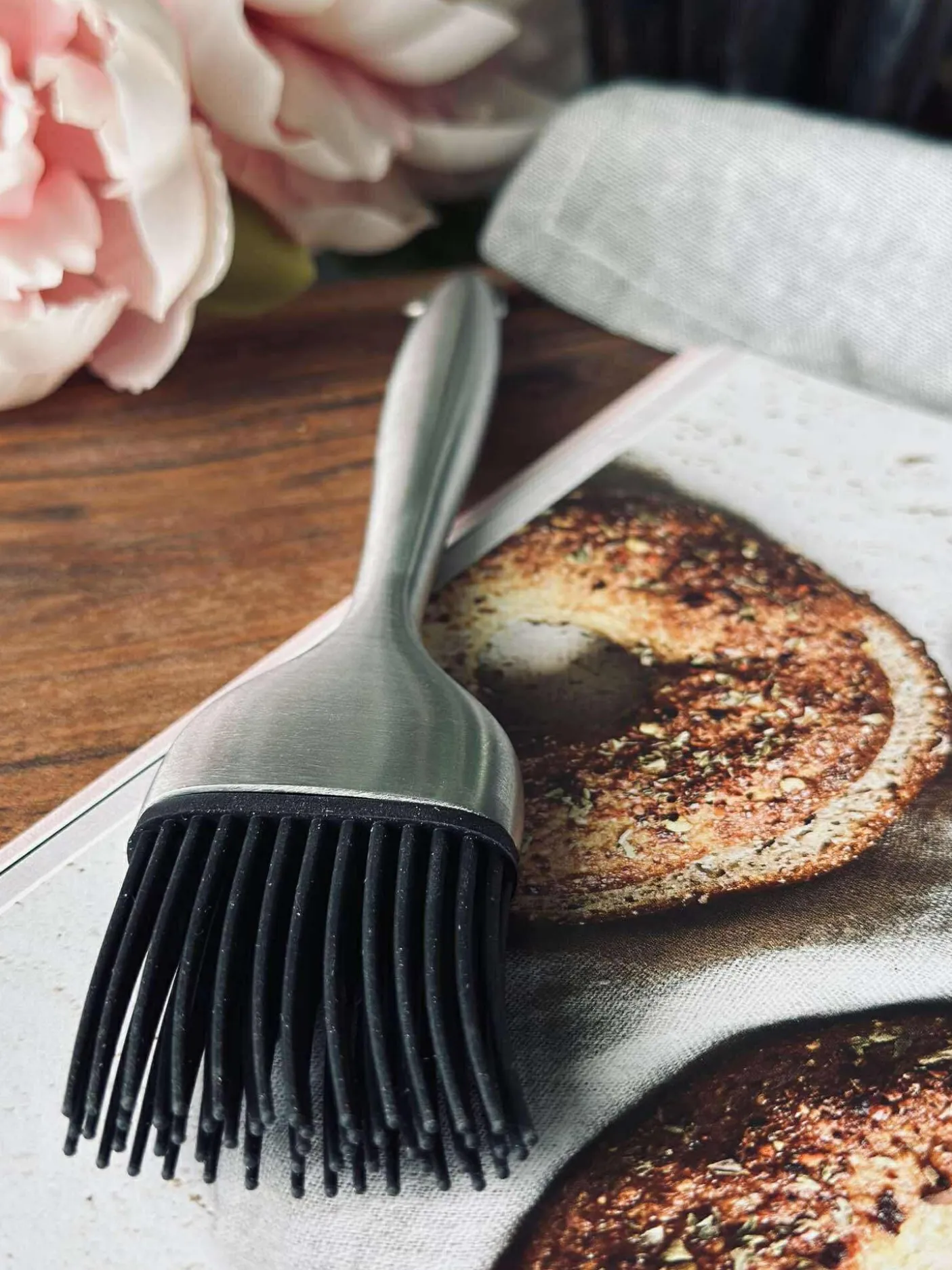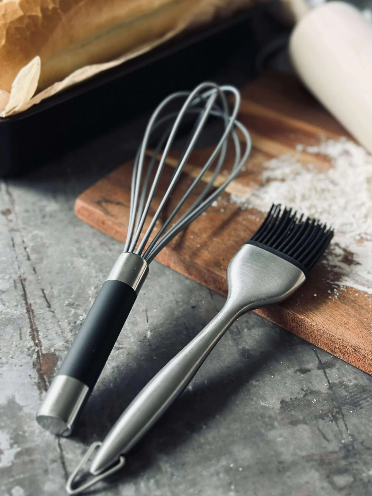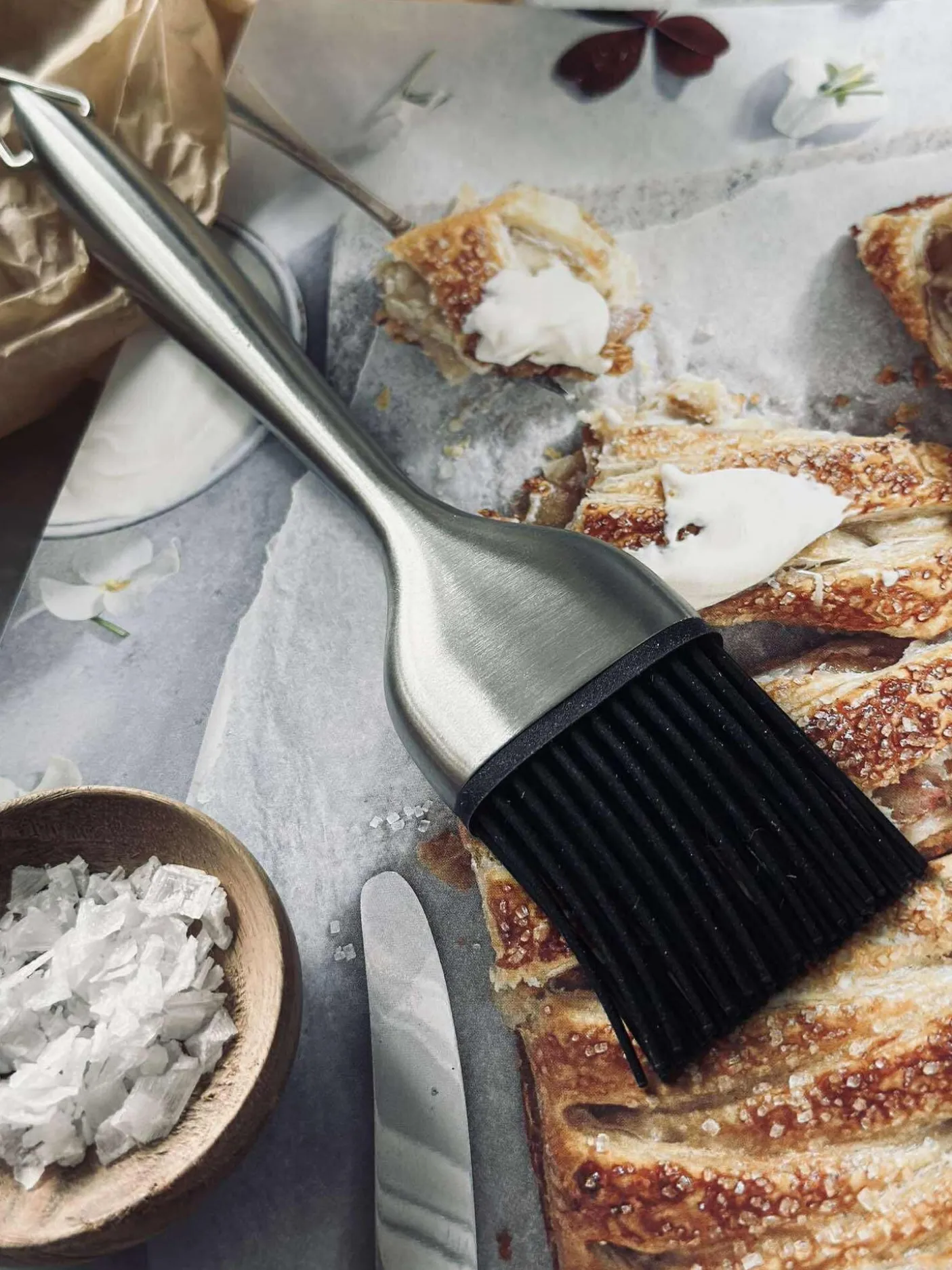 Bagepensel i stål med silikonebørster.
