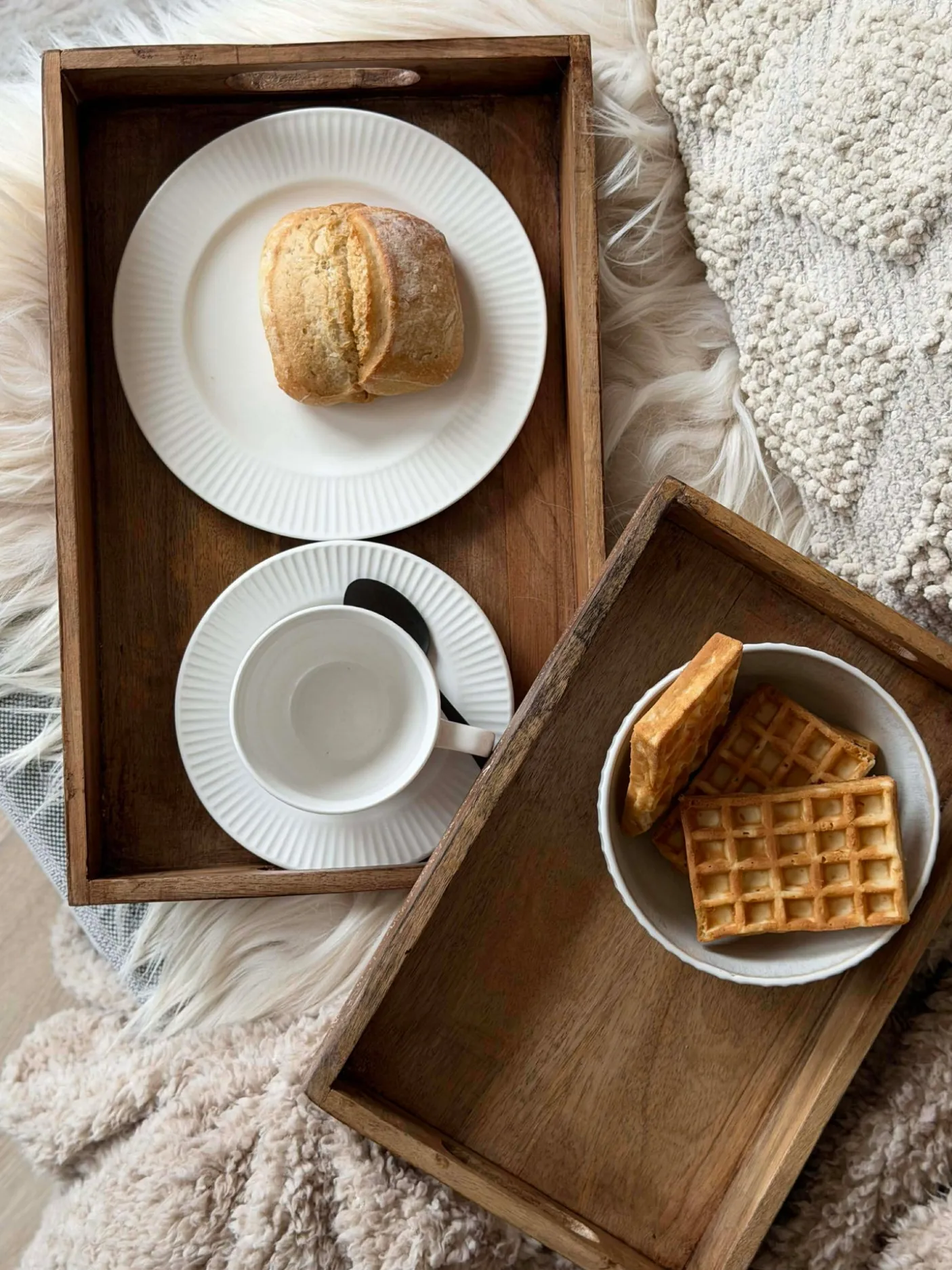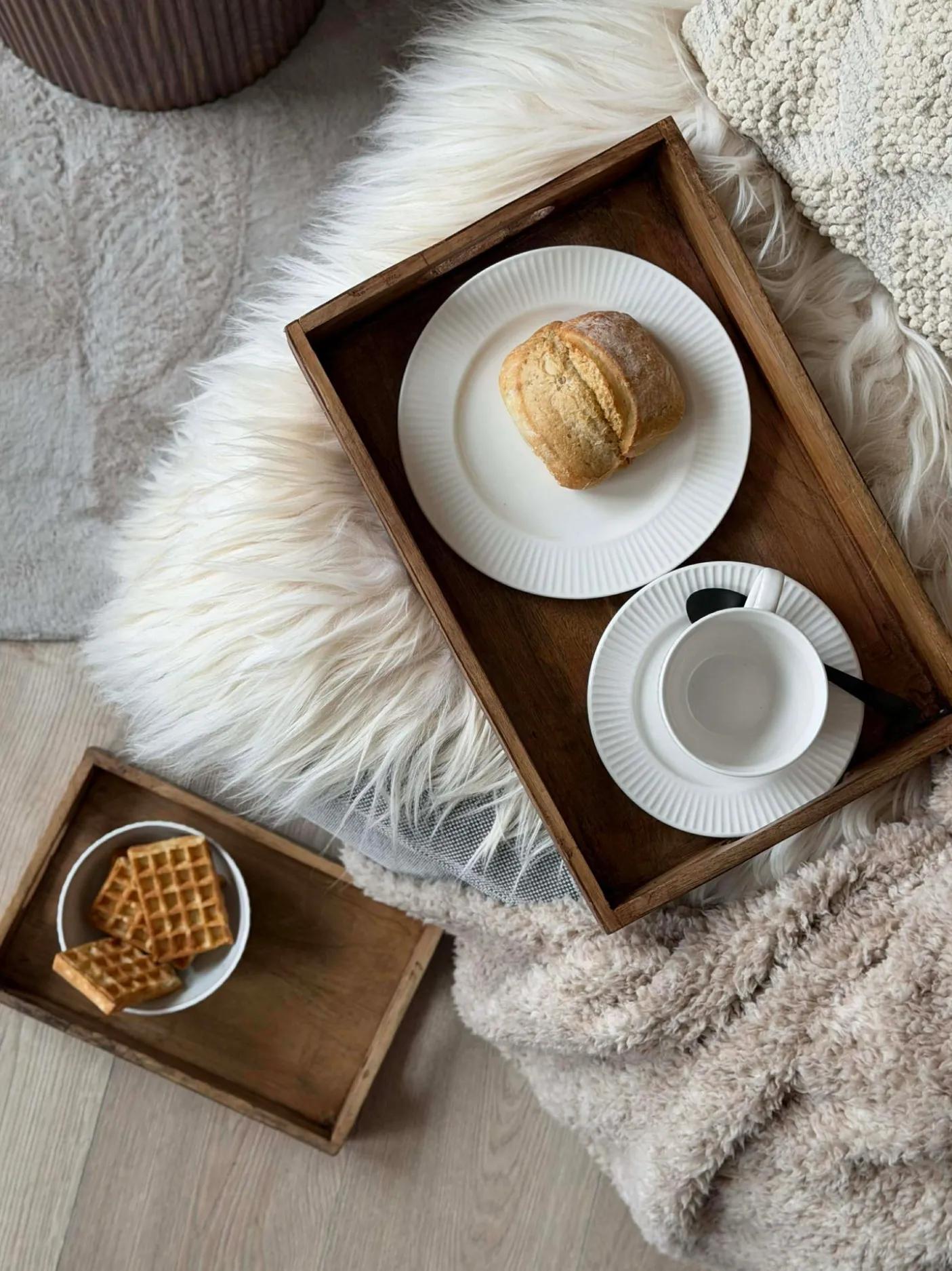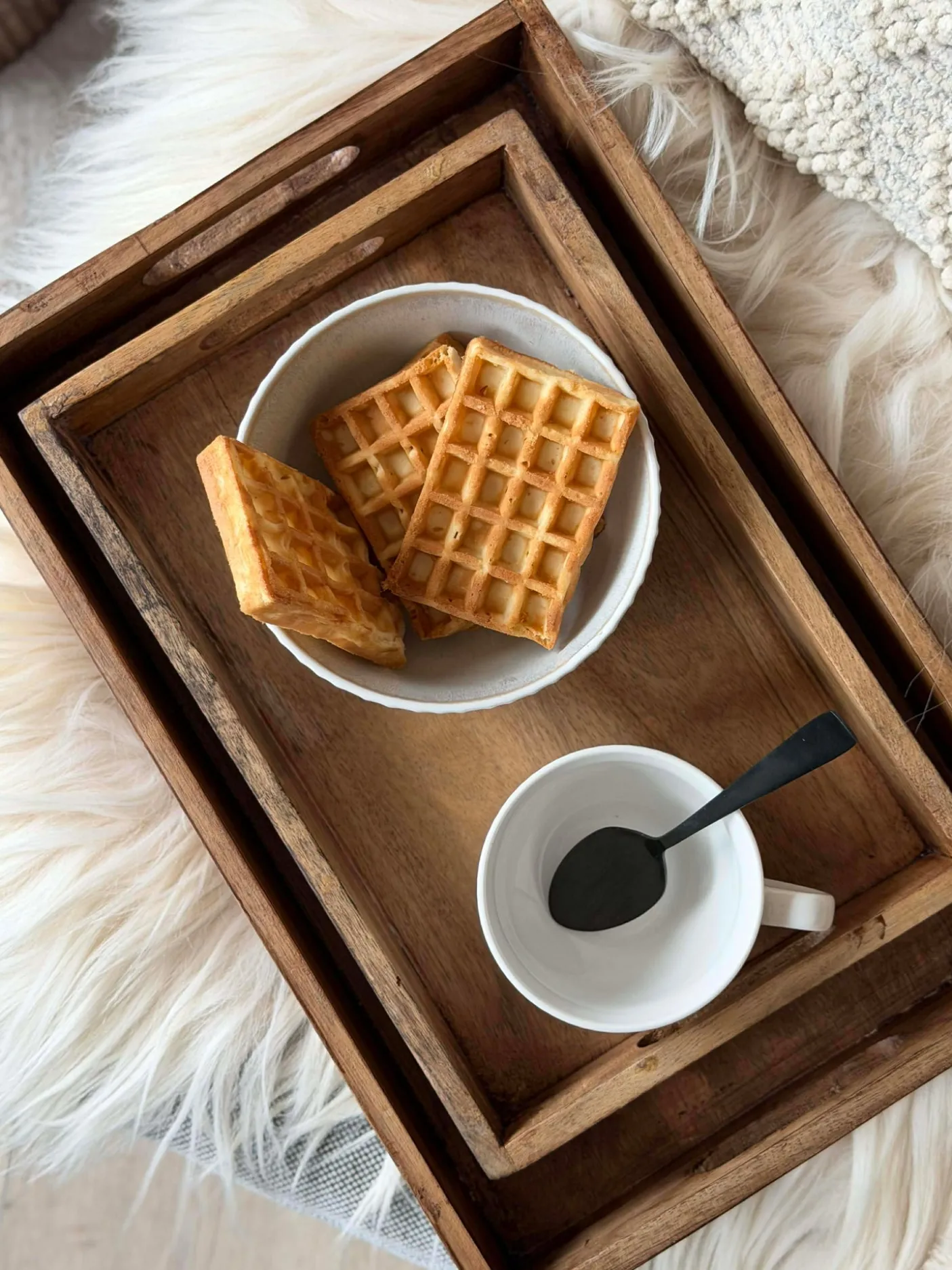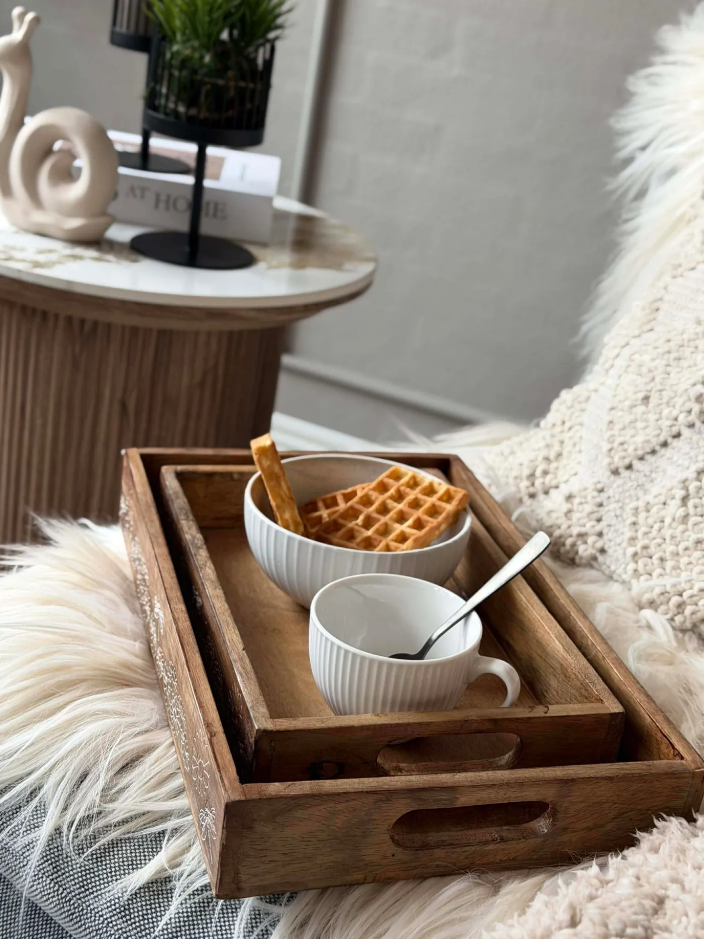 En sætbakke i ægte mangotræ, der kombinerer naturlig træstruktur med en hvidtrykt overflade. Sættet består af to bakker i forskellige størrelser, velegnet til at organisere småting i hjemmet. Bakkerne fungerer både til daglig brug og ved særlige lejligheder. Det hvidtrykte finish bidrager til et enkelt og varmt udtryk i indretningen.