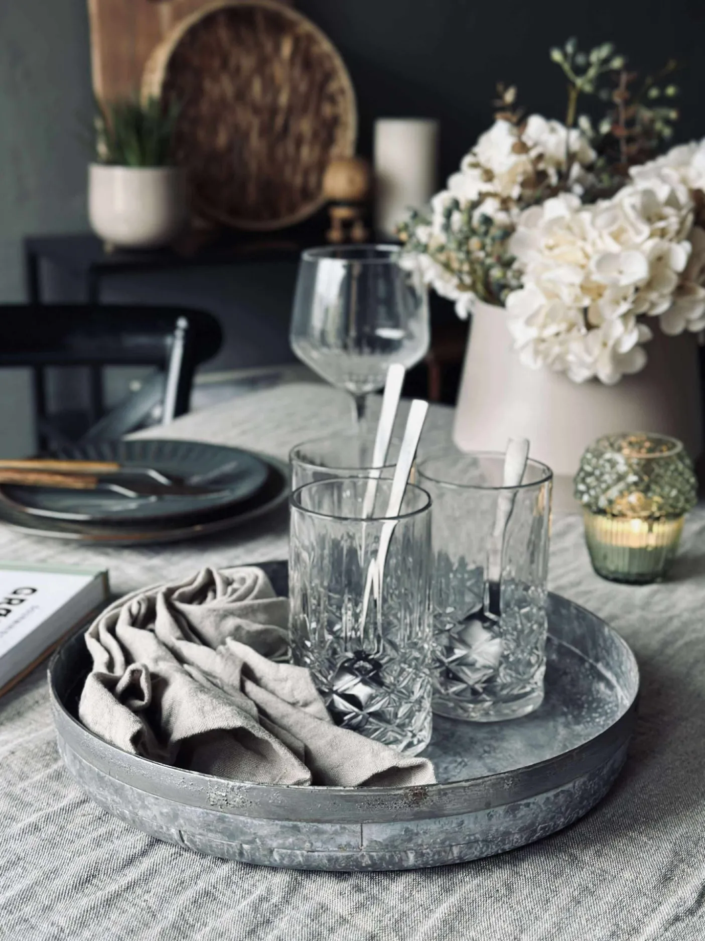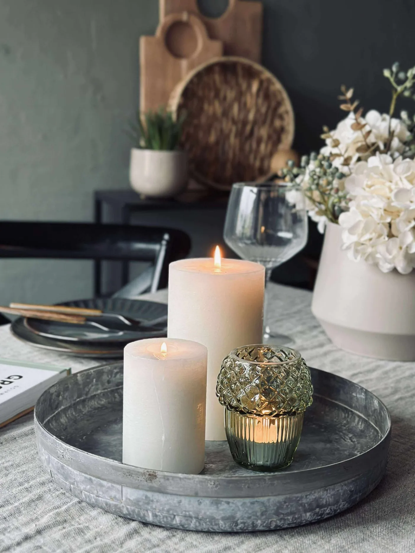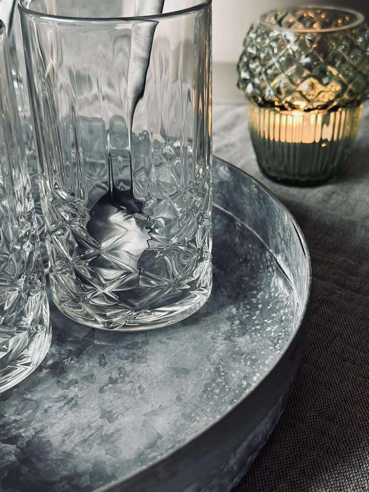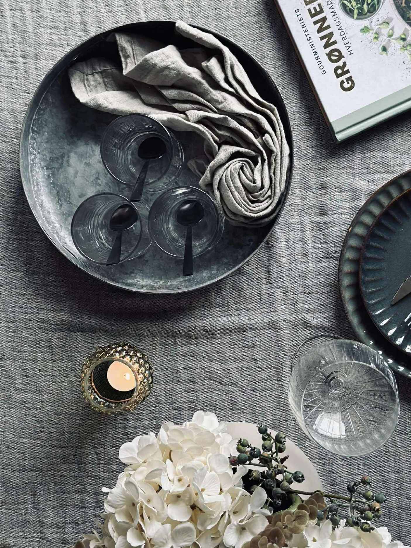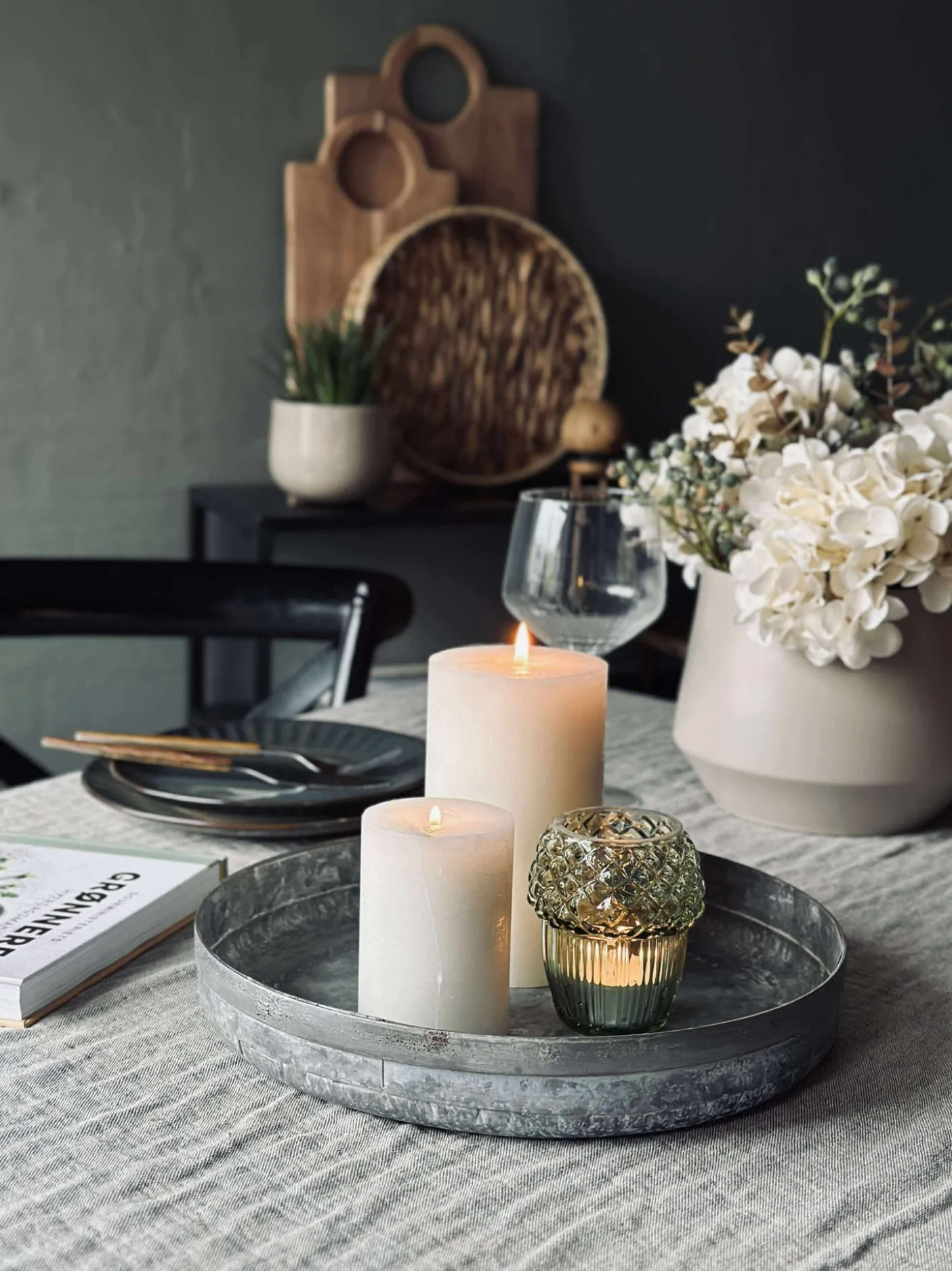 Bakke i zink til dekorationer med lys og pyntegrønt.
