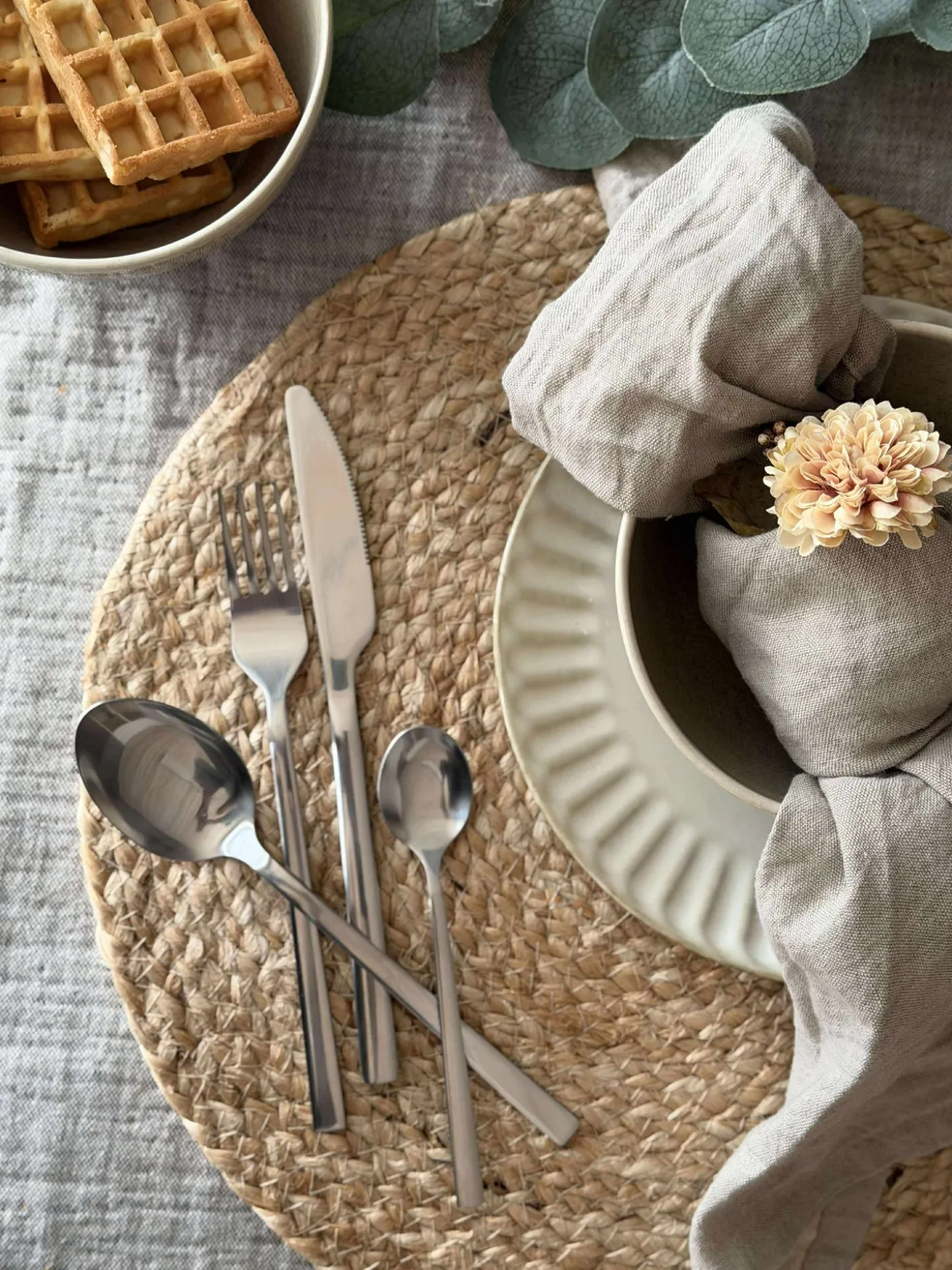 Pleje af bestik : Skyl eventuelle madrester af inden opvask for at undgå risiko for rustdannelse.