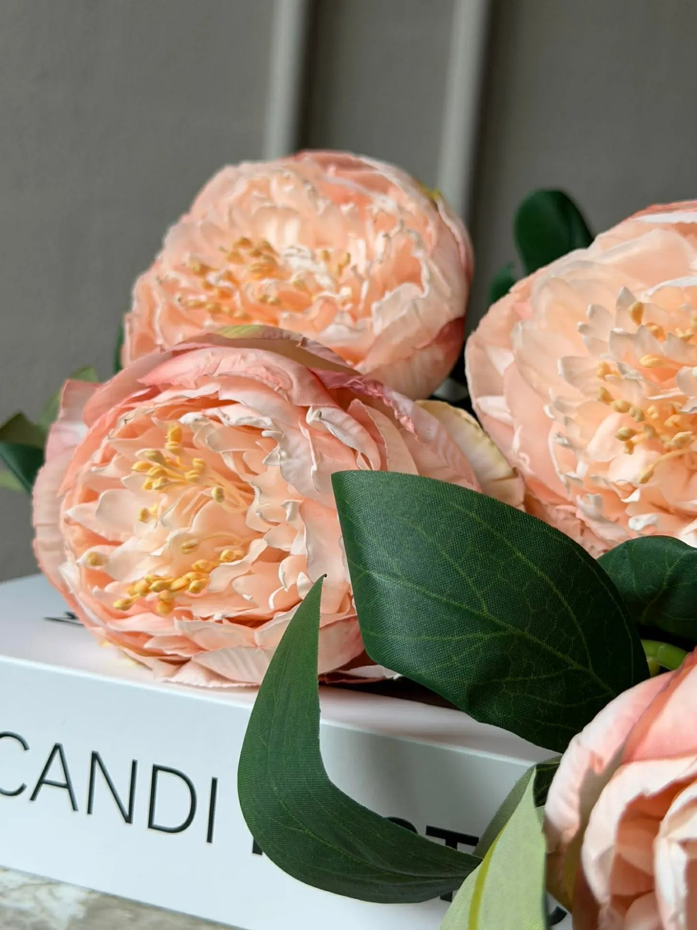 Silkeblomst pæon i sart rosa på en enkelt stilk, der tilfører en diskret farveaccent til indretningen. Højde: 70 cm, hvilket giver en markant lodret linje i en høj eller smal vase. Materiale: silkeblomst. Farvenuancerne bidrager til et blidt, antikt og tidløst udtryk, der harmonerer med både lyse og dæmpede rum.