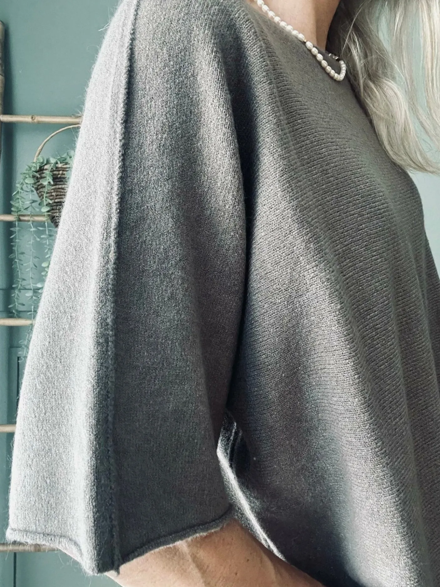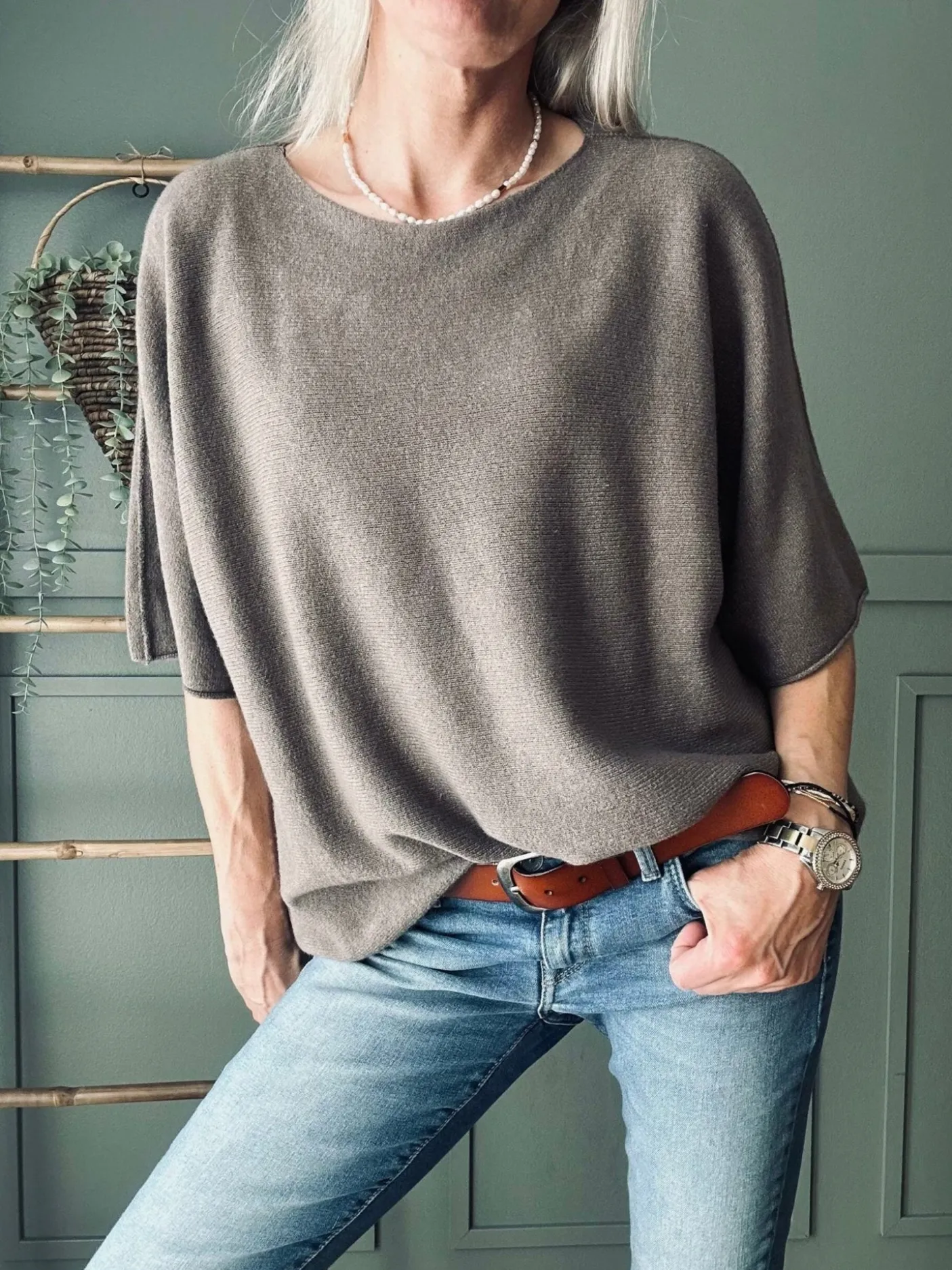Skøn basis strikbluse med kortere ærmer.