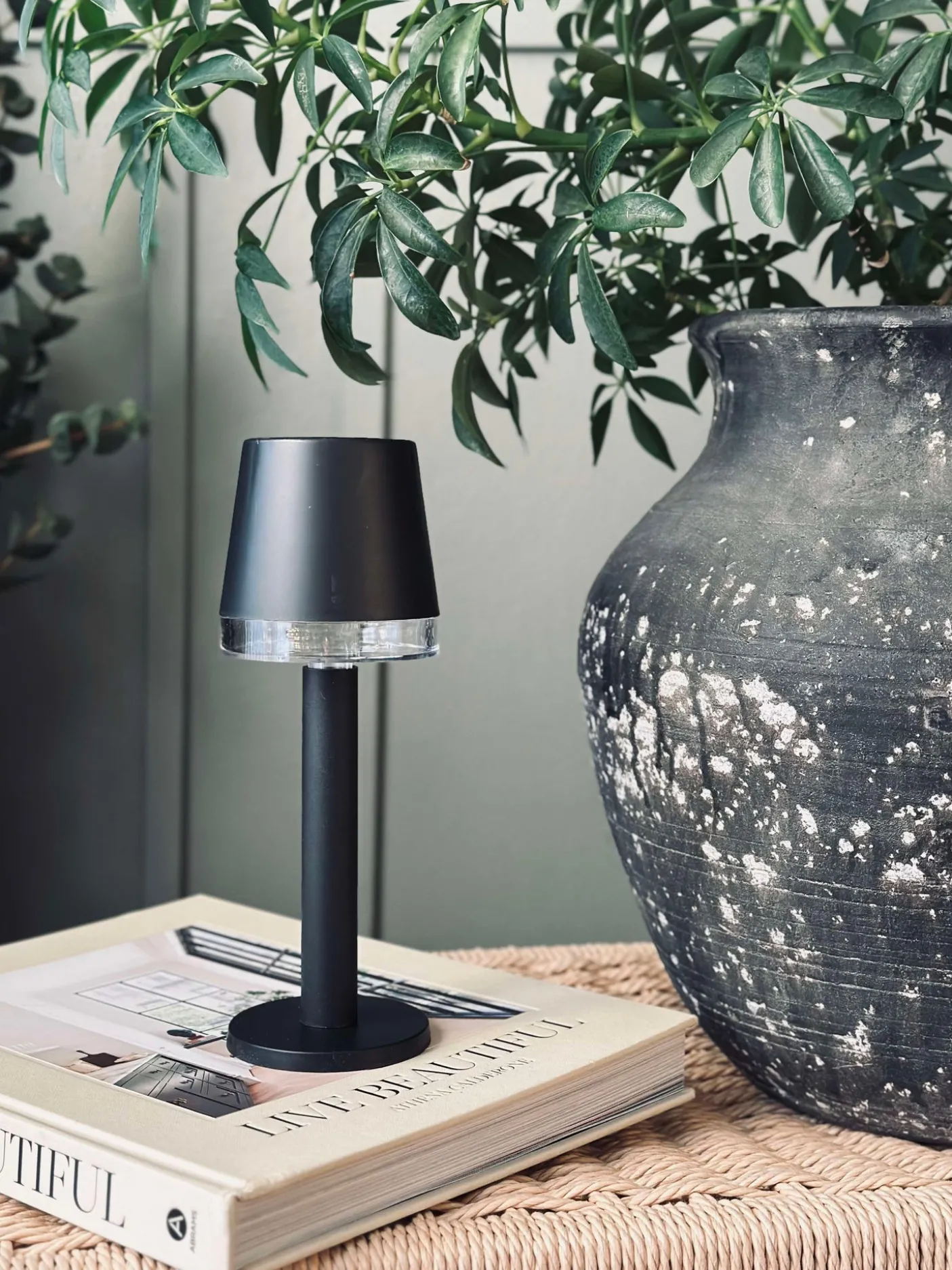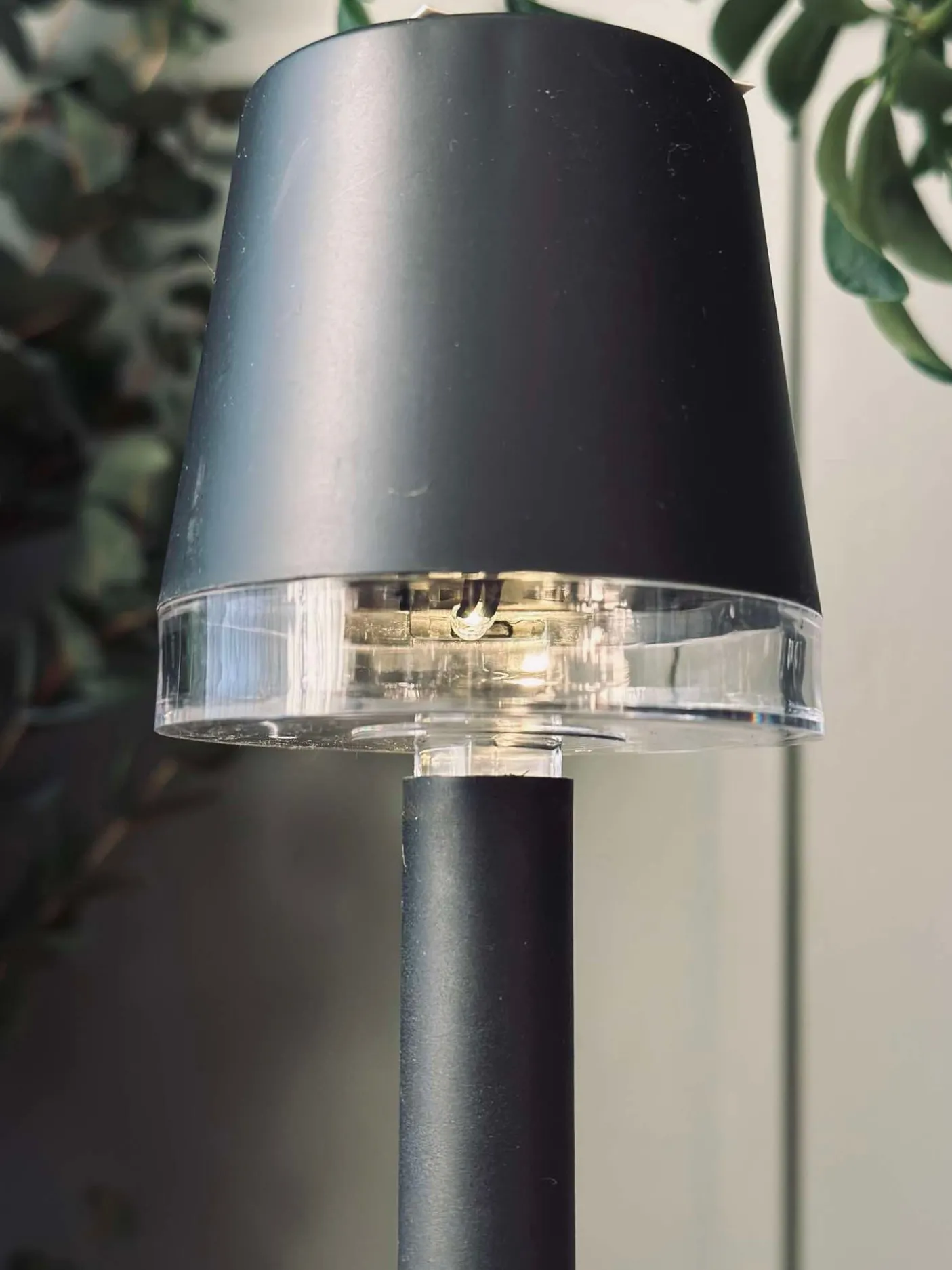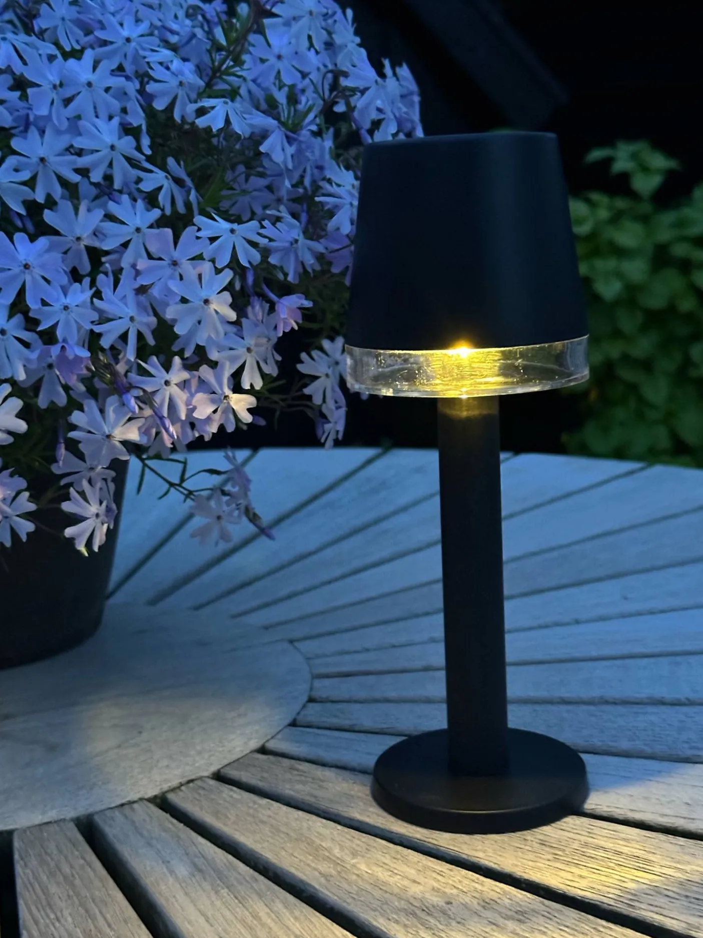Lampen er oplagt til at have på havebordet eller i campingvognen.