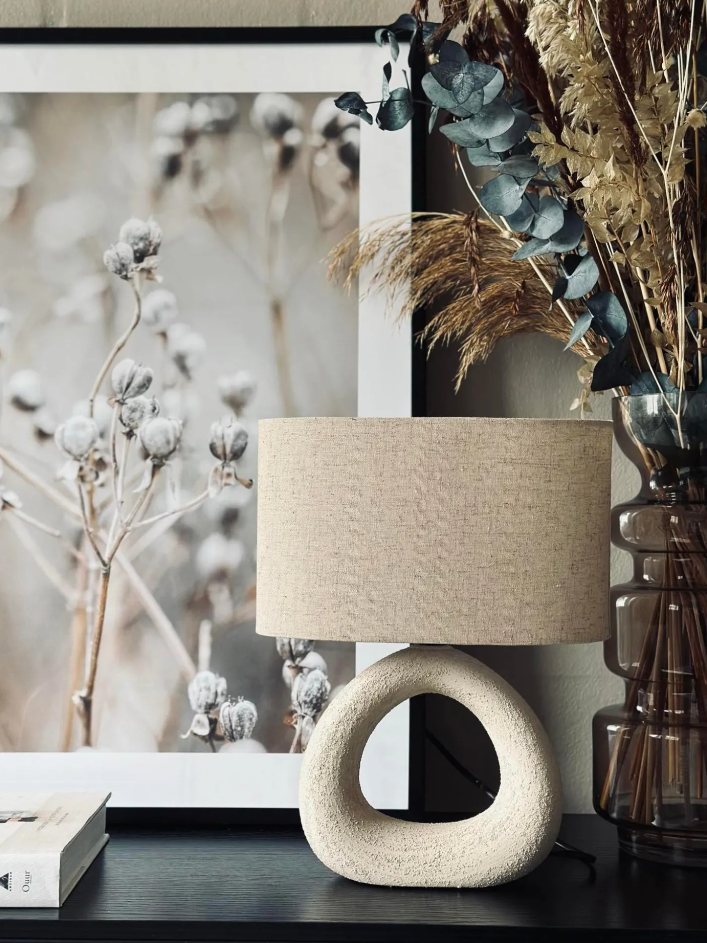 Super flot bordlampe i stentøj.