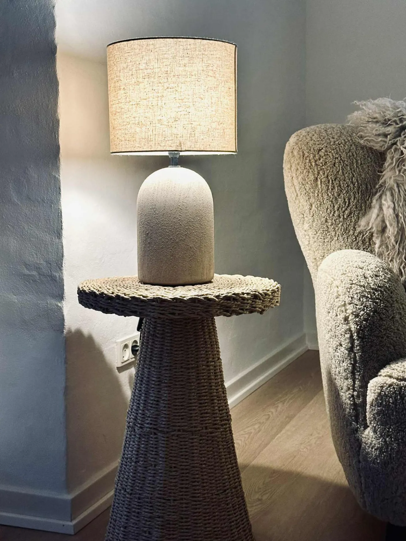 Super flot bordlampe i stentøj.