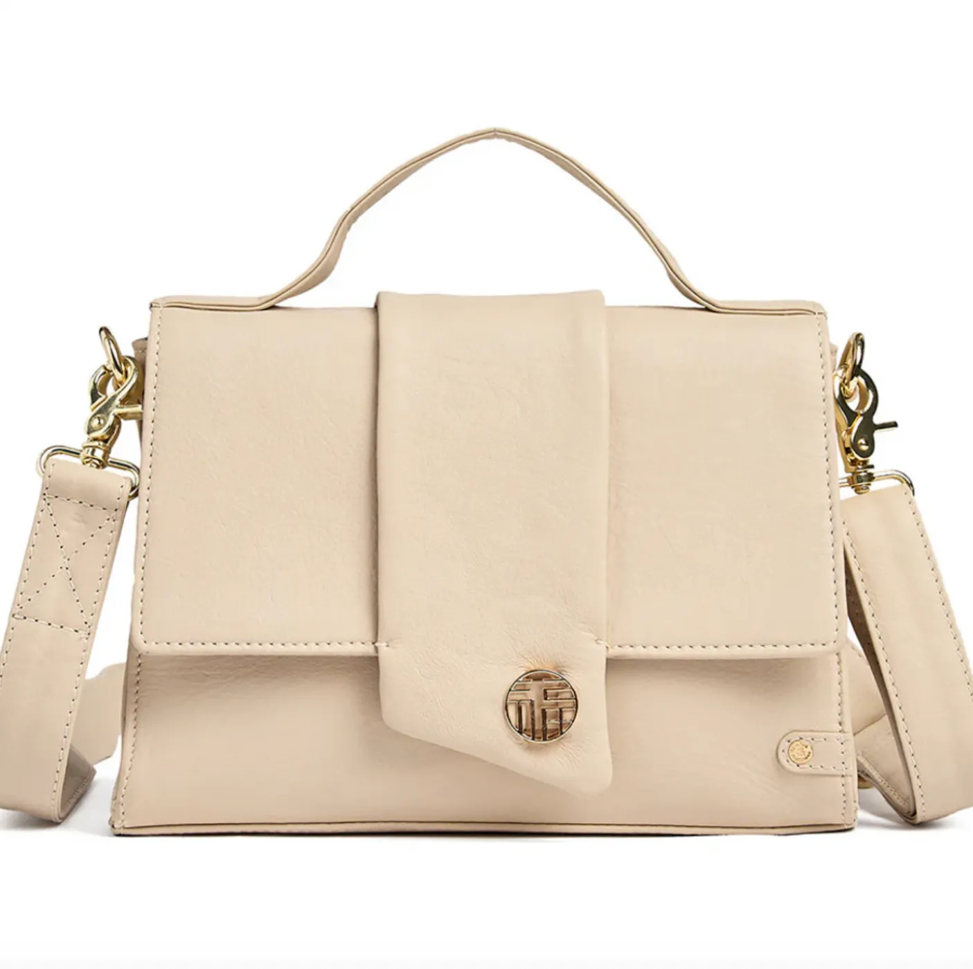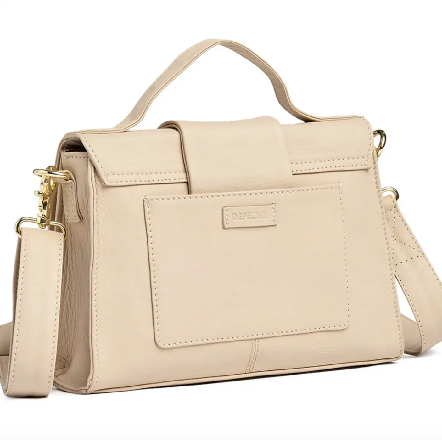 Denne håndtaske er både elegant og praktisk, og den tilføjer et sofistikeret touch til enhver garderobe. Tasken er fremstillet i førsteklasses skindkvalitet og lukkes med en flap, som er fastgjort med en magnetisk knap. Flappen er smukt dekoreret med en gulddetalje, der giver tasken et luksuriøst og moderne udtryk.