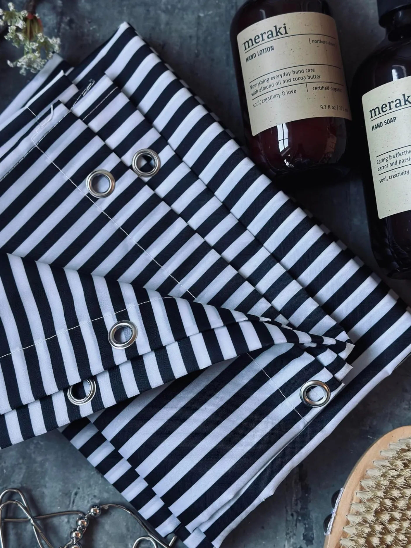 Badeforhæng med flotte striber.