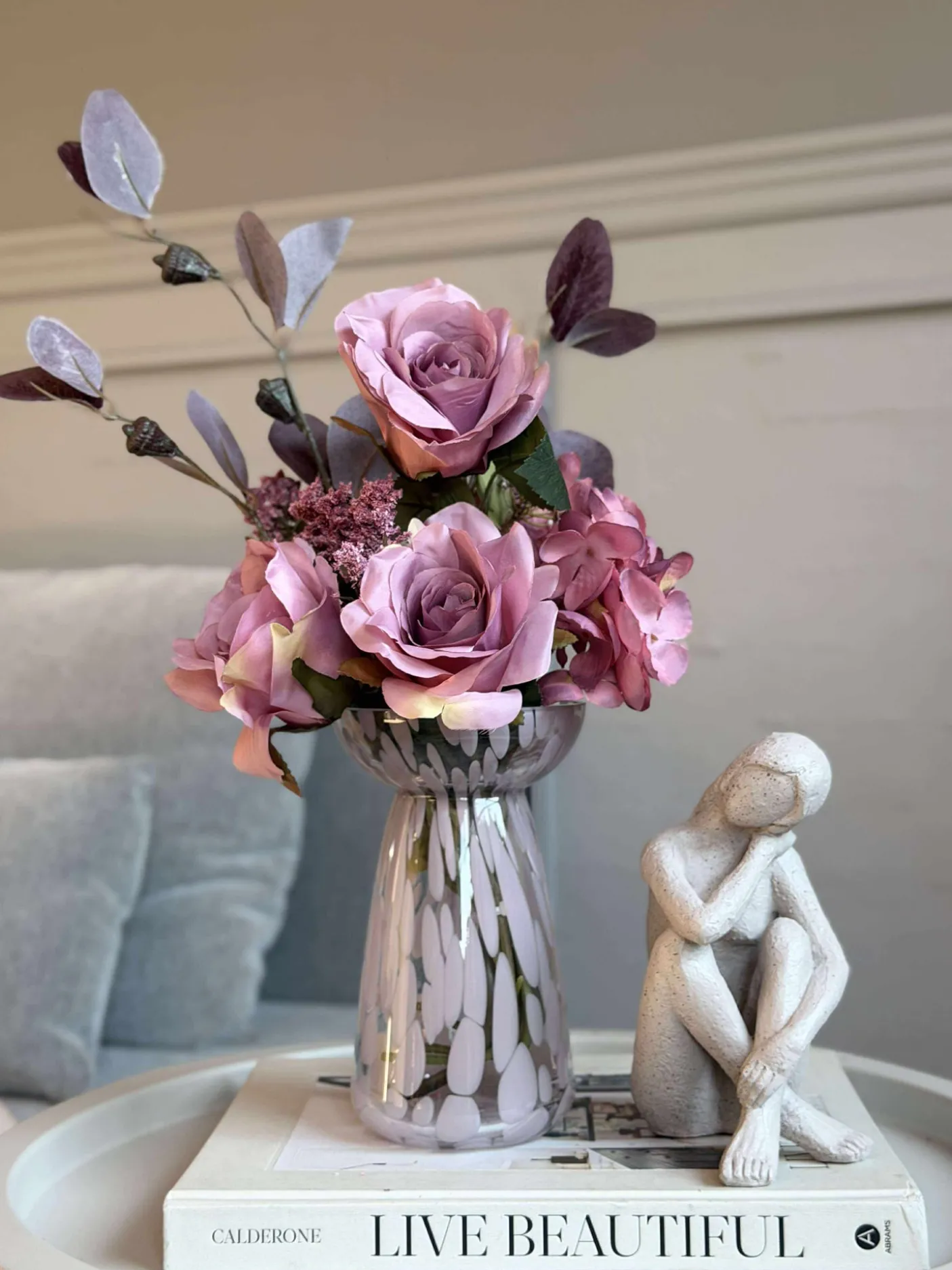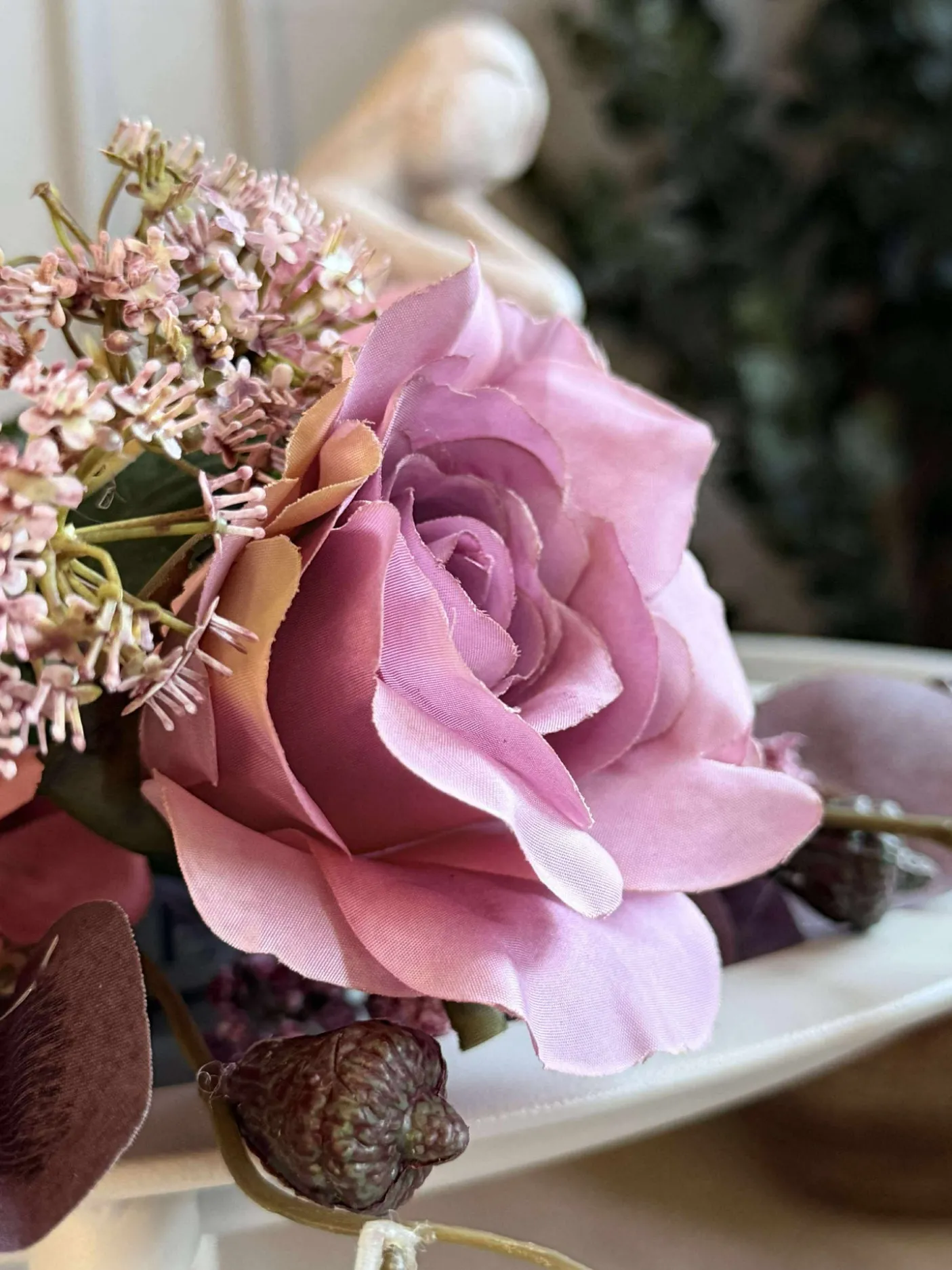 Blomsterne er kunstige og holder derfor år efter år.