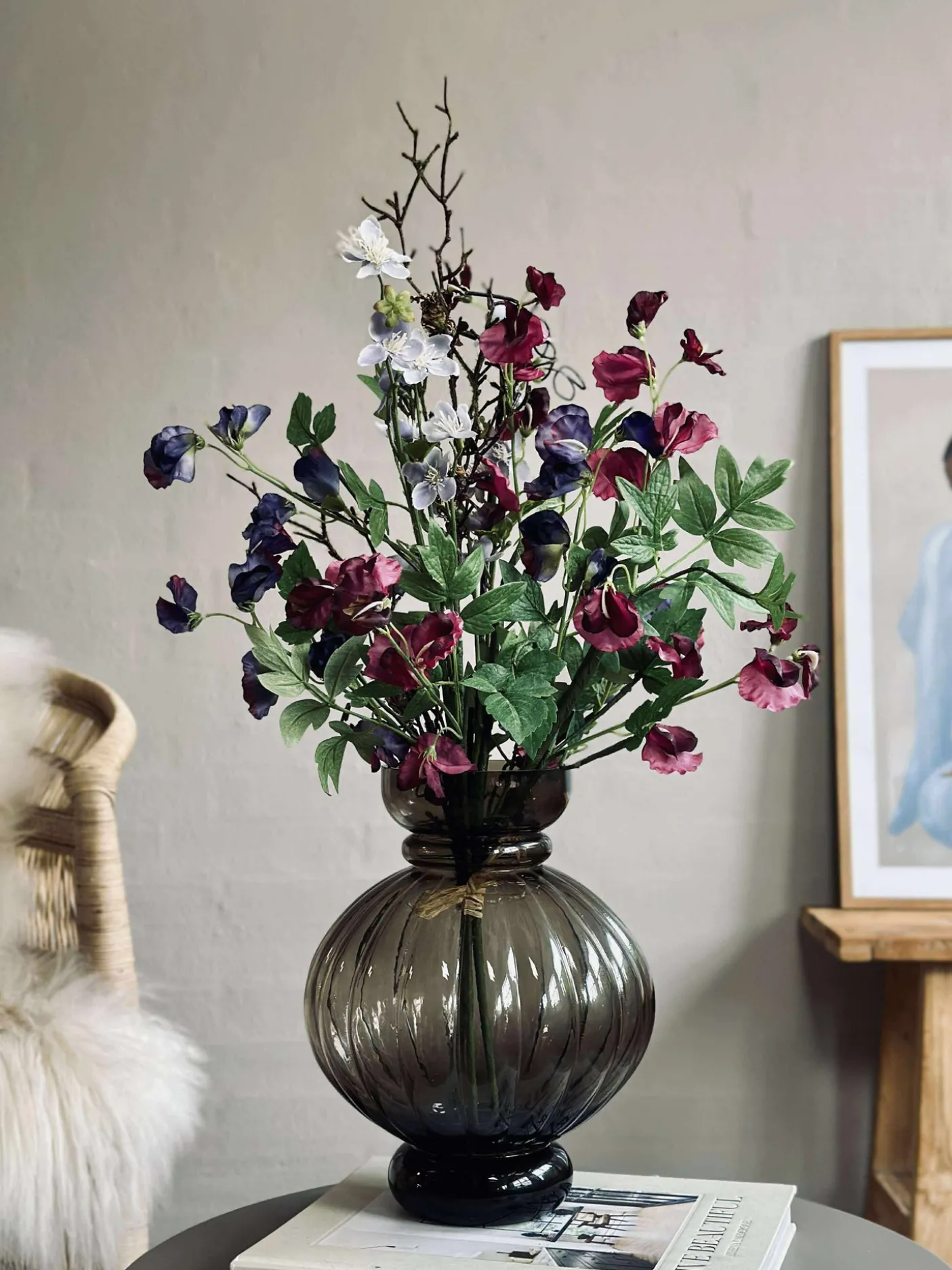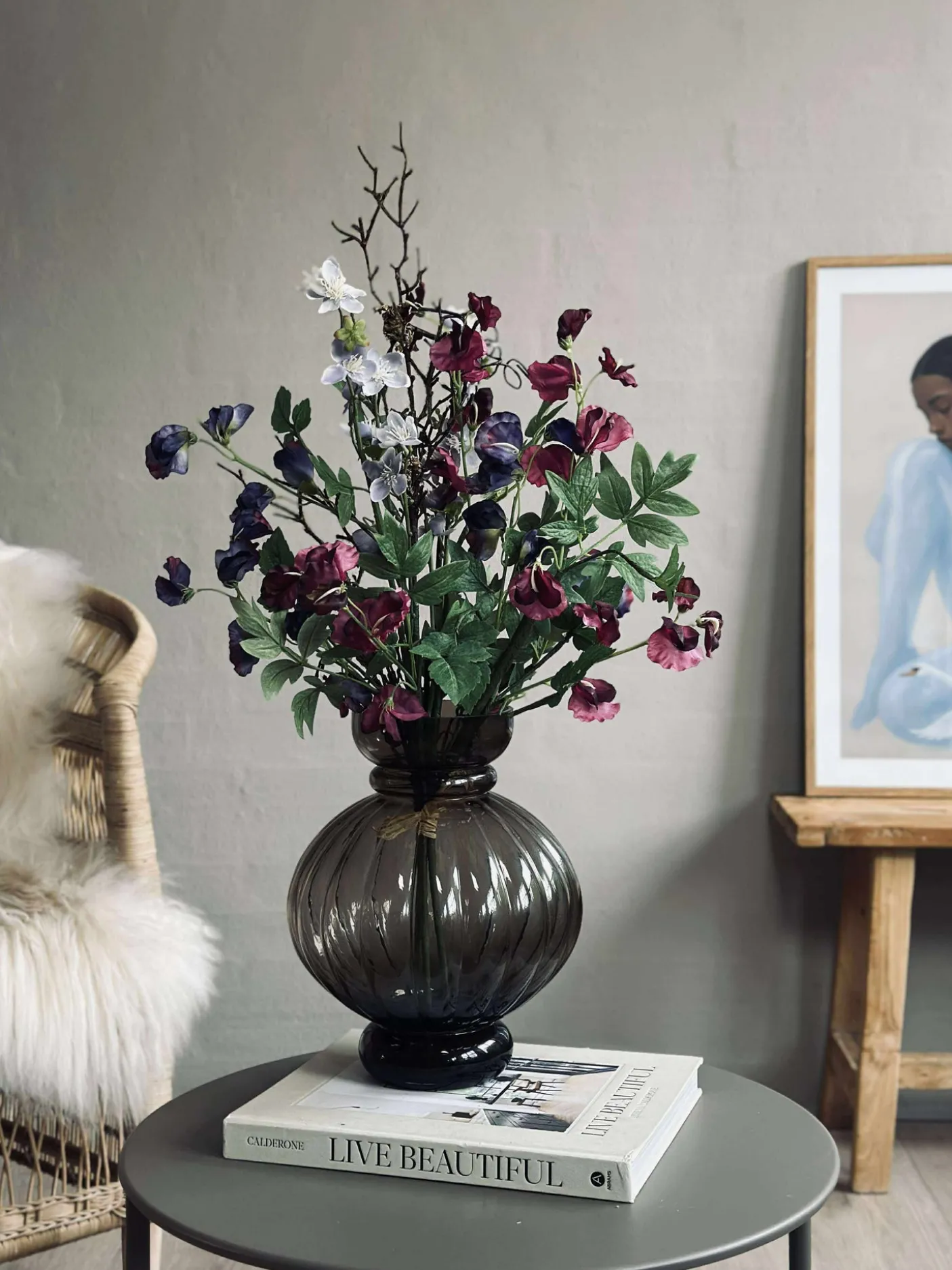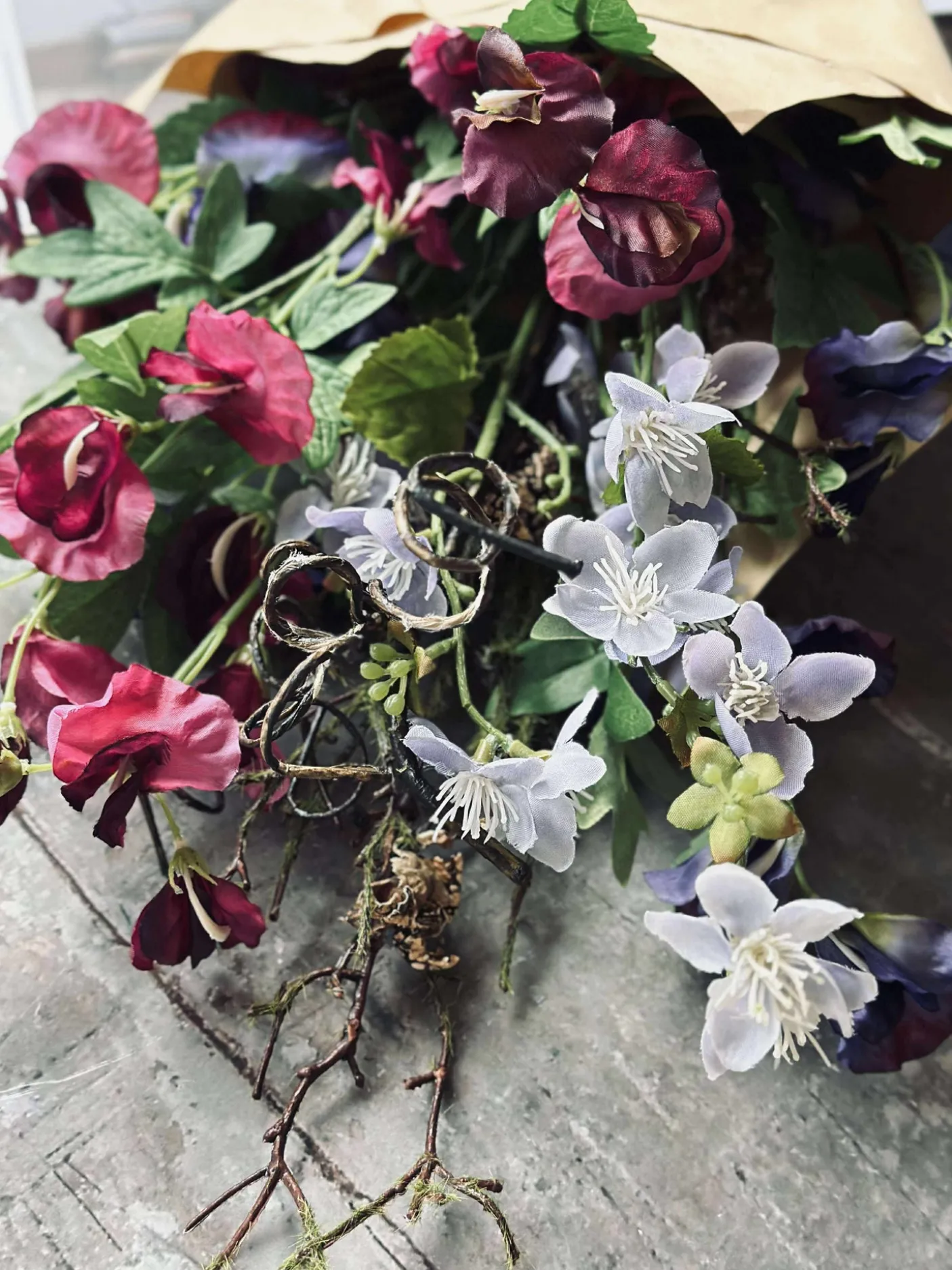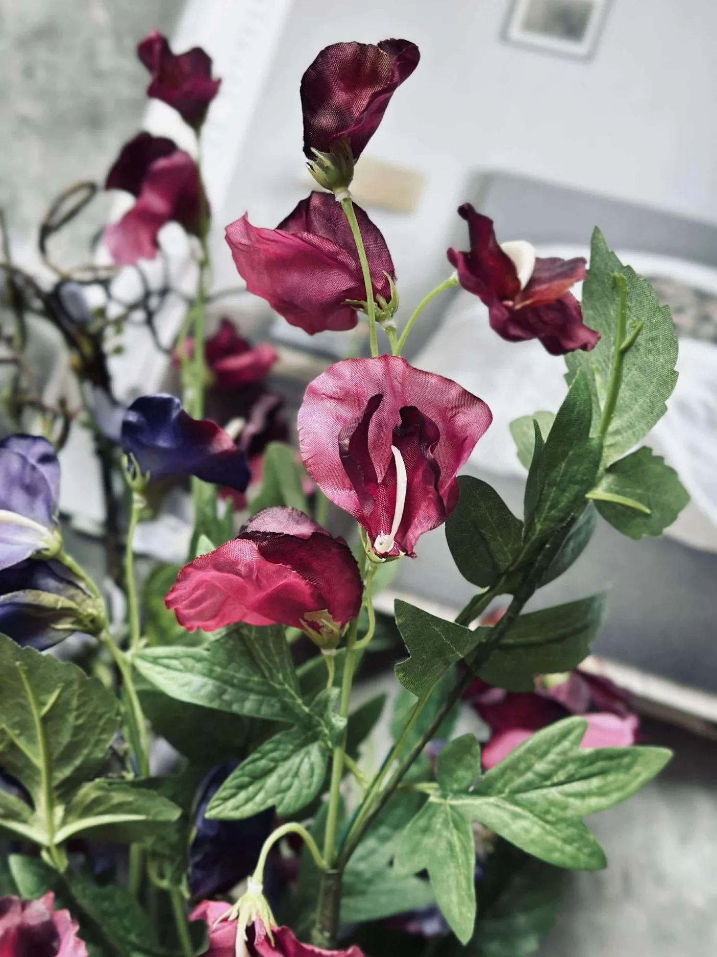 Blomsterne er kunstige og holder derfor år efter år.