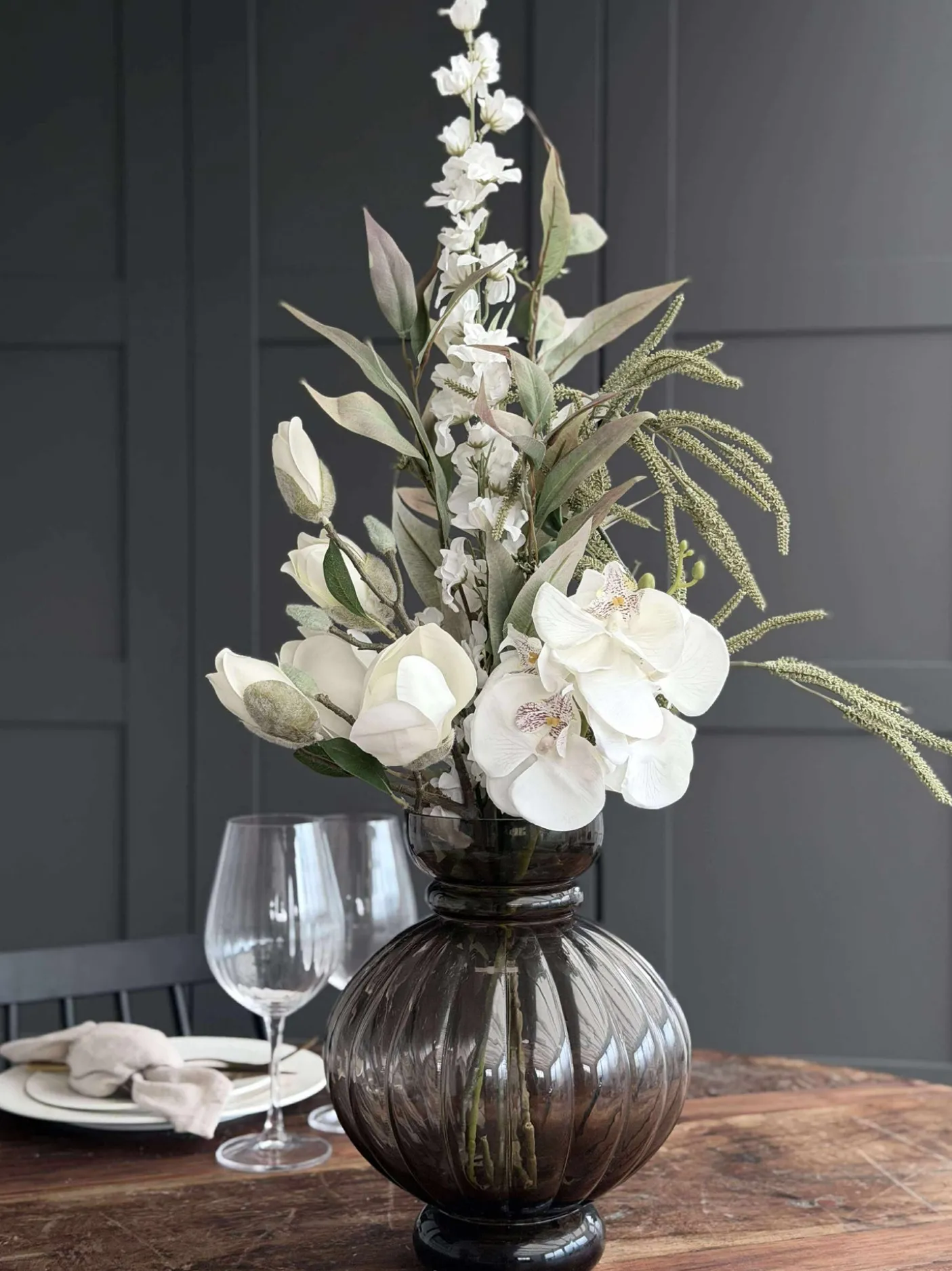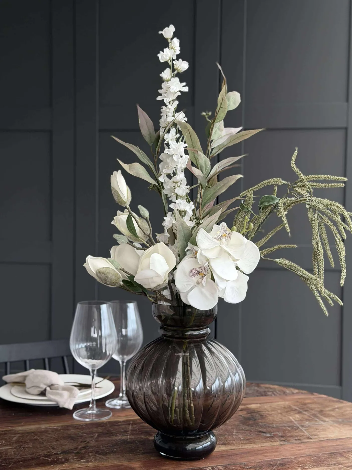 Blomsterne er kunstige og holder derfor år efter år.