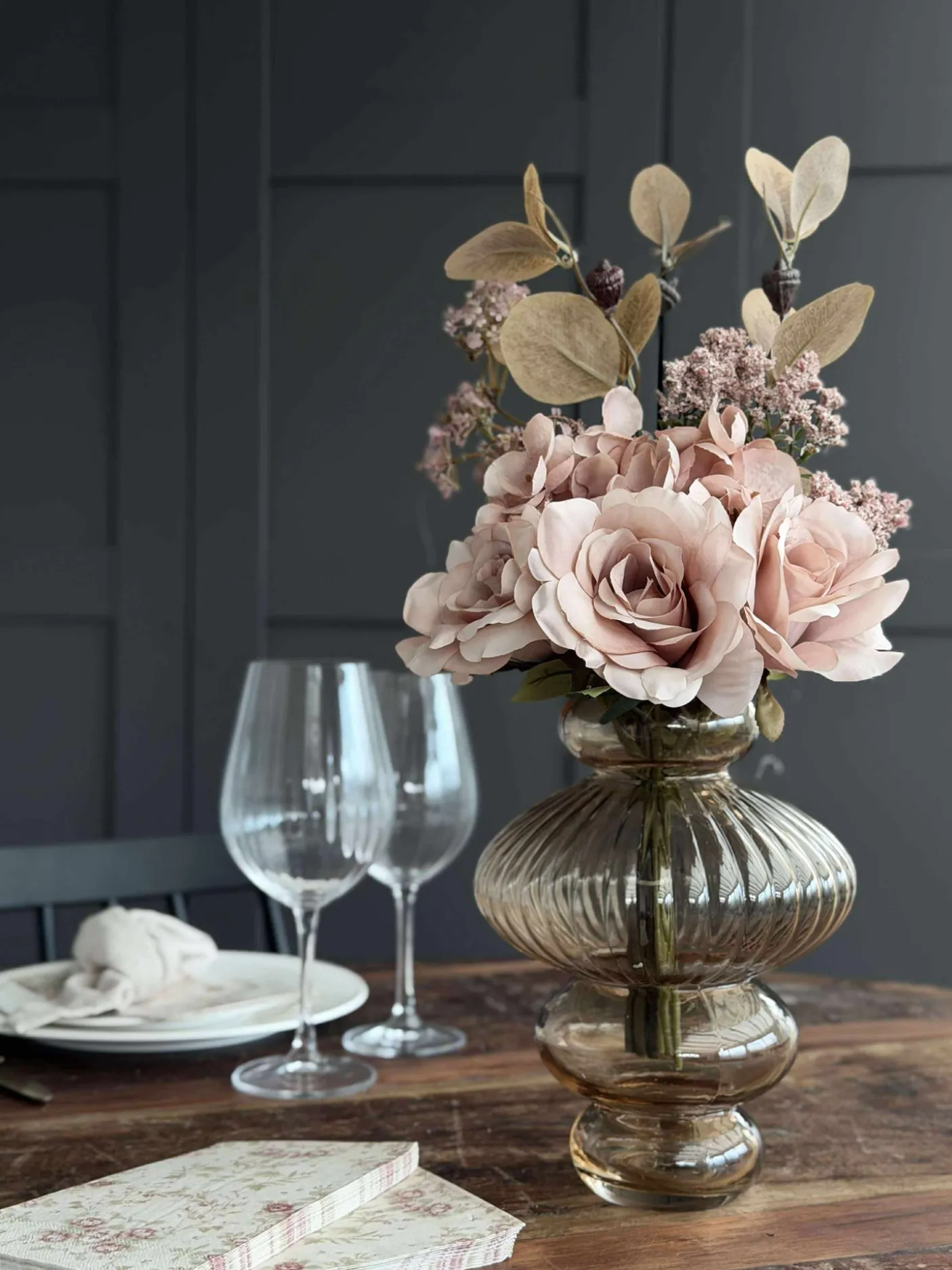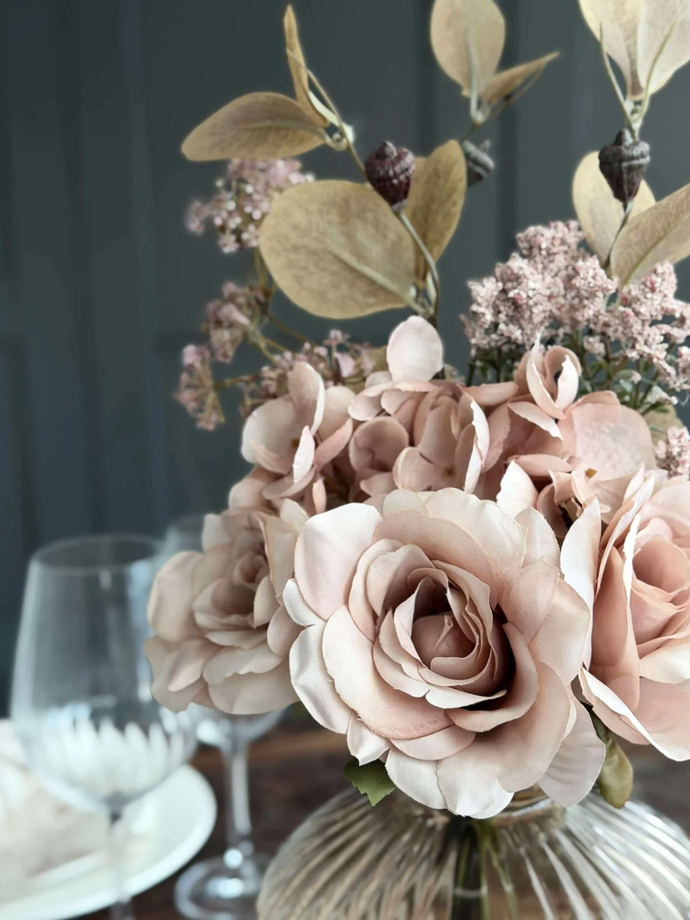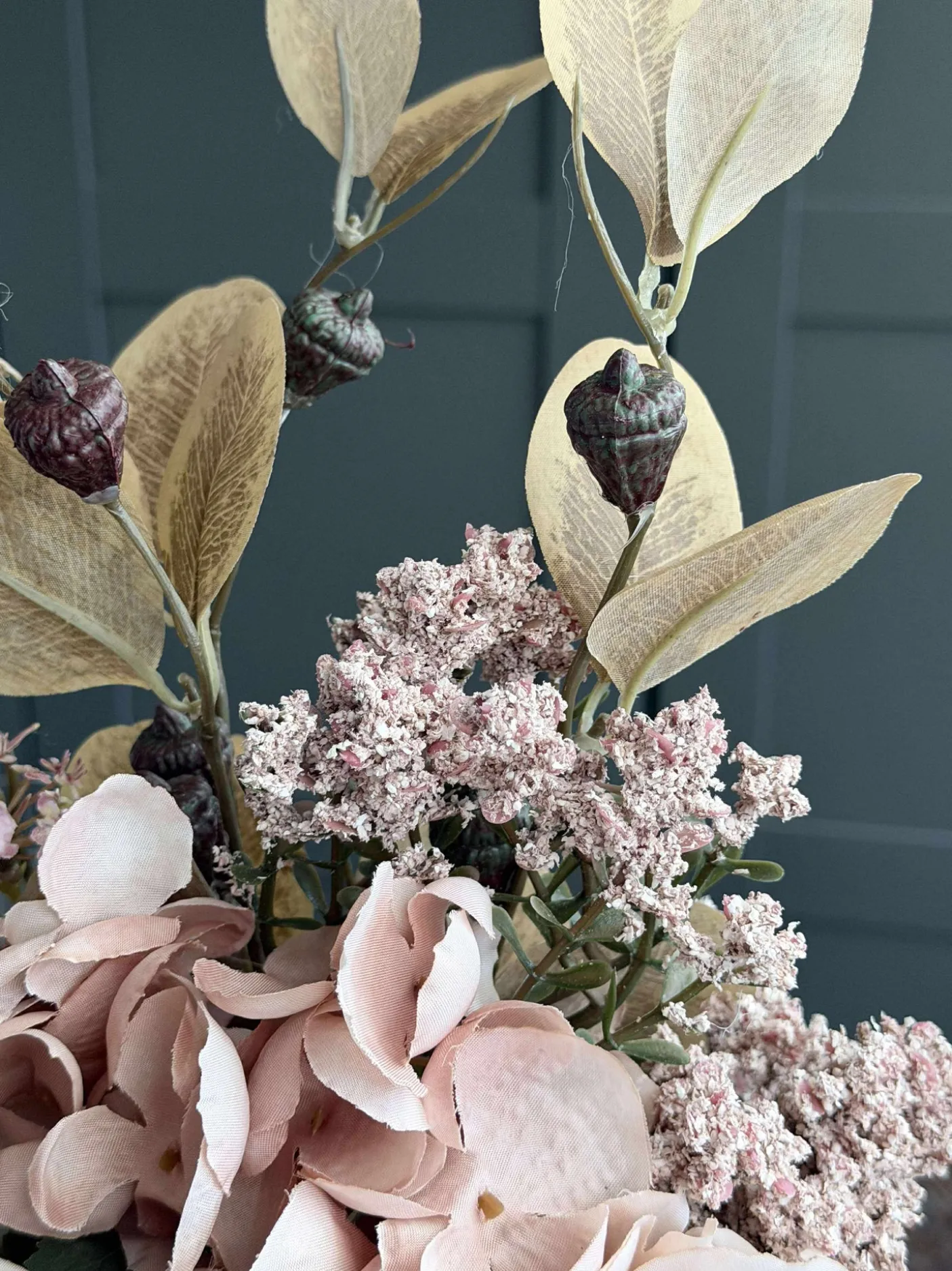 Blomsterne er kunstige og holder derfor år efter år.