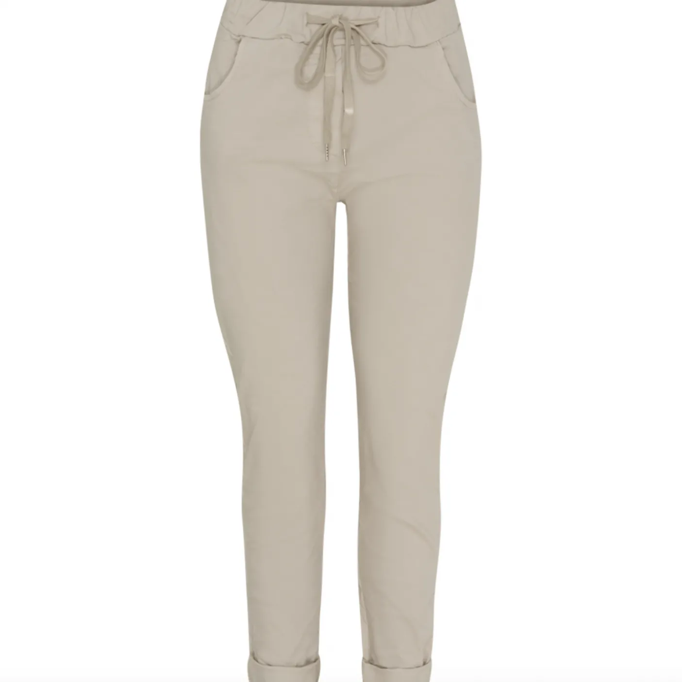 Bukser Kalie i beige er super skønne bukser med stretch. Et par alsidige bukser til garderoben, udført i en viskoseblanding. Fås i størrelserne S/M og L/XL med forskellig længde for et tilpasset snit. Den beige farve giver et neutralt og roligt udtryk.