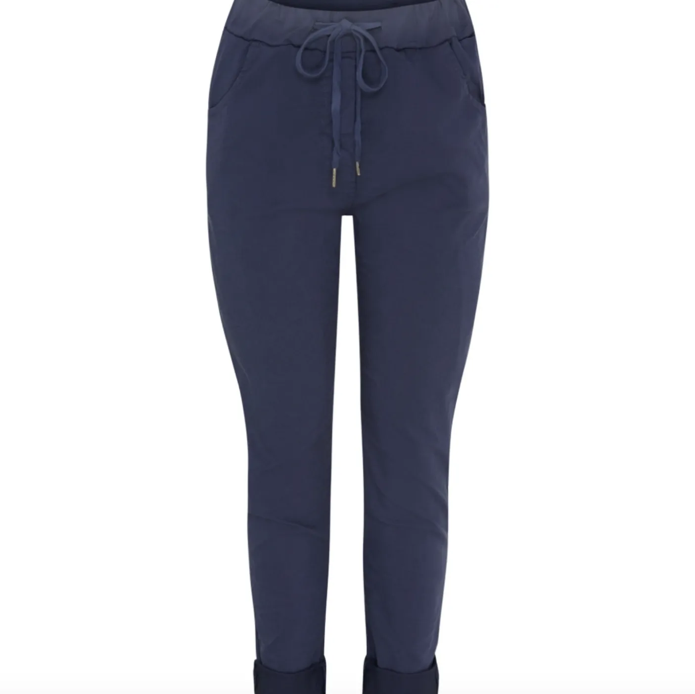 - Elastanindholdet giver bukserne stretch og bevægelsesfrihed.