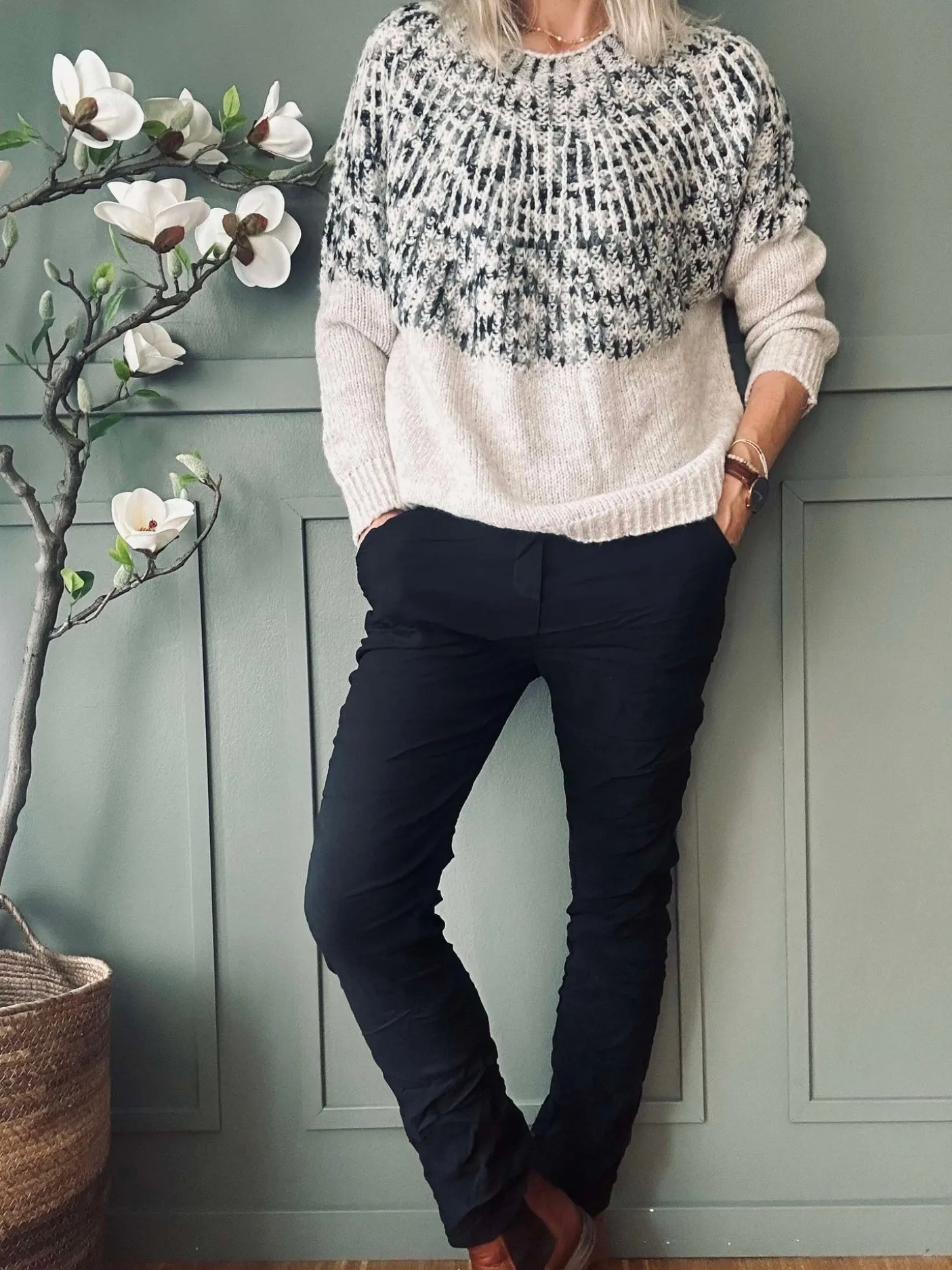 Bindebåndet i taljen fungerer samtidig som et stilfuldt detaljevalg og gør det muligt at justere snittet visuelt. Sæsonangivelsen er helårs, og det ensfarvede, rolige udtryk gør bukserne nemme at kombinere med både bluser og lette strikvarer for et afdæmpet outfit.