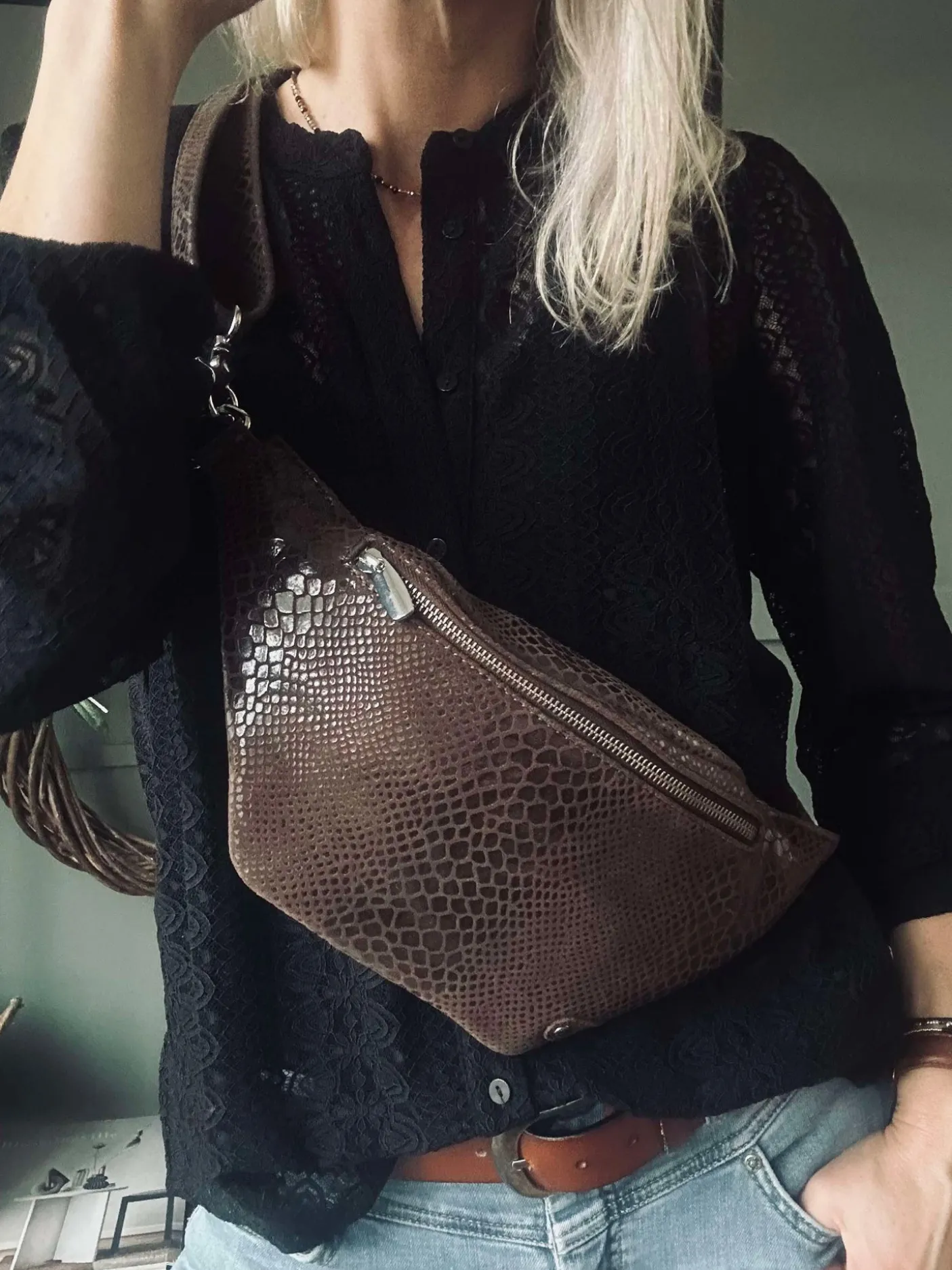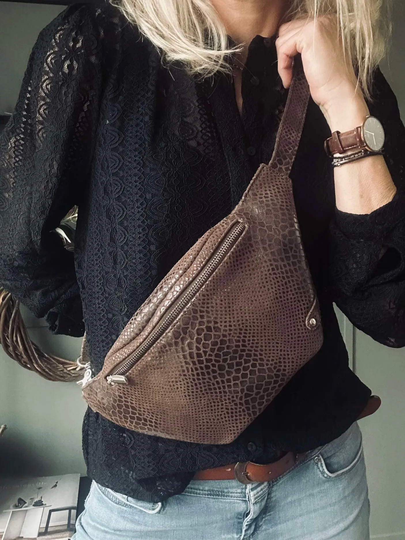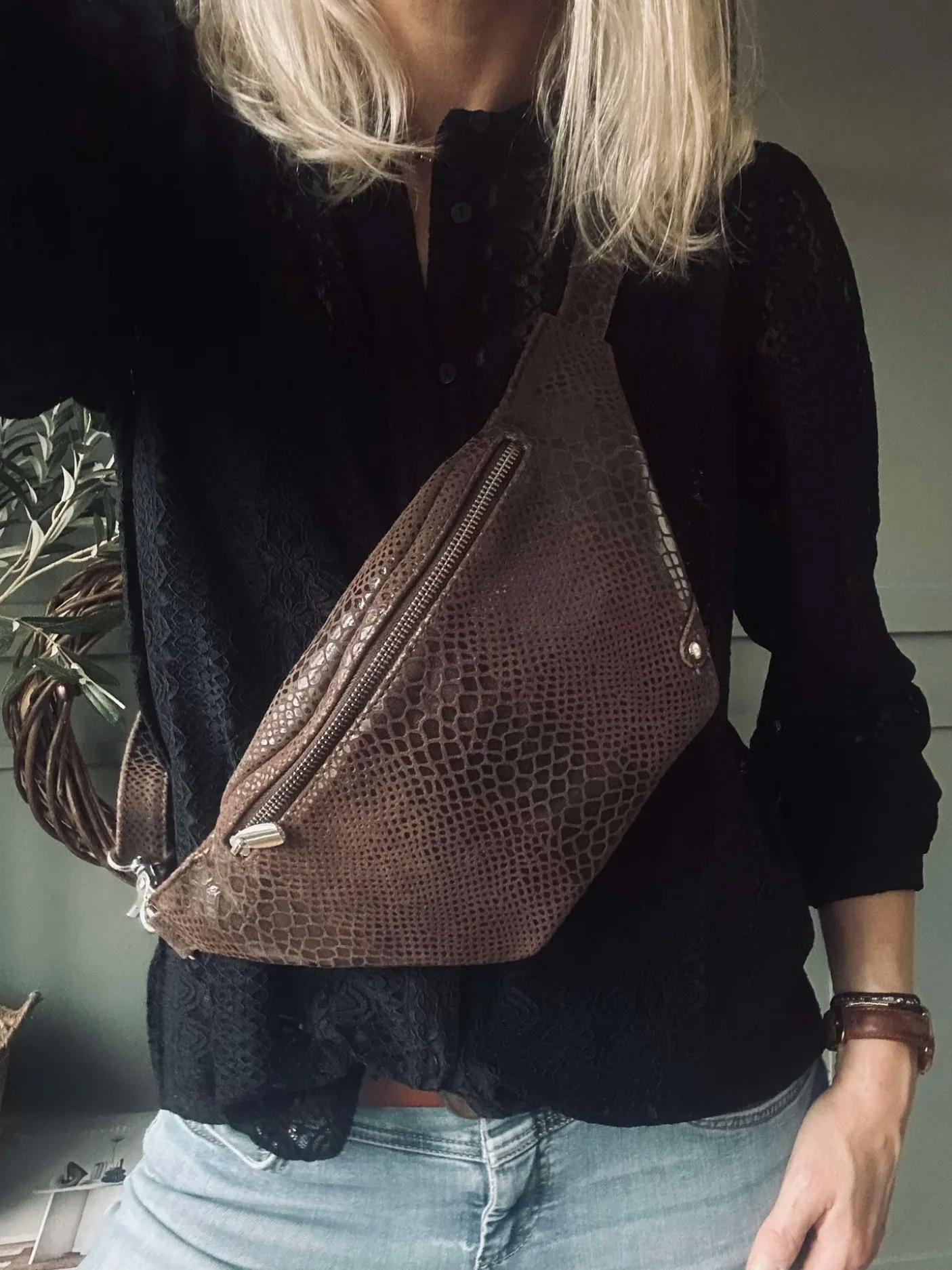Bæltetaske / bumbag i blød læderkvalitet. Bumbagen har et super enkelt og smukt look, som giver den mange anvendelsesmuligheder. Tasken lukkes med lynlås i toppen.
