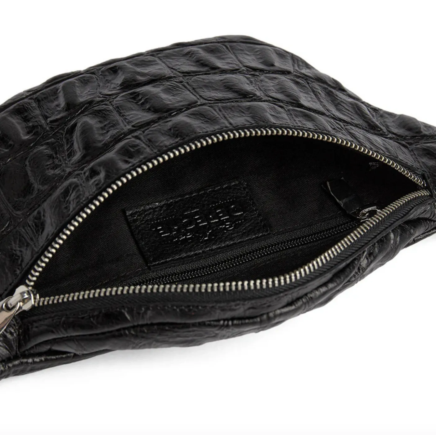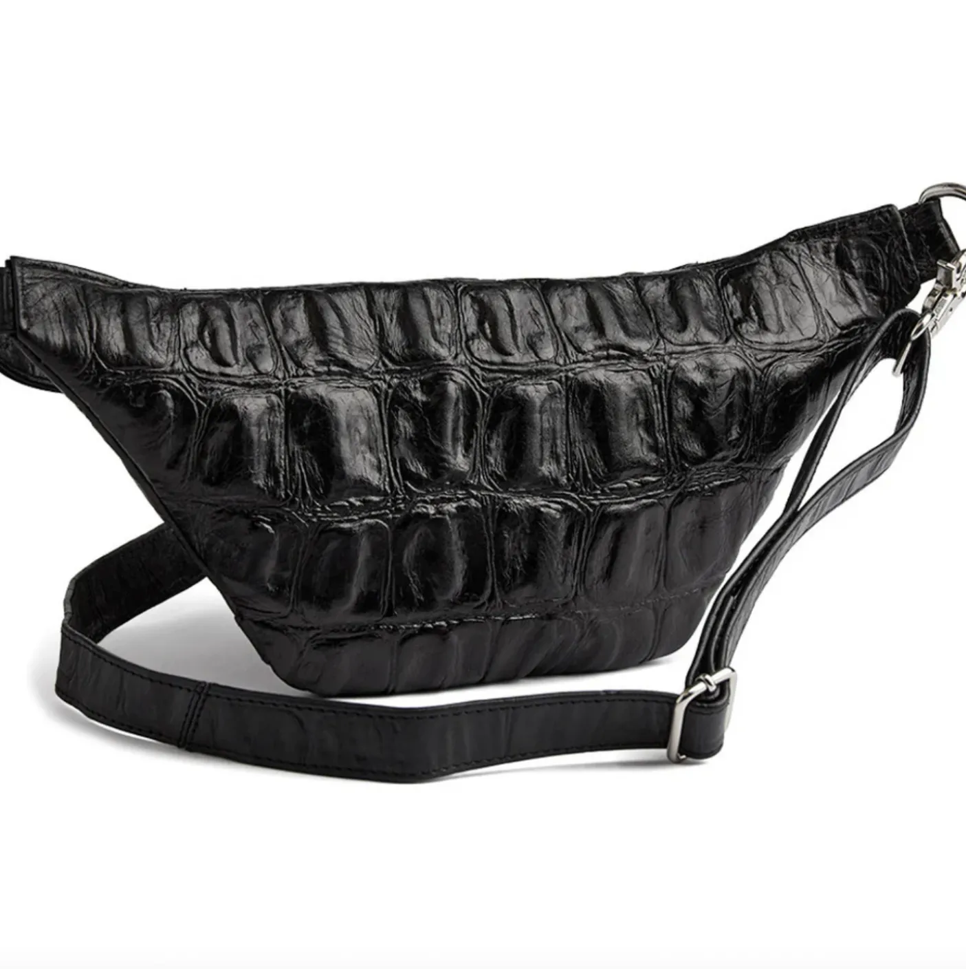 Et skarpt udtryk og gennemtænkt funktionalitet mødes i denne bumbag i eksklusivt croco-præget skind. Den strukturerede overflade giver tasken et sofistikeret og moderne udtryk, der emmer af selvtillid og stil – perfekt til dig, der ønsker en taske med både karakter og klasse.