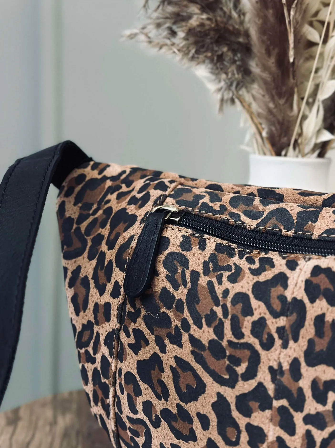 Lækker bumbag i ruskind med leopard print.
