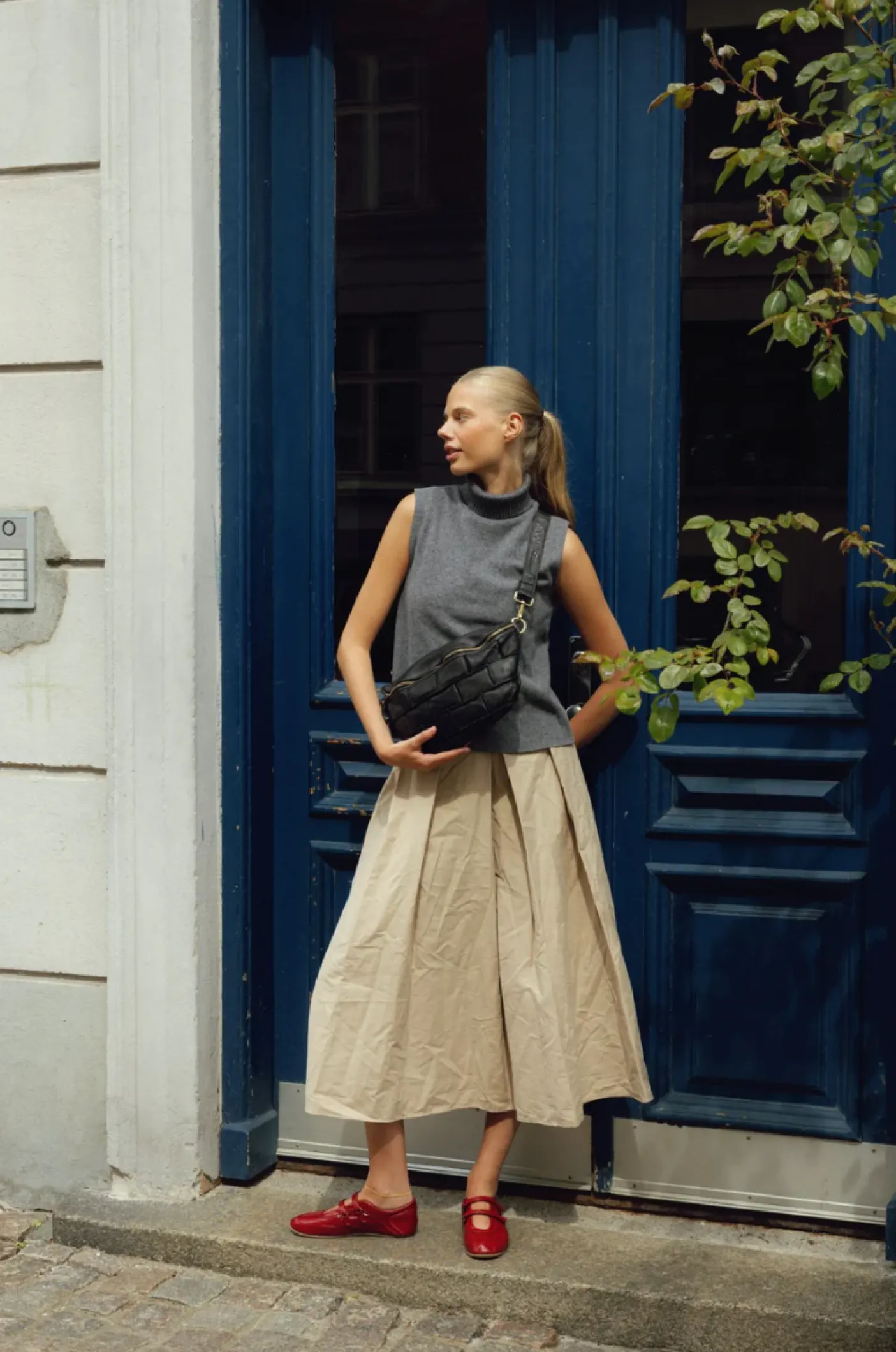 Den har en justerbar, aftagelig crossbody-rem, så du kan bære den på din måde eller som en clutch. Indeni finder du et rummeligt hovedrum – ideelt til at holde styr på alle dine vigtigste ting, uanset om du er på farten eller skal ud til en særlig lejlighed.