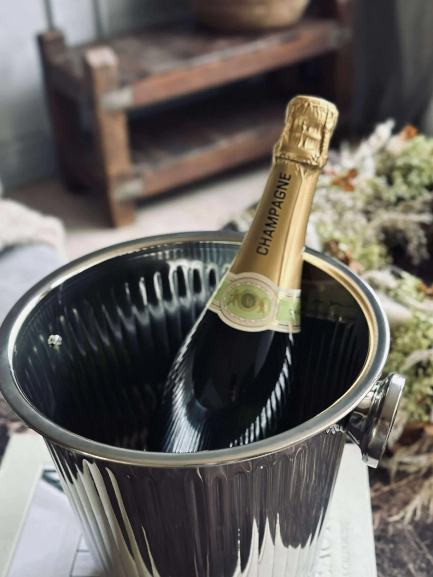 Smuk champagnekøler i rustfri stål.