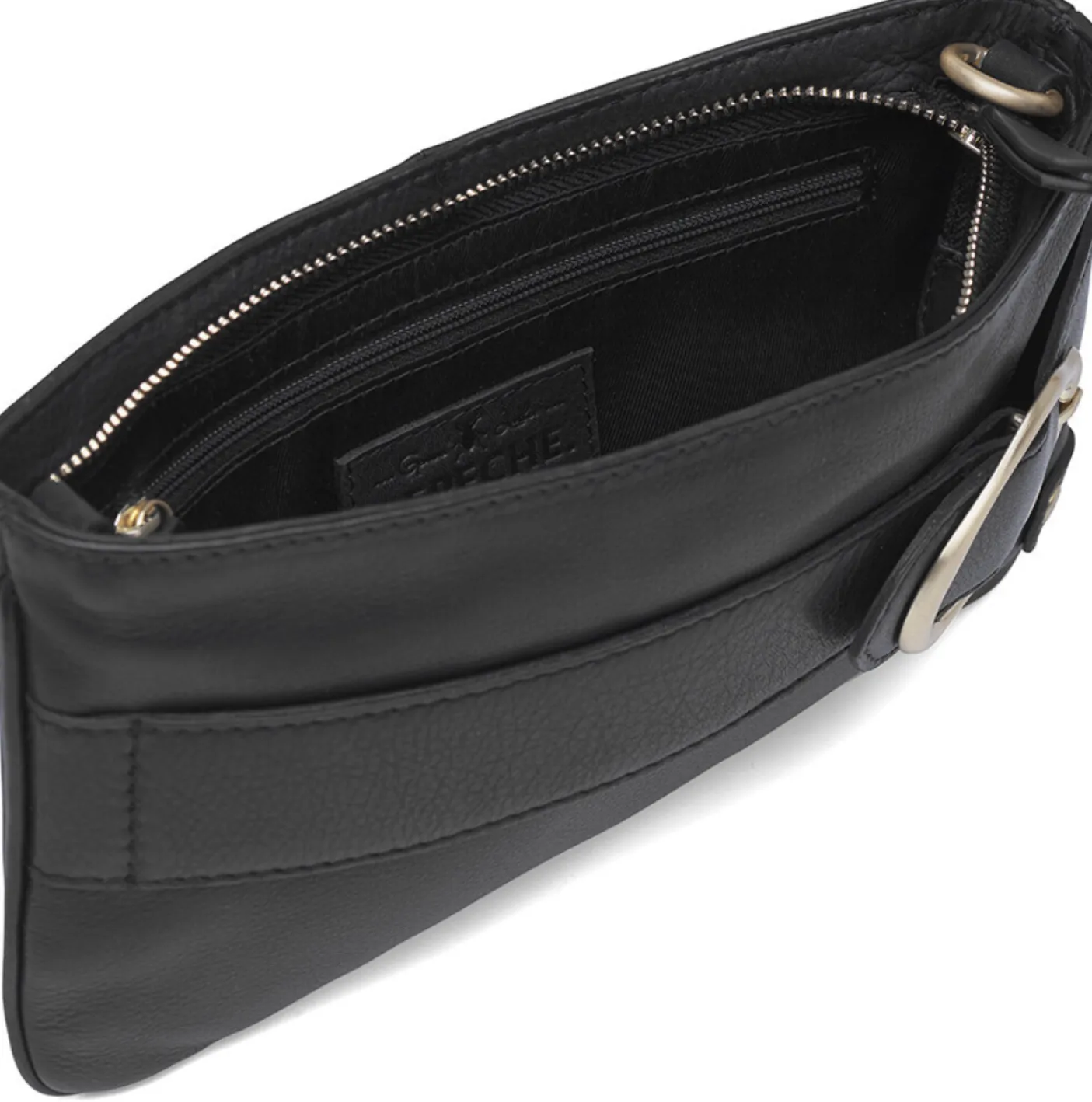 Clutchen er designet med en top lynlås lukning for sikker opbevaring. Indvendigt har koblingen en primær sektion, der er rummelig nok til dine daglige ting som en mobiltelefon, pung og mere. Derudover inkluderer den en lille lynlåslomme til nøgler eller andre småting.