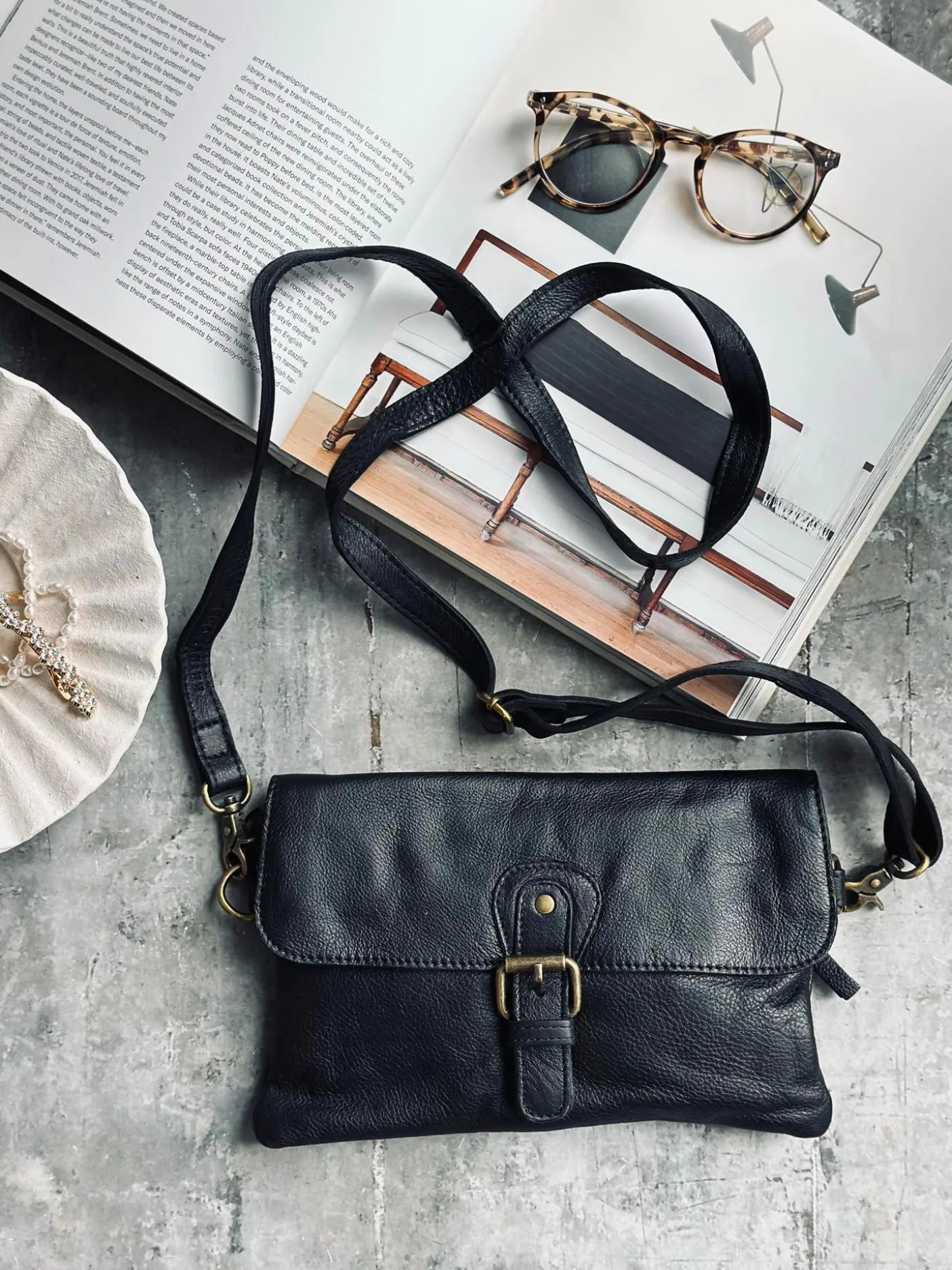 Udstyret med antik metalbeslag • Har et rummeligt hovedrum og en ekstra lynlåslomme indeni.