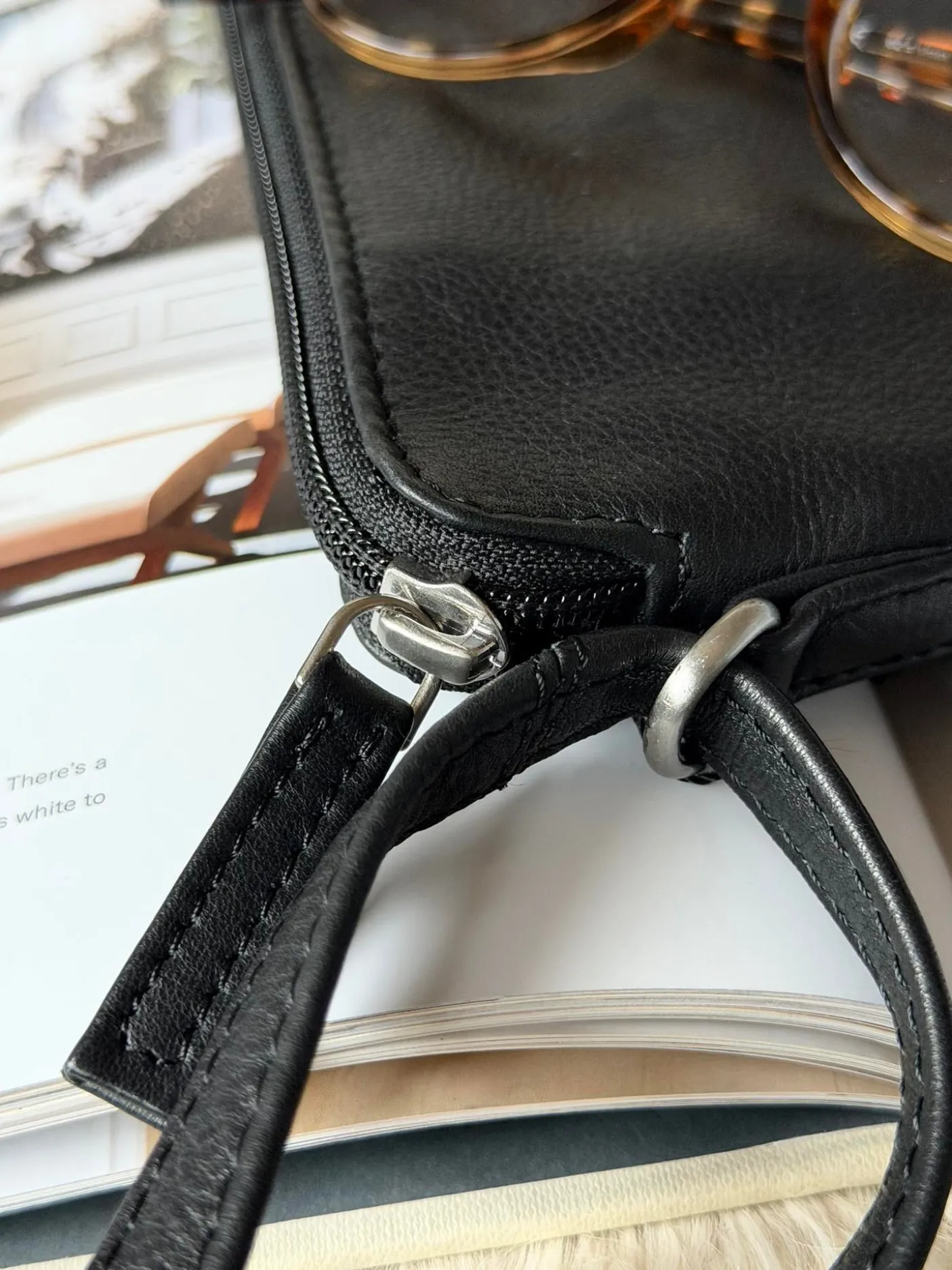 Tasken har lang justerbar rem.