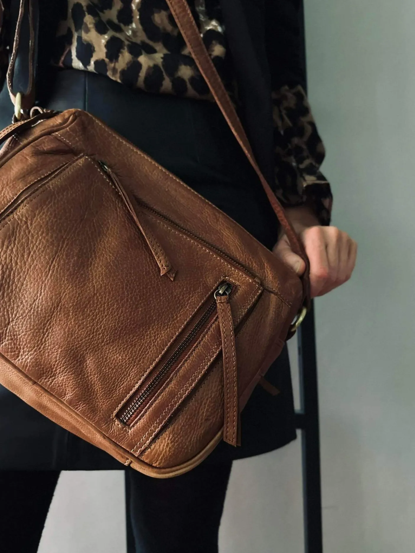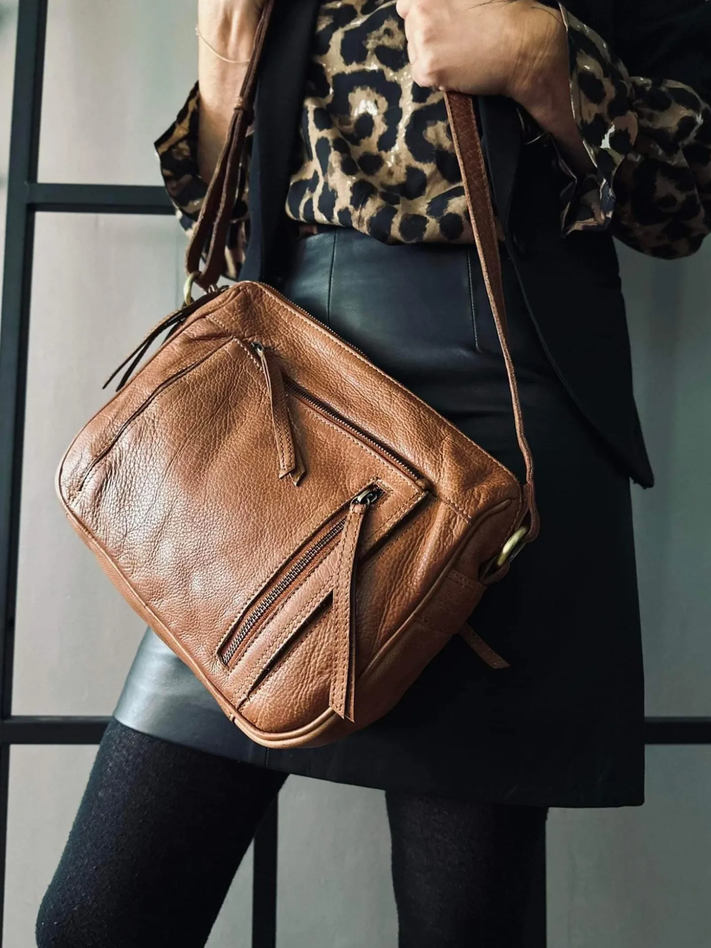 Tasken har en særlig høj skindkvalitet, da den er lavet i vasket skind.