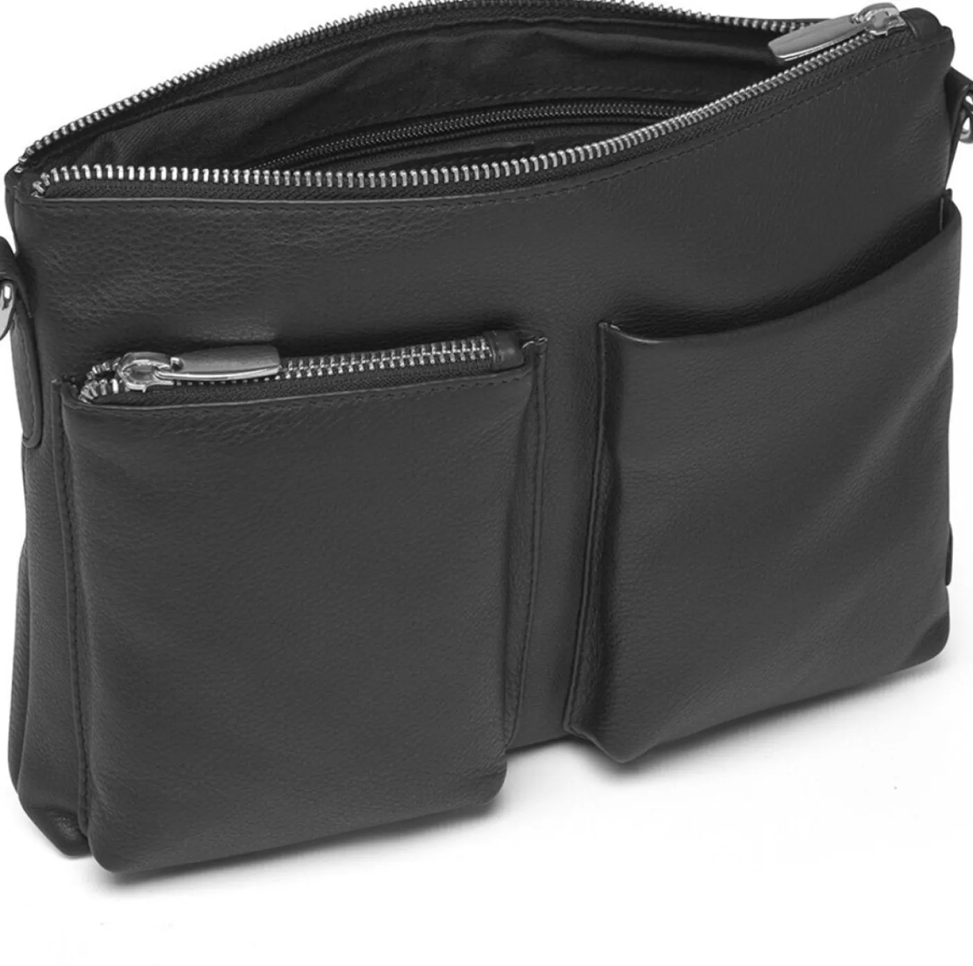 Tasken lukkes med en lynlås i toppen, hvilket giver sikker adgang til hovedrummet, som giver rigelig plads til hverdagens væsentlige ting såsom en mobiltelefon, pung og meget mere.
