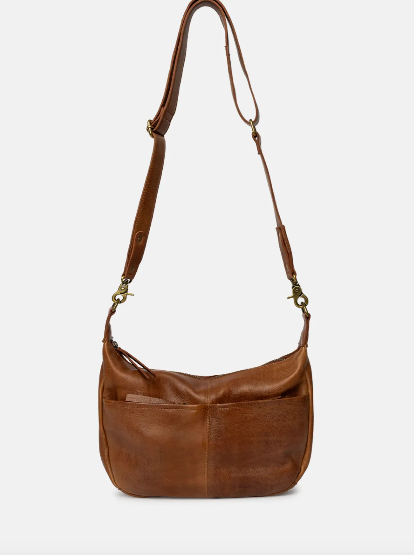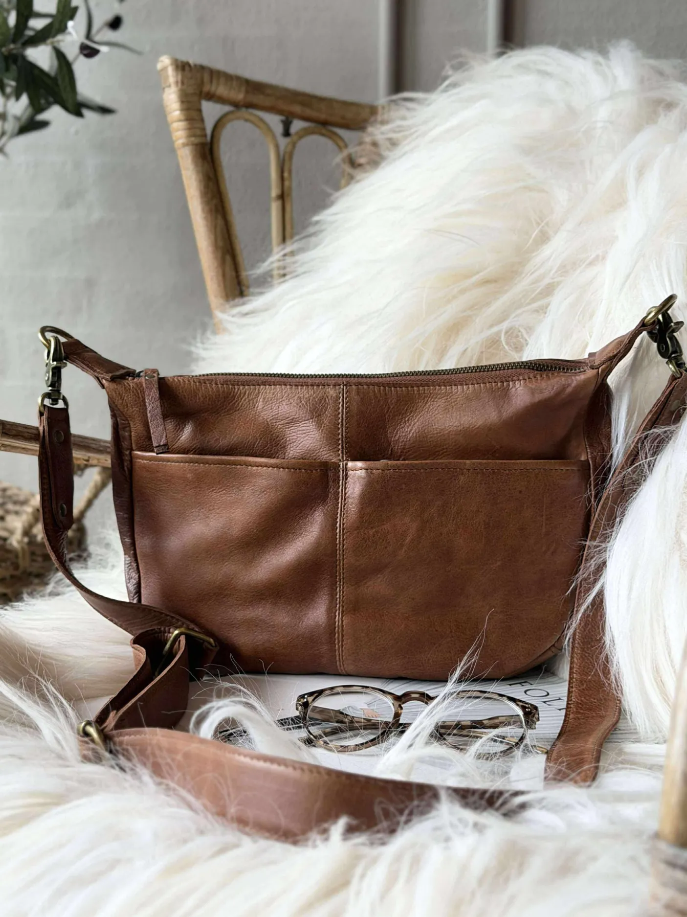 Den har en justerbar rem for en behagelig pasform og to lynlåslommer foran, smart skjult under en diskret designdetalje for et rent look. Trods sin kompakte størrelse tilbyder den et rummeligt hovedrum, hvilket gør den både praktisk og elegant – perfekt til hverdagsbrug.