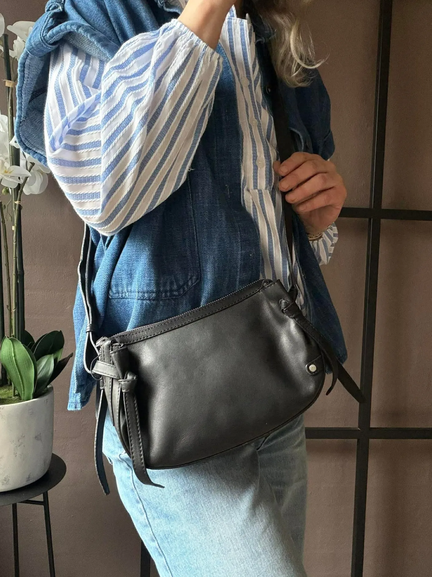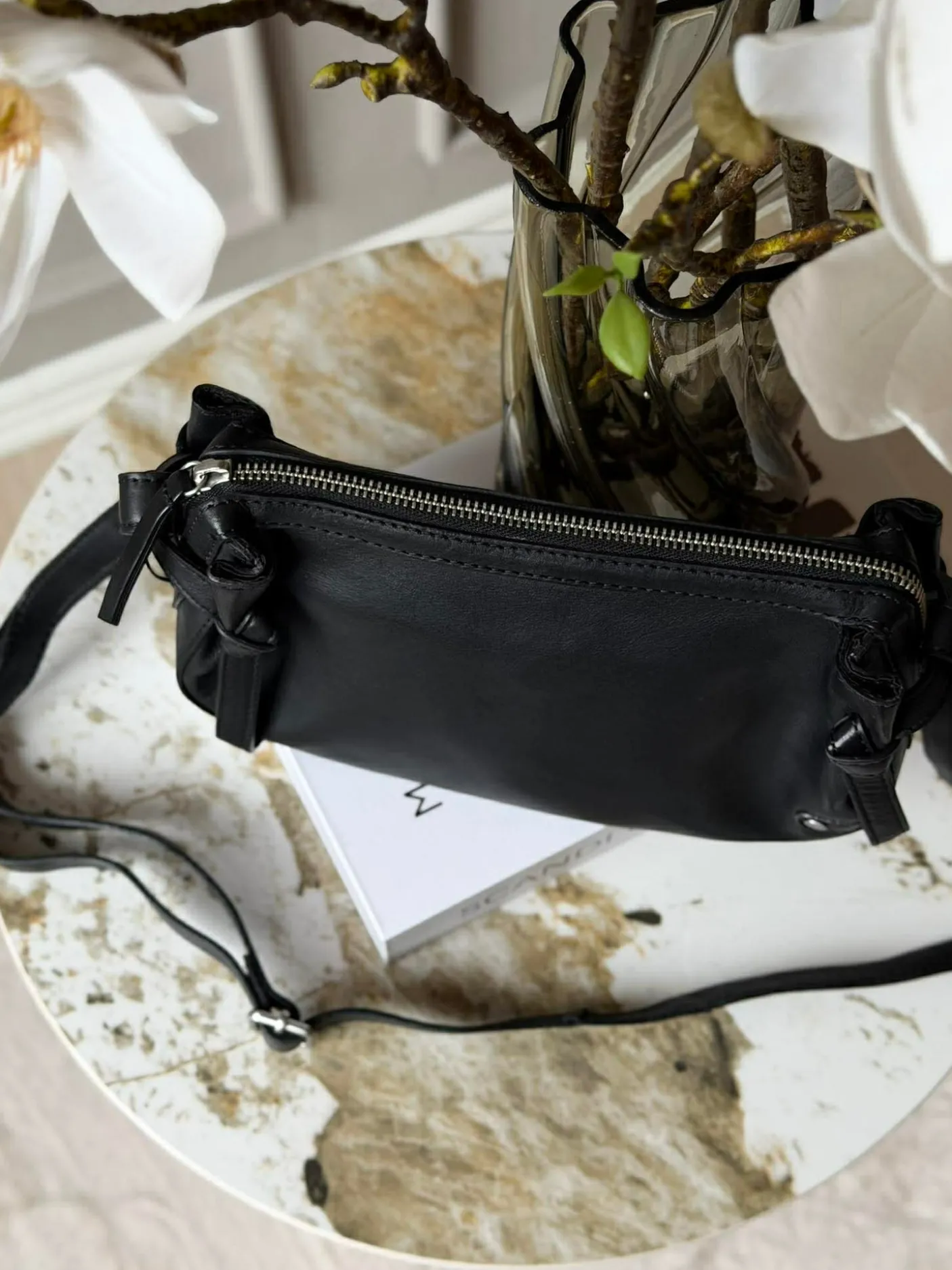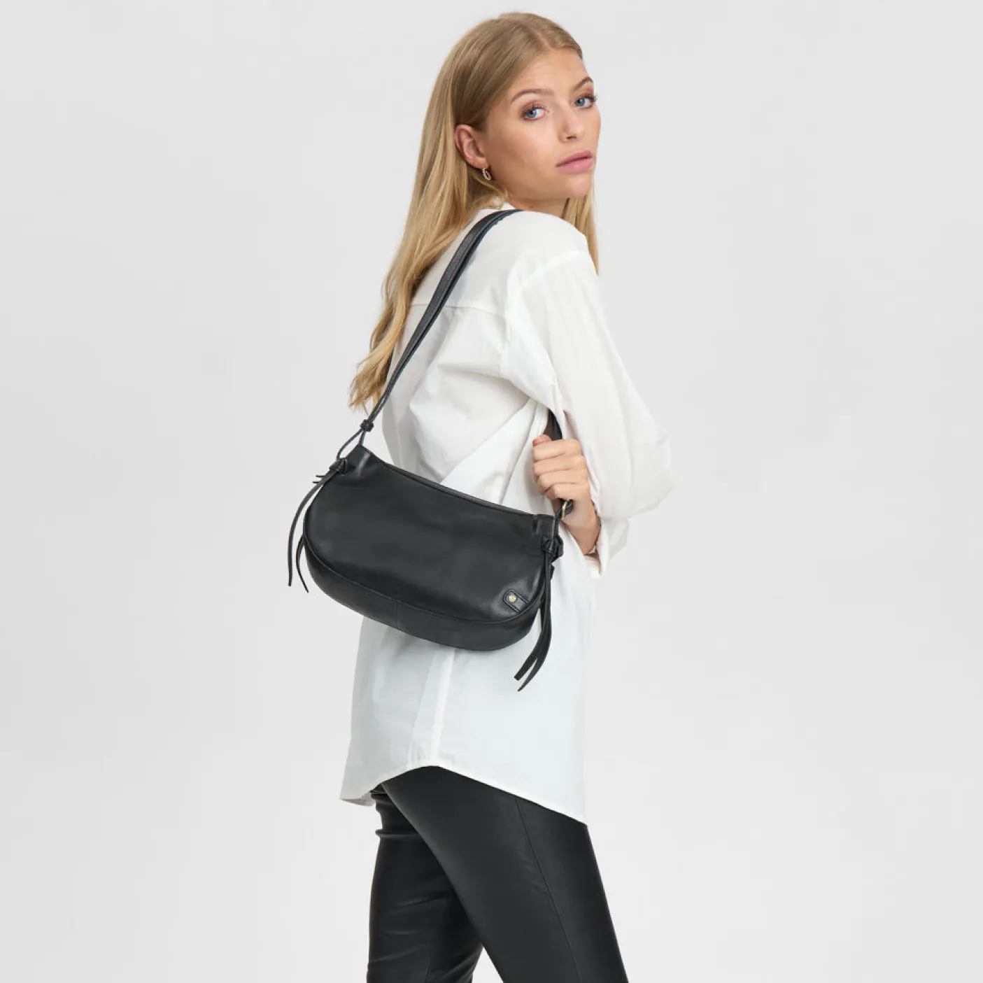 På siderne finder du fine bindebåndsdetaljer, som tilfører tasken et feminint twist.