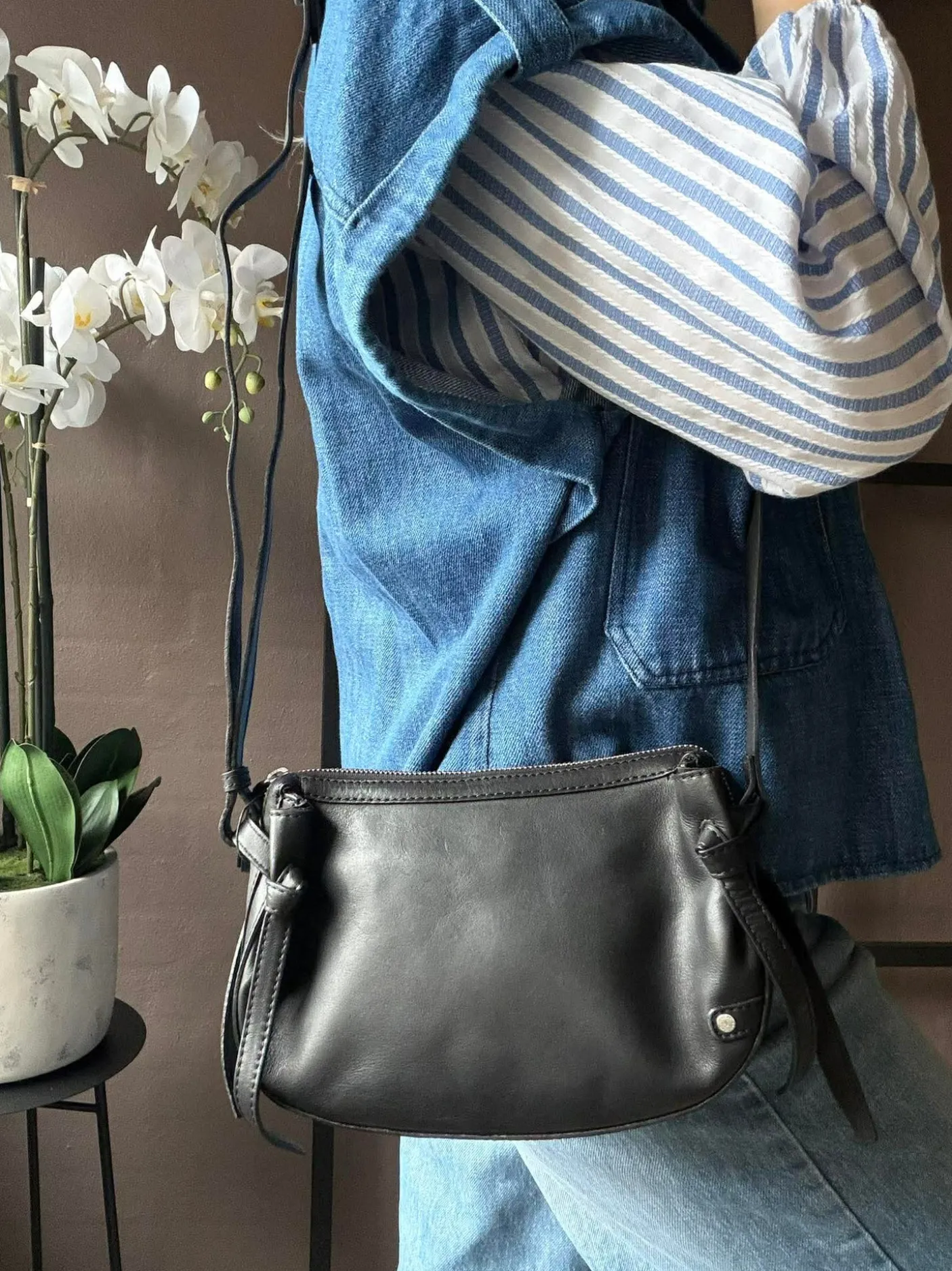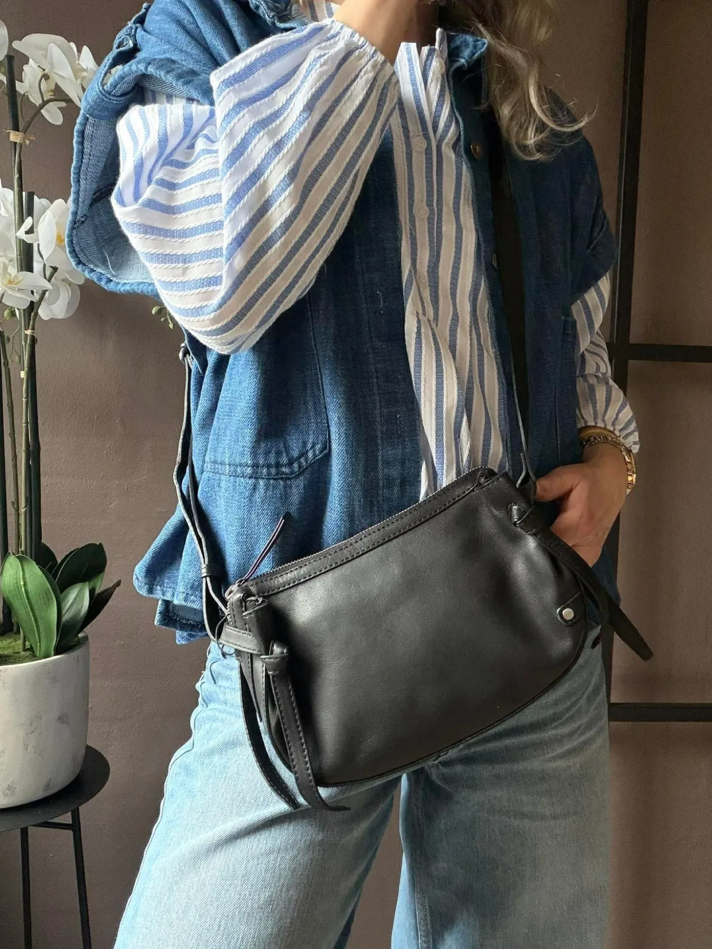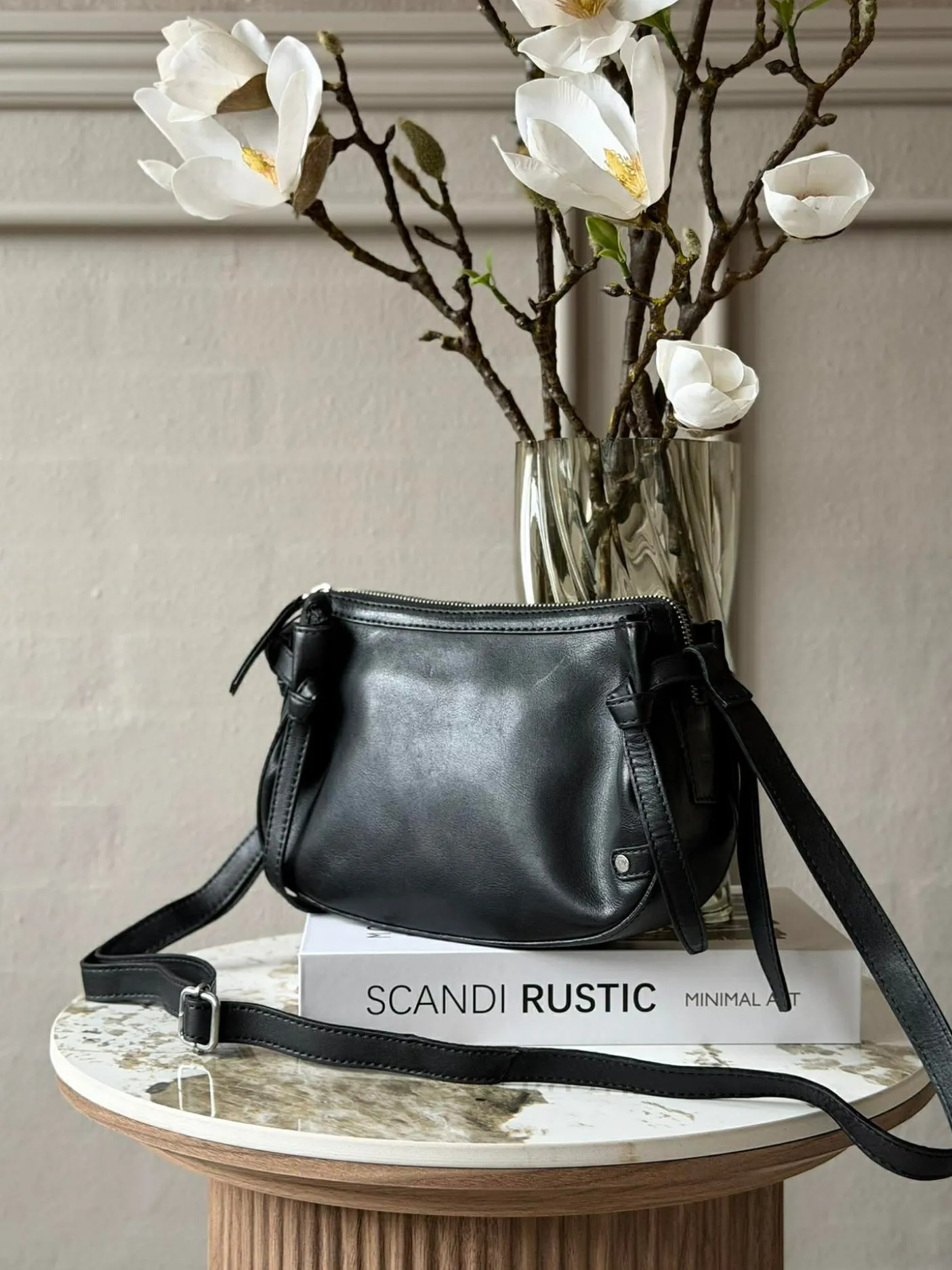 På siderne finder du fine bindebåndsdetaljer, som tilfører tasken et feminint twist.