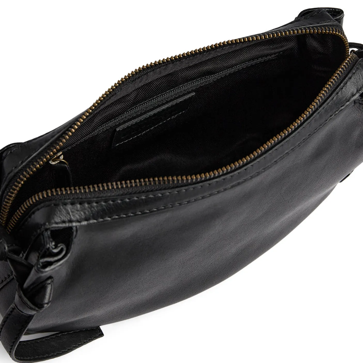 Tasken lukkes med lynlås i toppen, har et stort rum med en lille lynlåslomme.
