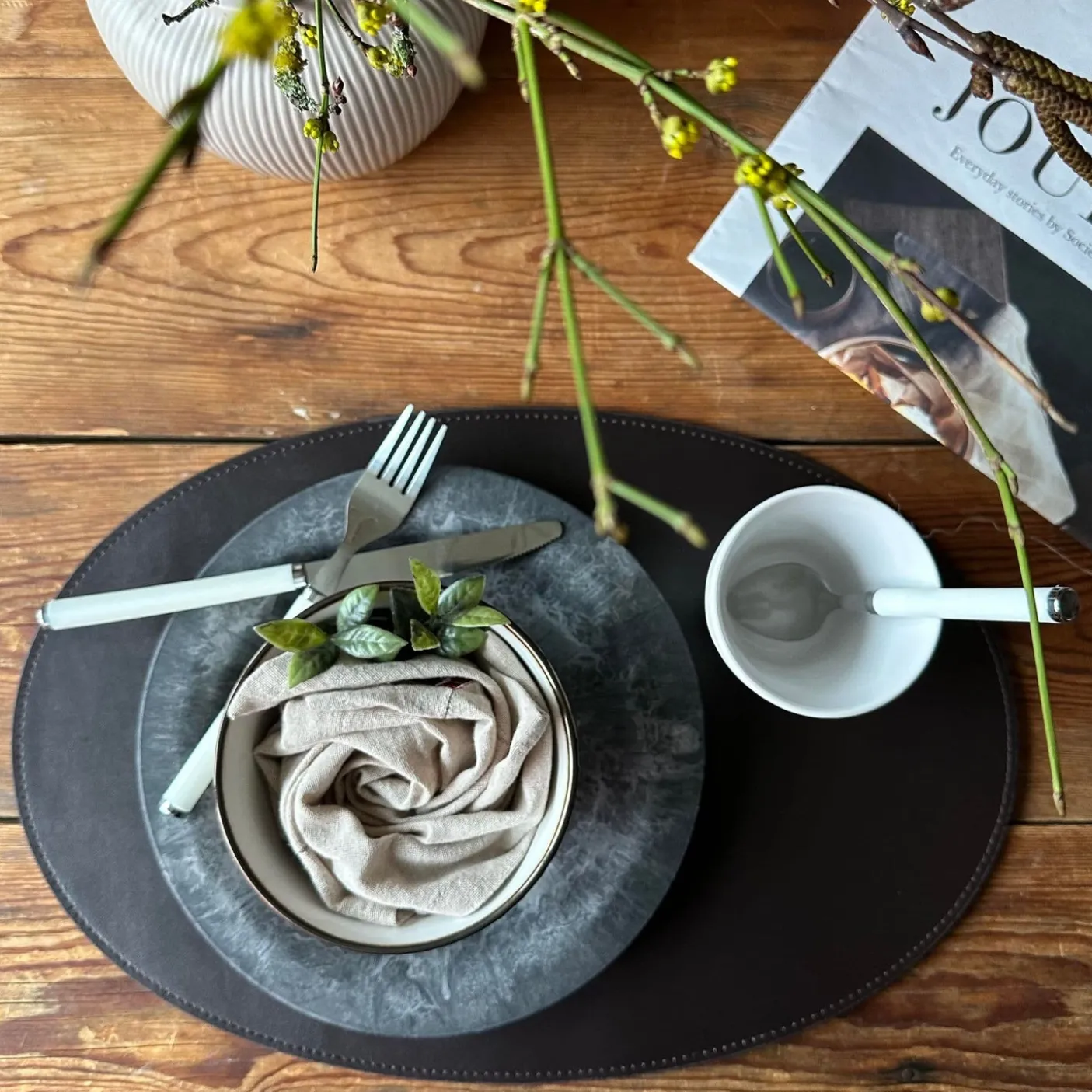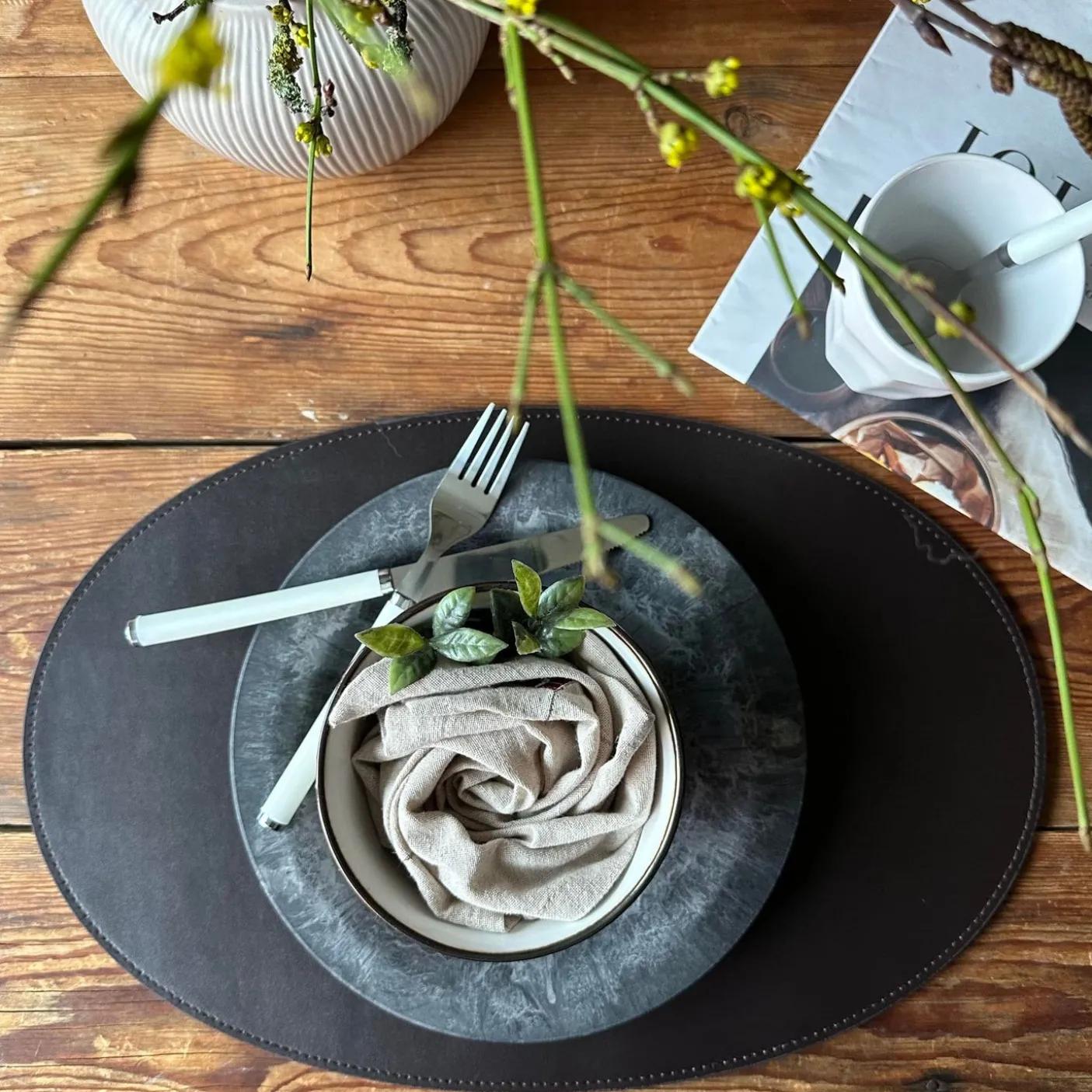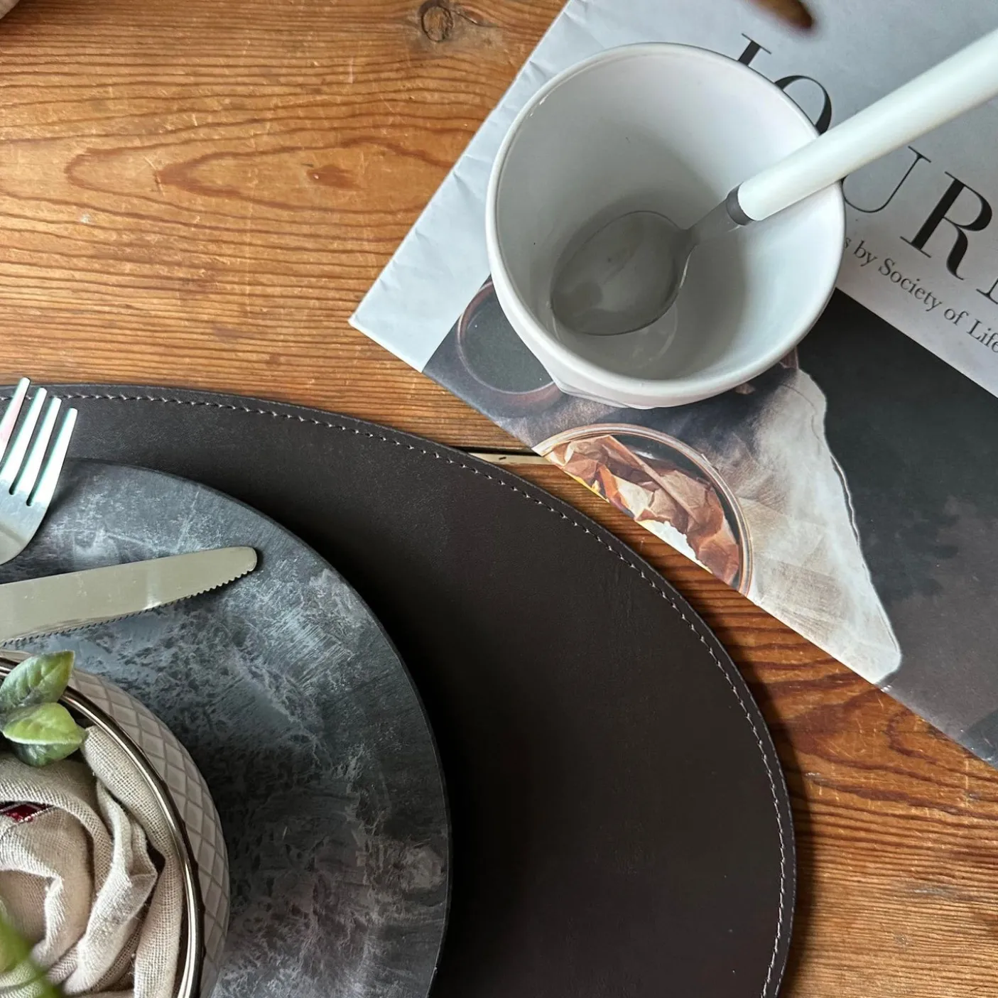 Dækkeserviet i læder.
