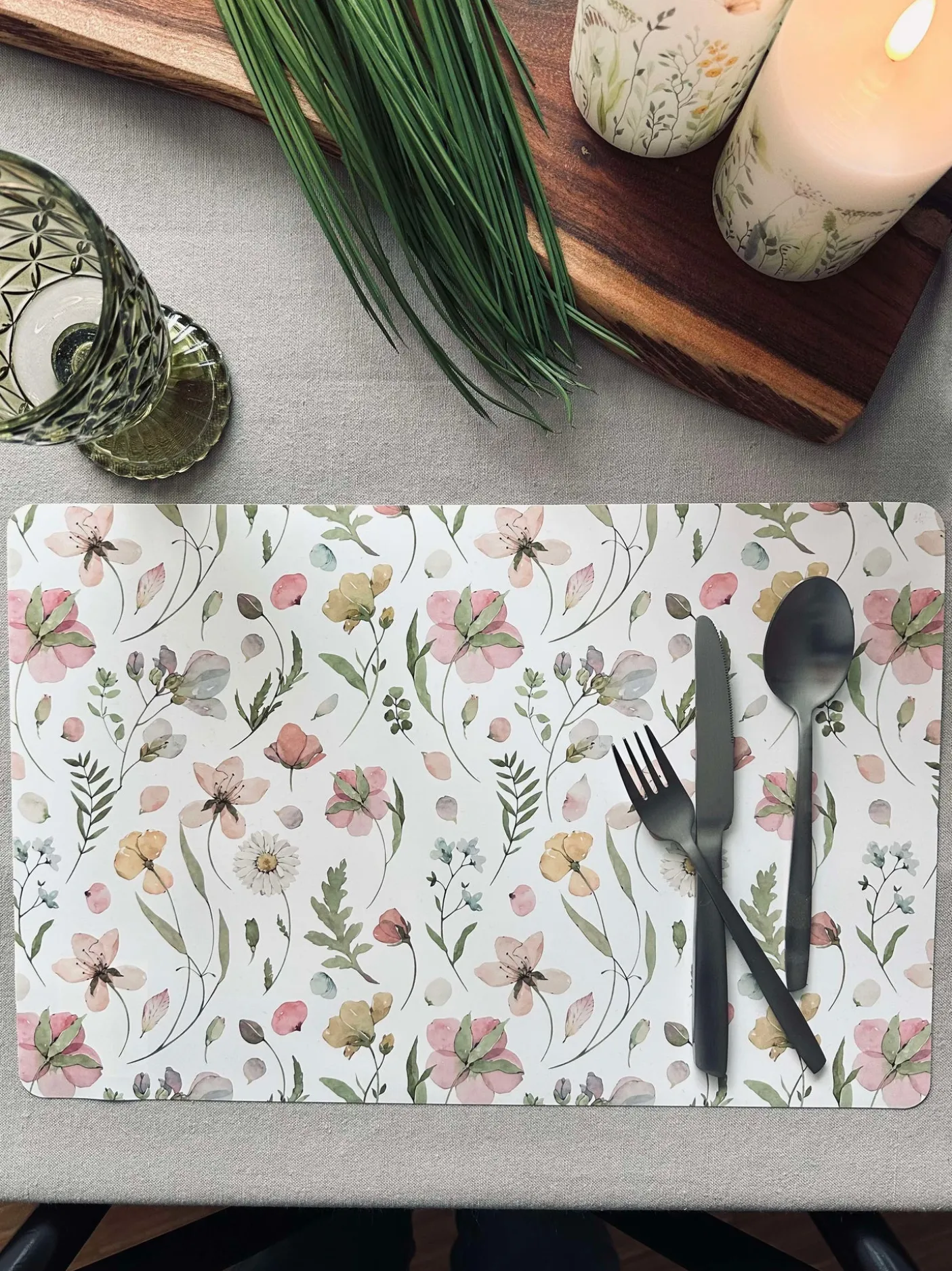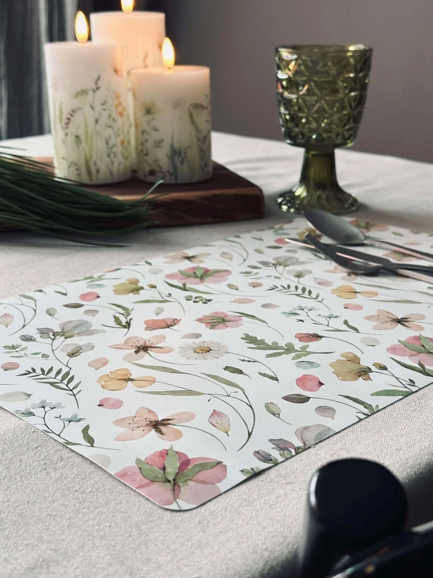 Dækkeserviet med blomster – hvid
