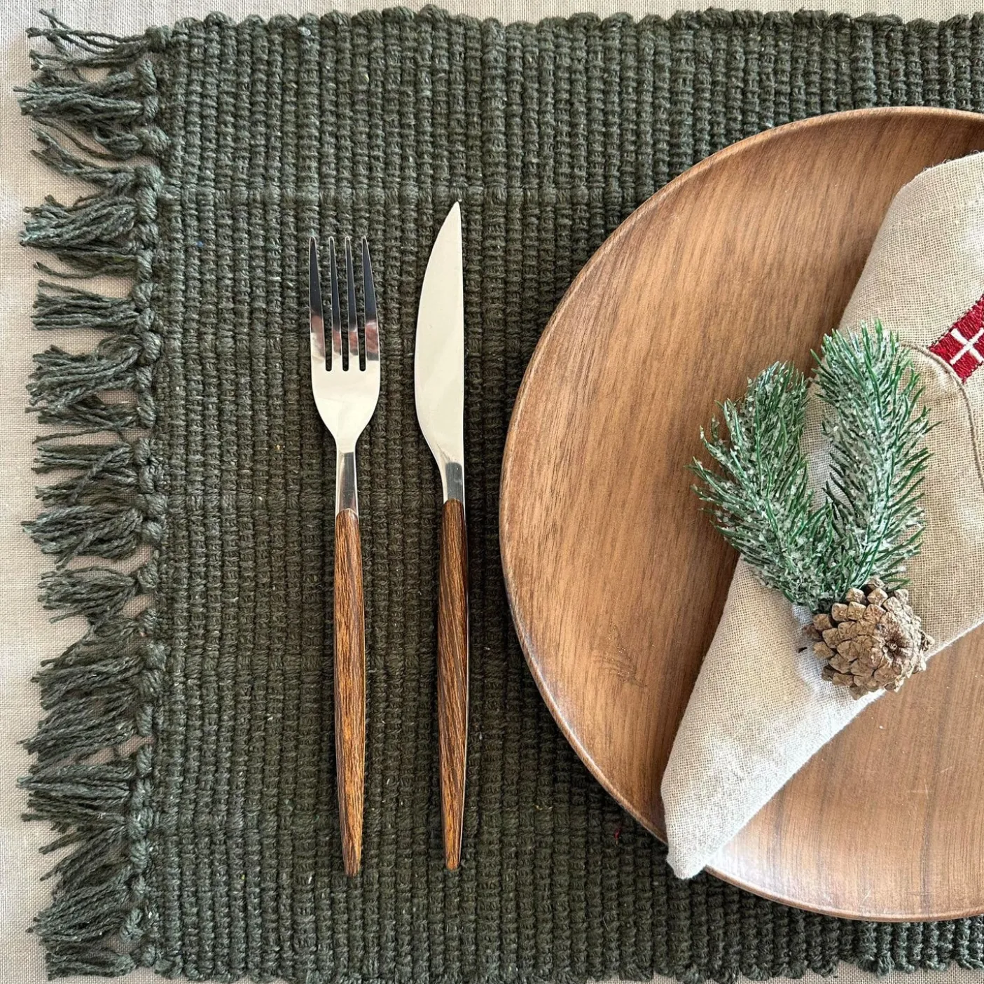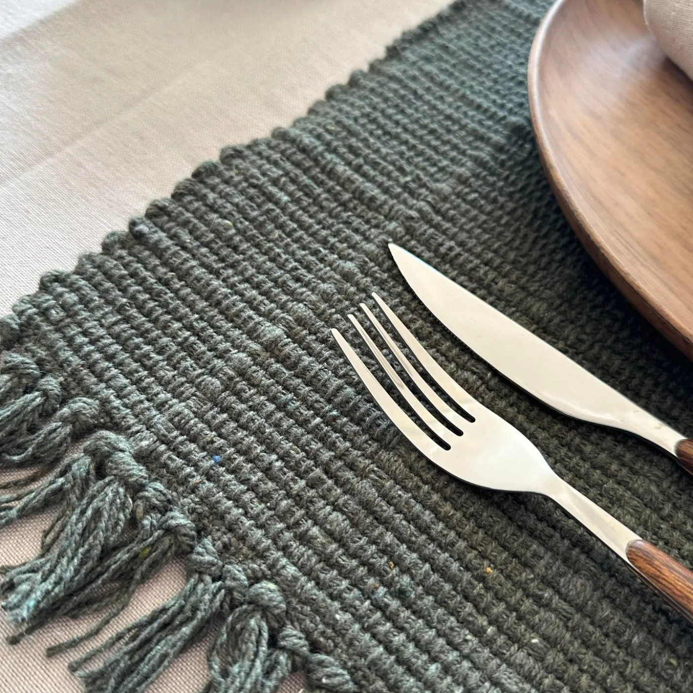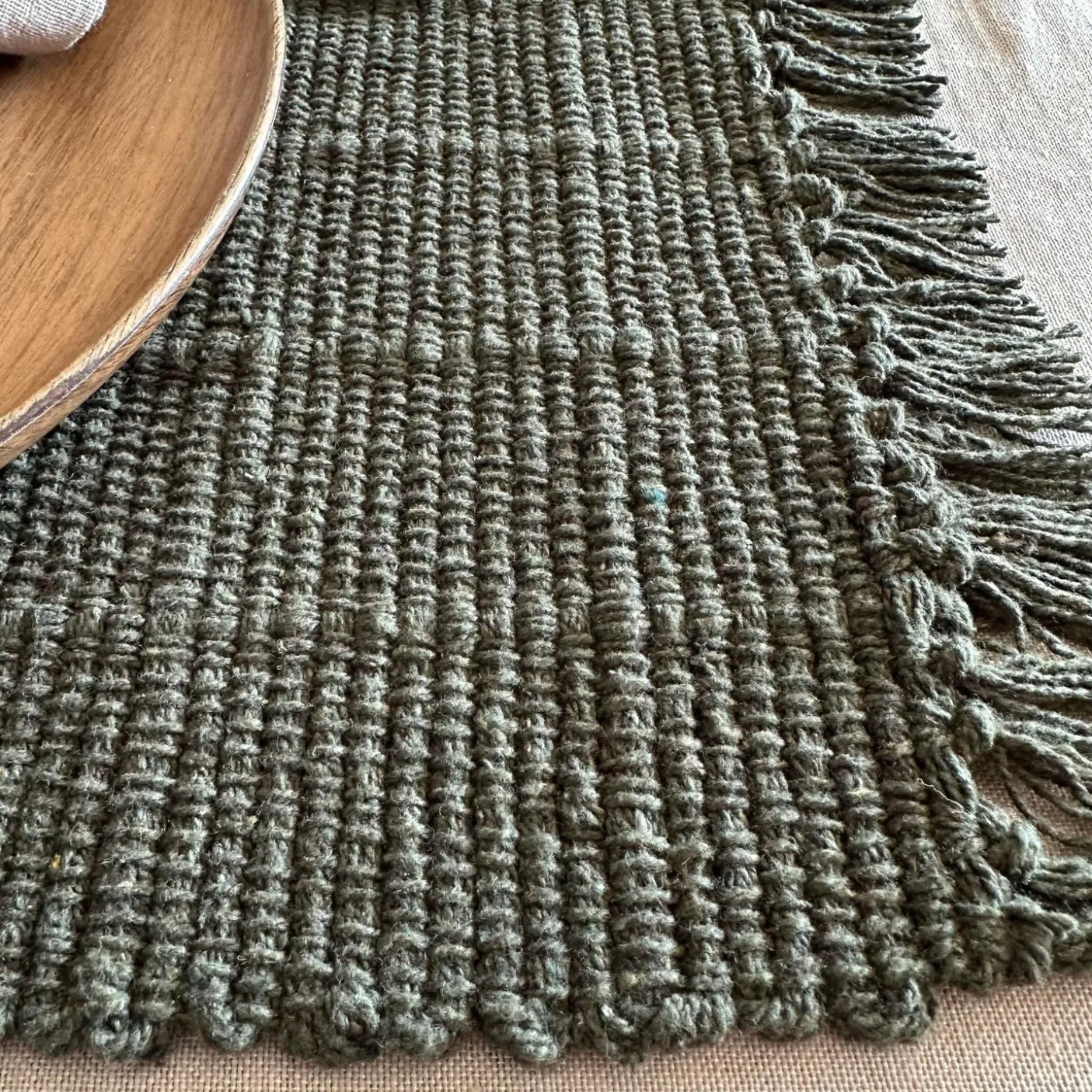 Dækkeserviet i lækker blød kvalitet i olivenfarve.