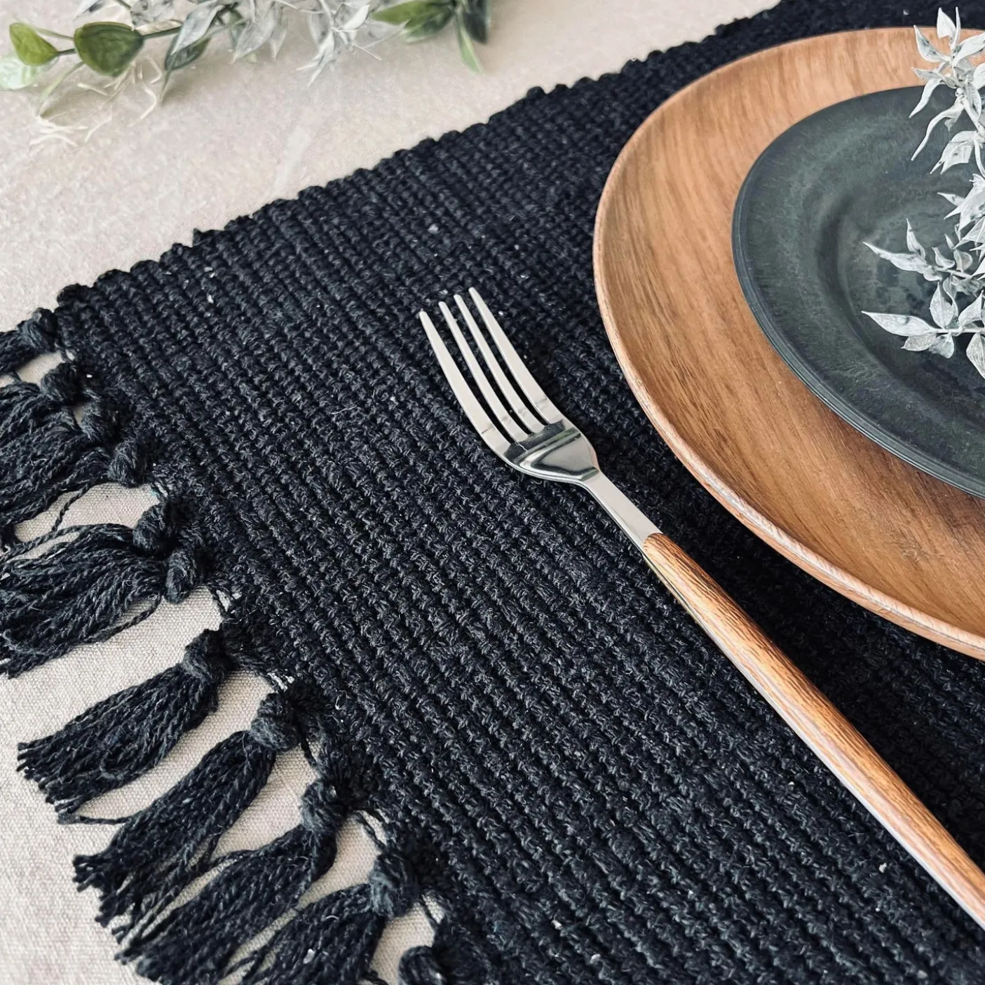 Dækkeserviet i lækker blød kvalitet i sort.