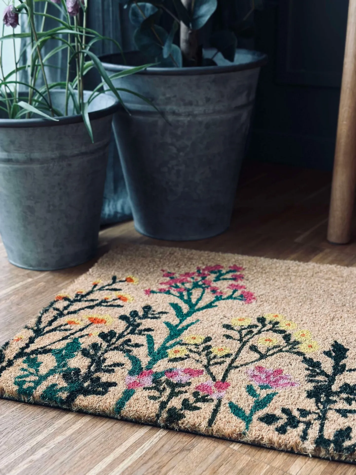 Byd dine gæster velkommen med denne fine dørmåtte med blomsterprint.